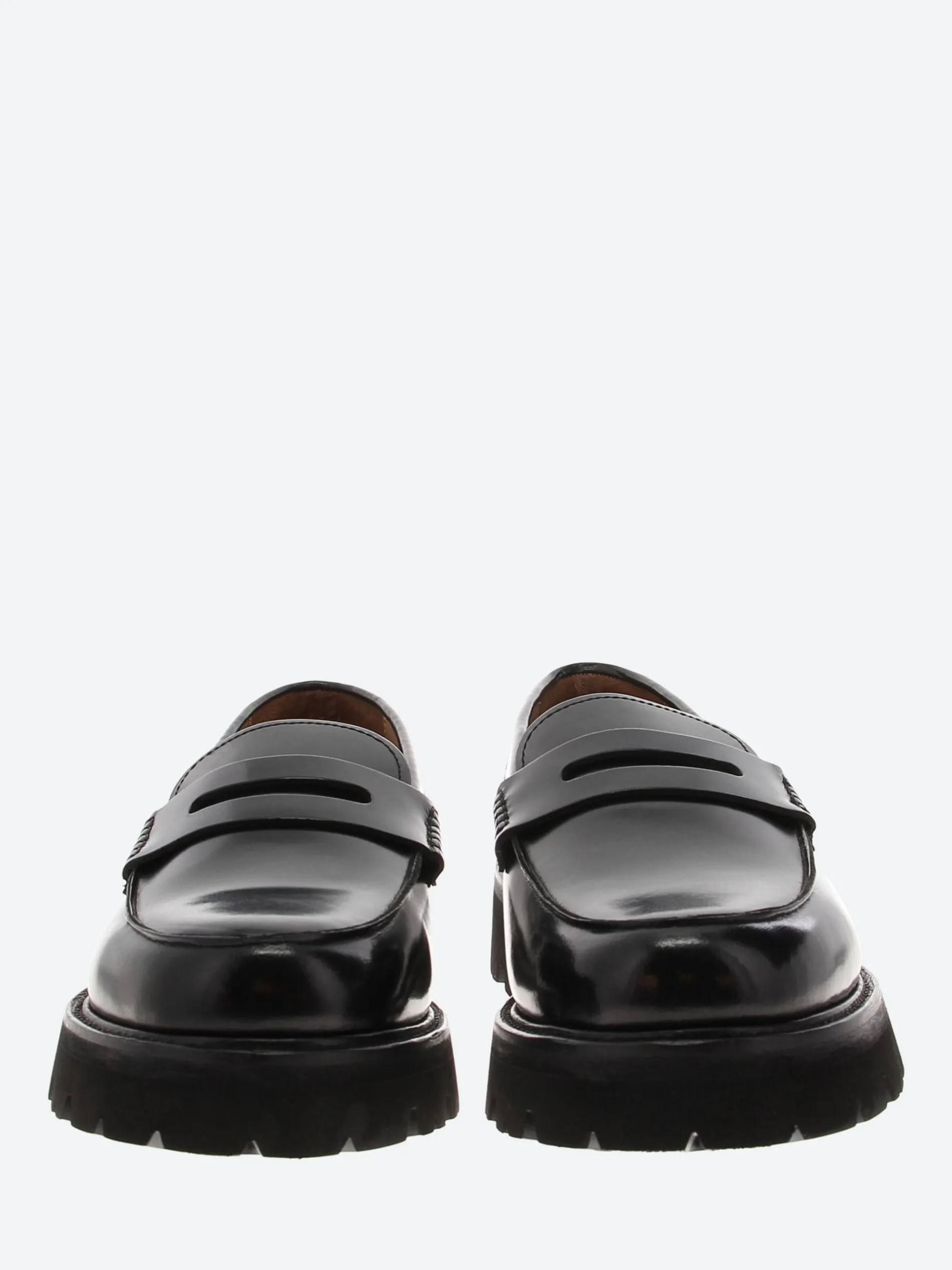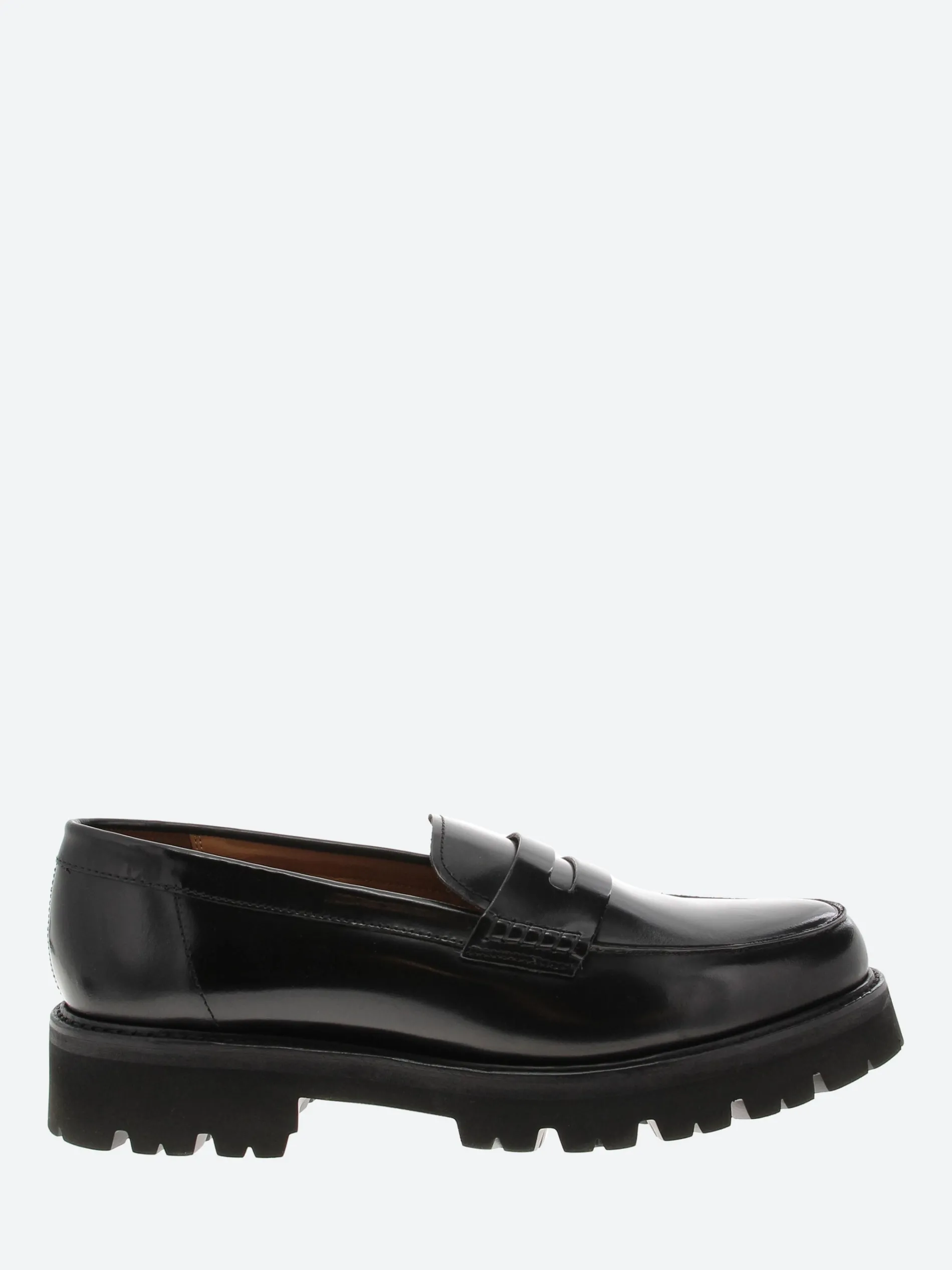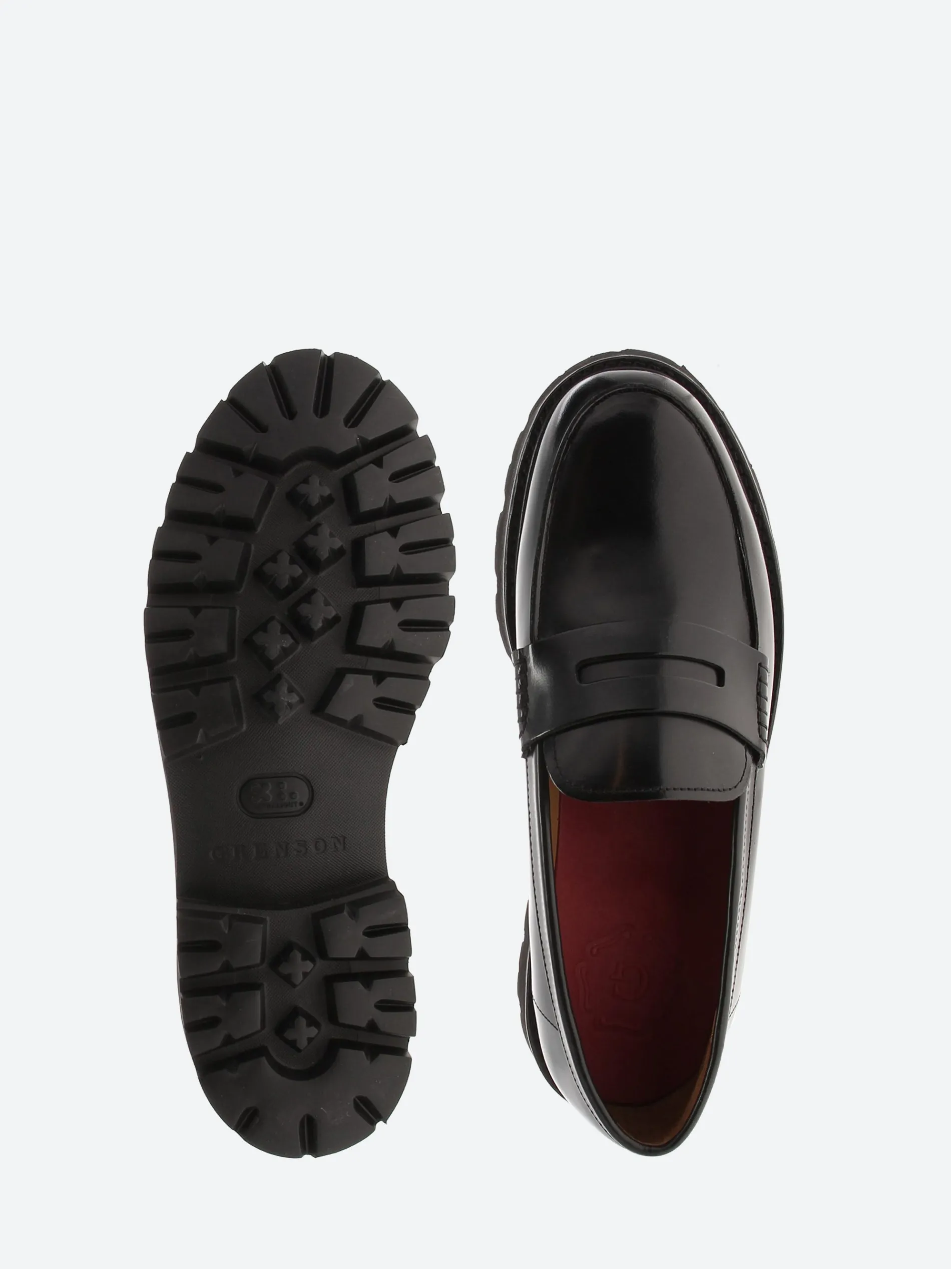 Grenson Jefferson is a penny loafer with butted apron seam and simple saddle with handsewn detailing.