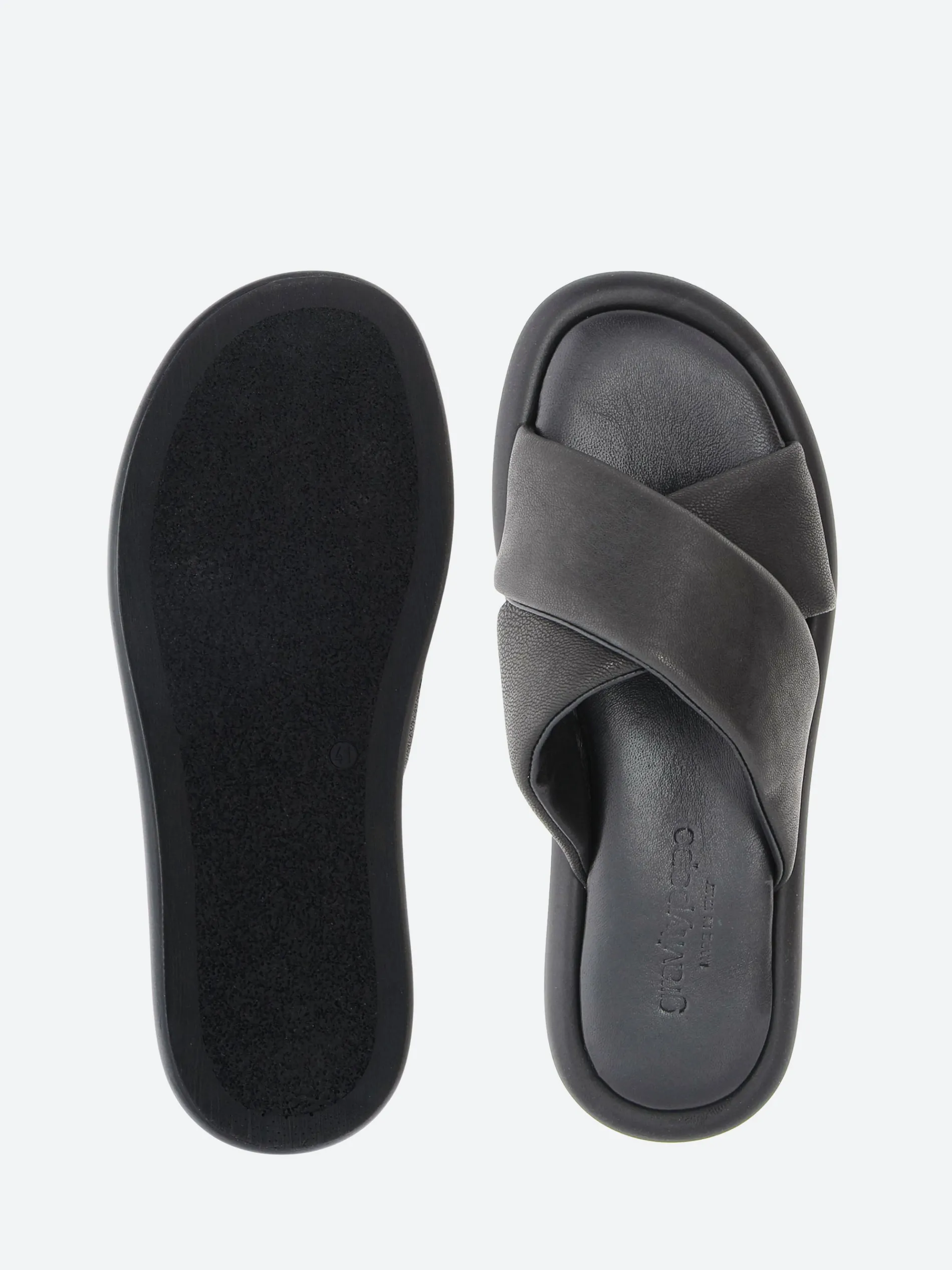 An effortlessly minimal slide, the gravitypope Jude with plush leather straps across the vamp.