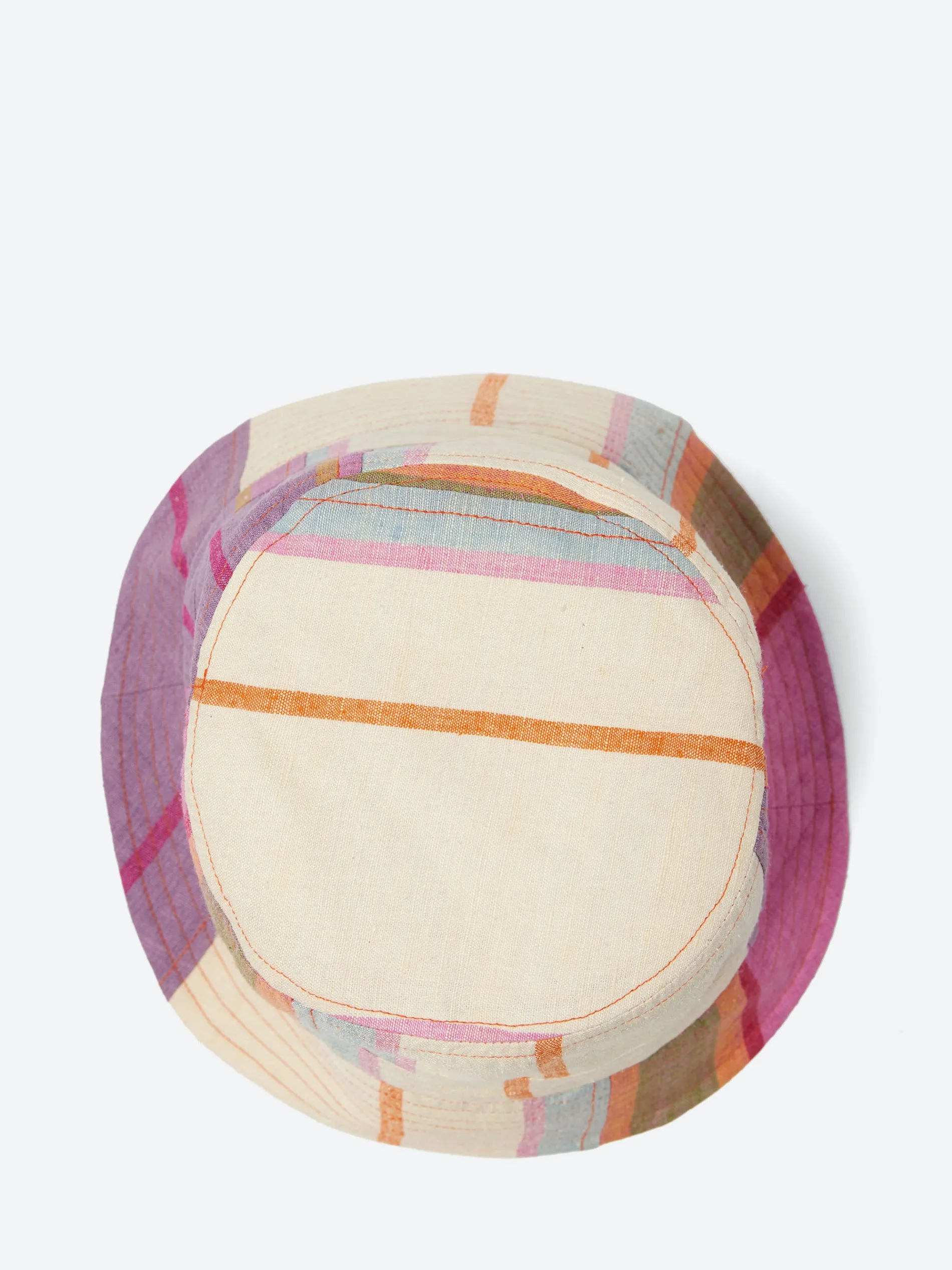 Kardo reversible yarn dyed stripe Bucket Hat, handwoven on hand spun matka silk by weavers in Bengal. Matka silk is made from the waste of mulberry silk and the spun nature of the threads means that they are slightly thicker than conventional silk, but still very soft, giving it a feel that is somewhere between cotton and cashmere.