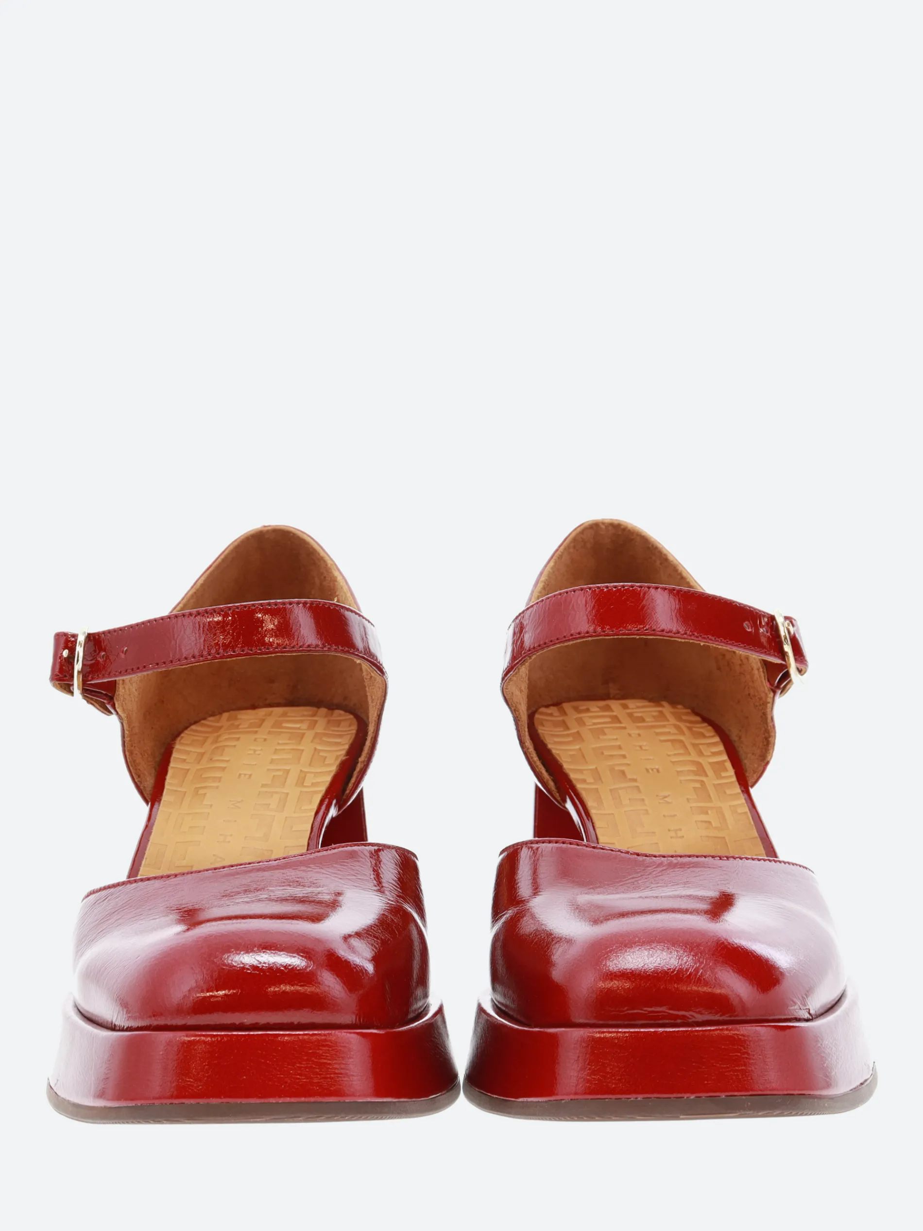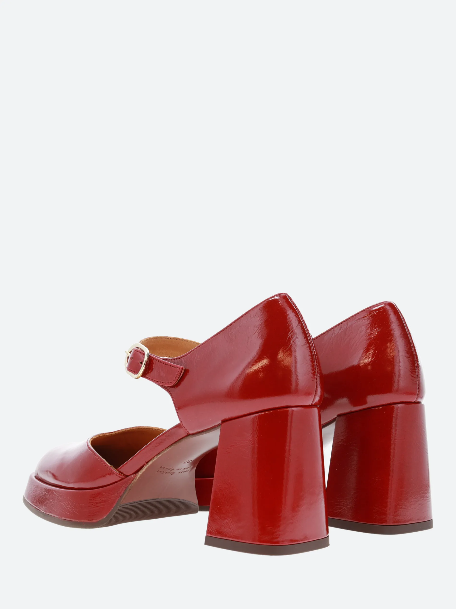 Chie Mihara Kento, an ankle strapped sandal with a soft leather upper, sitting on a high, stacked heel.