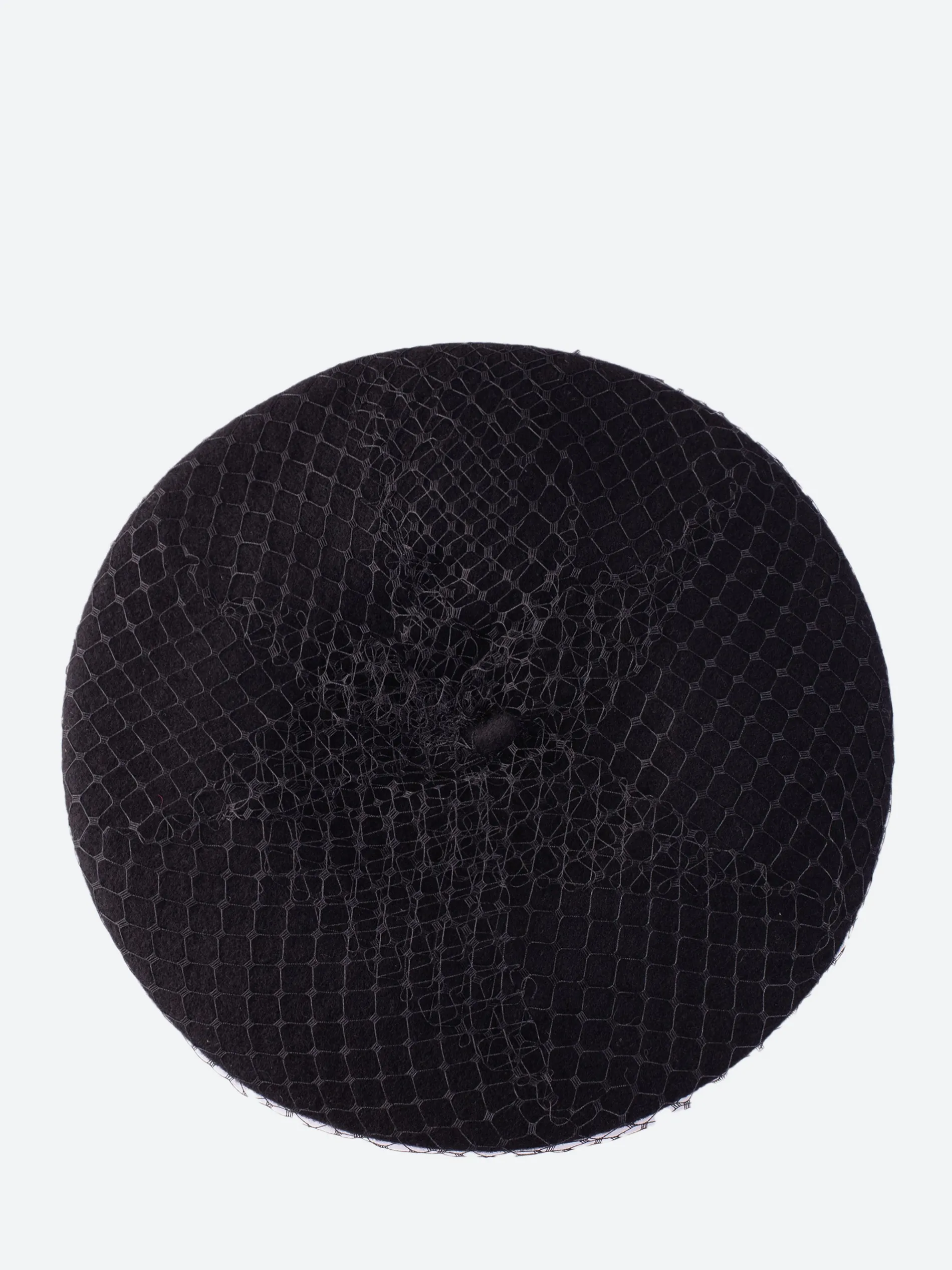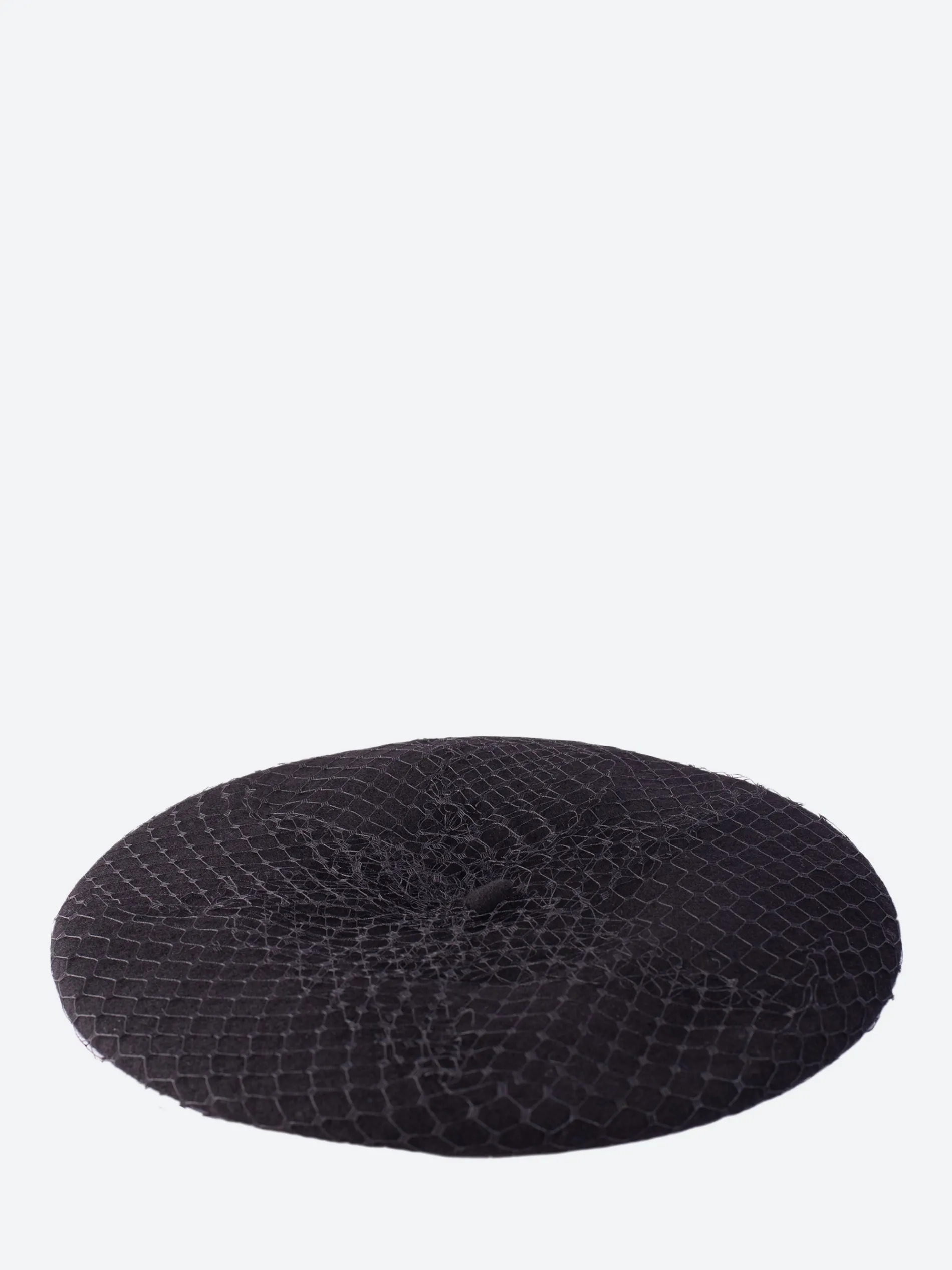 Small stylish classical beret with vintage cotton veiling, reminiscent of the 1970’s.