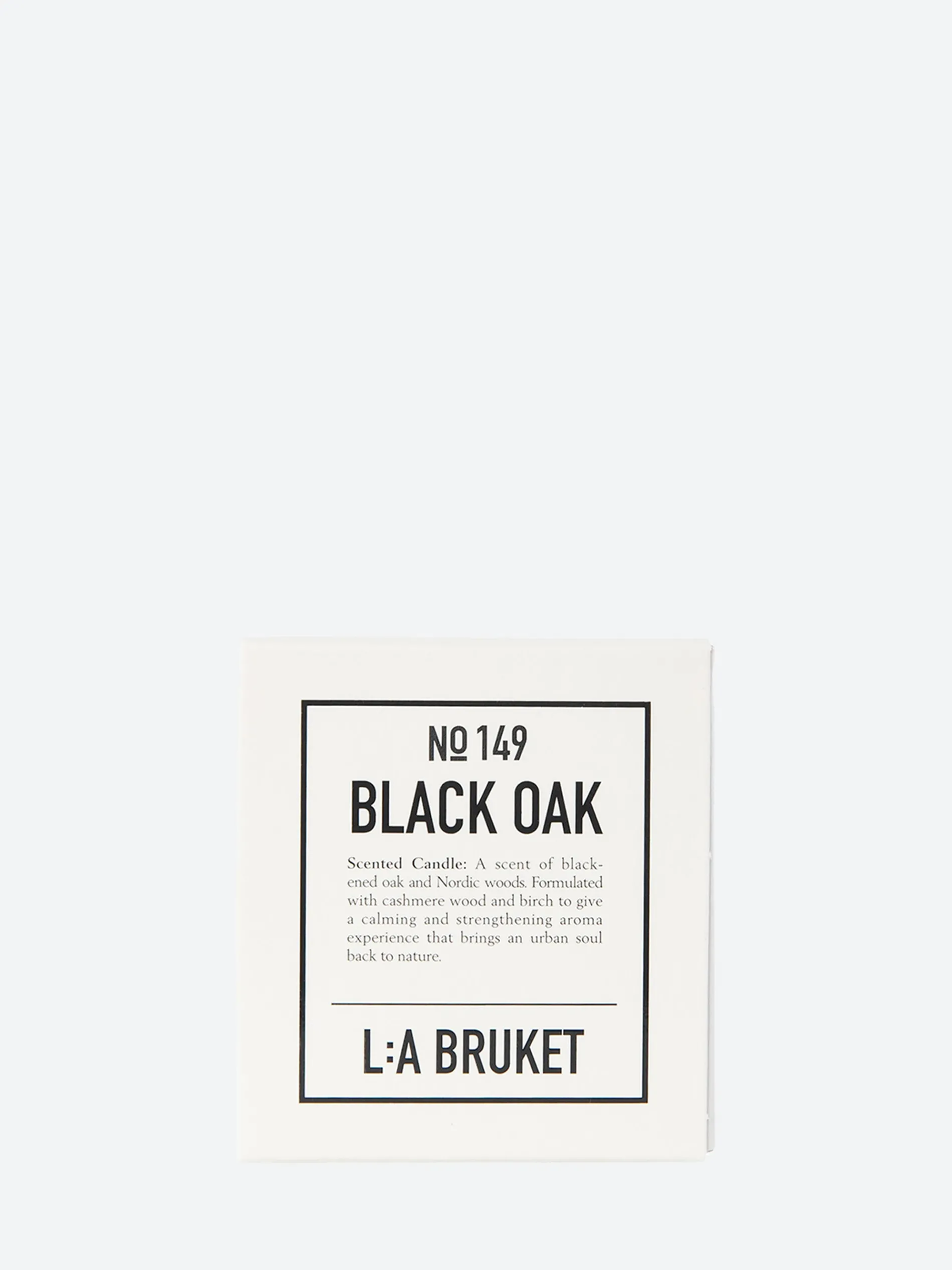 Scented candle made of wax from organic soy with a woody scent of blackened oak and nordic woods. The candle is filled by hand in a mouth-blown tinted amber glass.