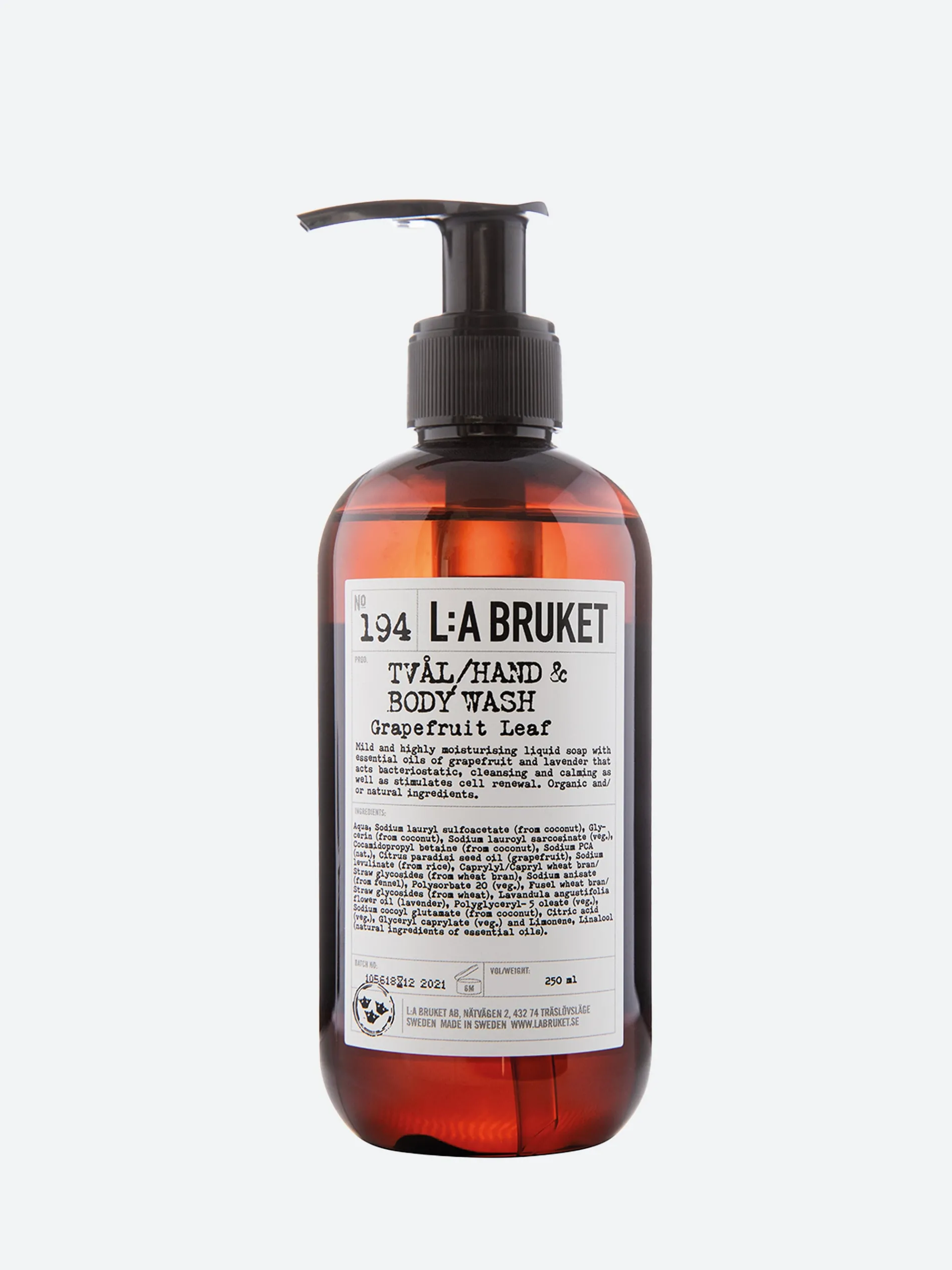 Aqua, Sodium Lauroyl Sarcosinate, Glycerin, Cocamidopropyl Betaine, Sodium Lauryl Sulfoacetate, Sodium Levulinate, Citrus Grandis (Grapefruit) Peel Oil, Caprylyl/Capryl Glucoside, Sodium PCA, Sodium Anisate, Polysorbate 20, Lavandula Angustifolia (Lavender) Oil, Sodium Cocoyl Glutamate, Polyglyceryl-6 Oleate, Citric Acid, Glyceryl Caprylate, Sodium Surfactin, Parfum, Limonene, Linalool.