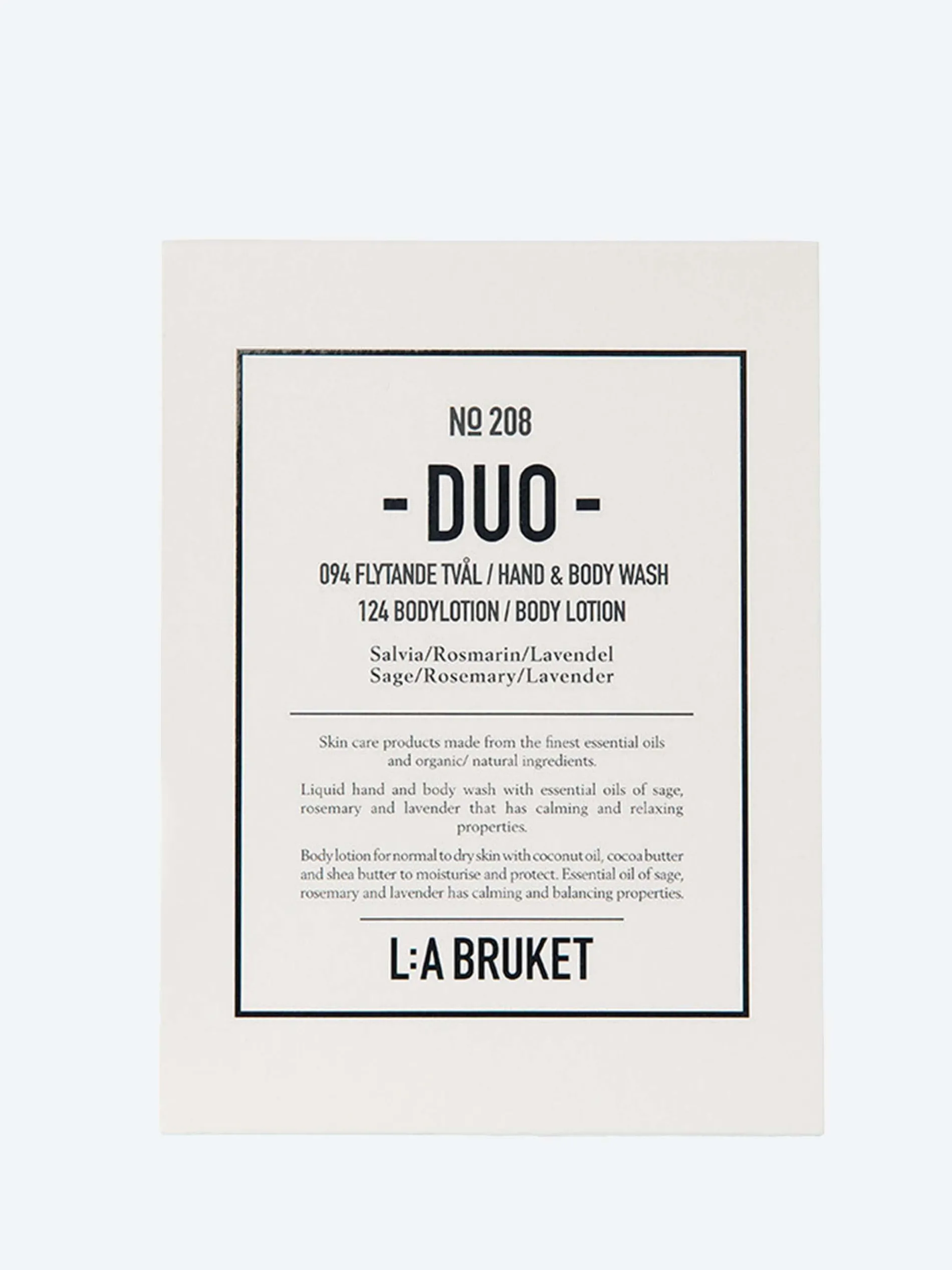 A gift box containing Hand u0026amp; body wash and Hand cream with the essential oils of sage, rosemary and lavender.