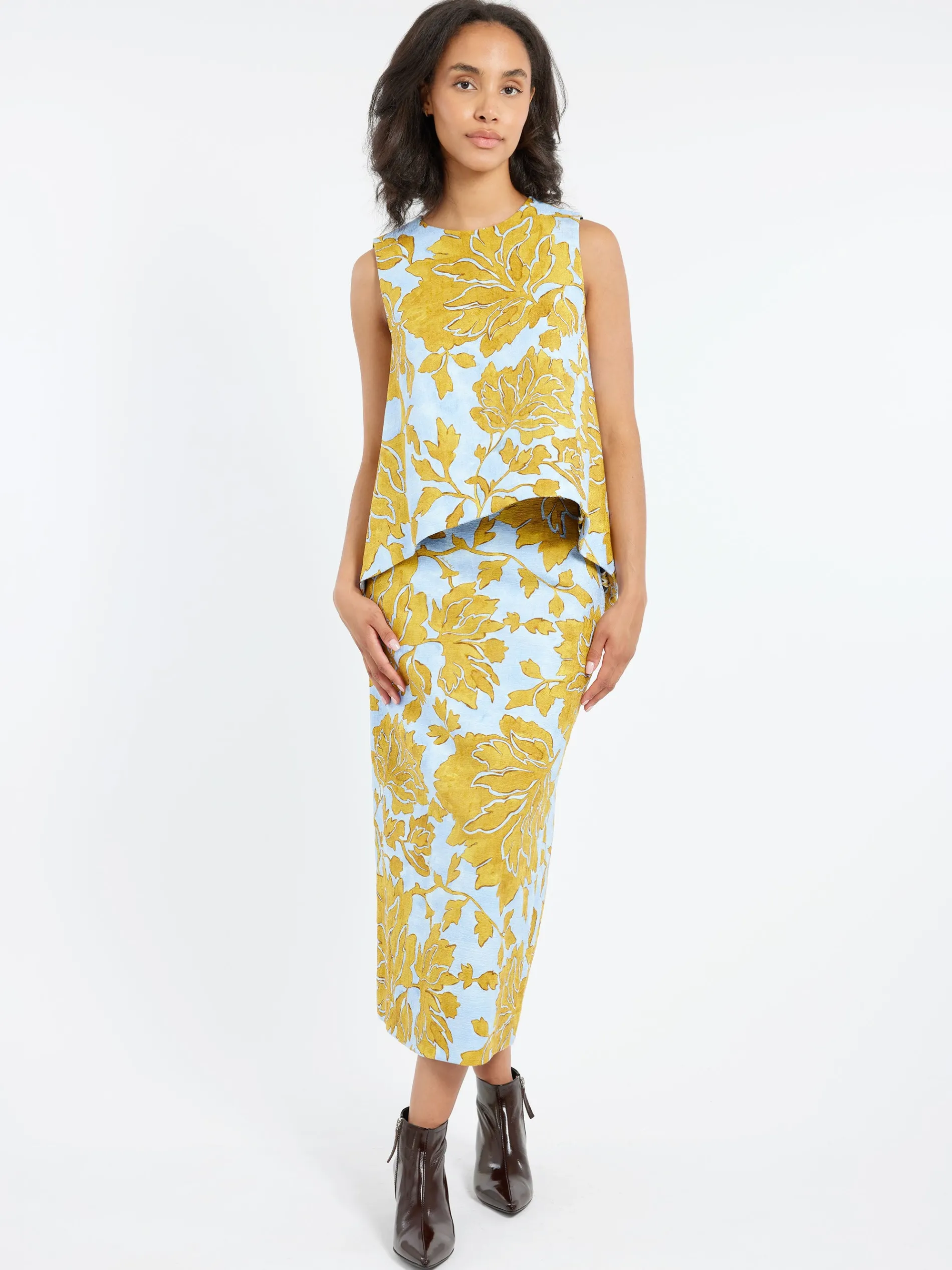 La DoubleJ Pencil Skirt is destined to become one of your most loved wardrobe pieces in this gorgeous embroidered cotton with a hint of stretch. With a light flare for easy strolling, it sits low on your hips, and hems about the calf.