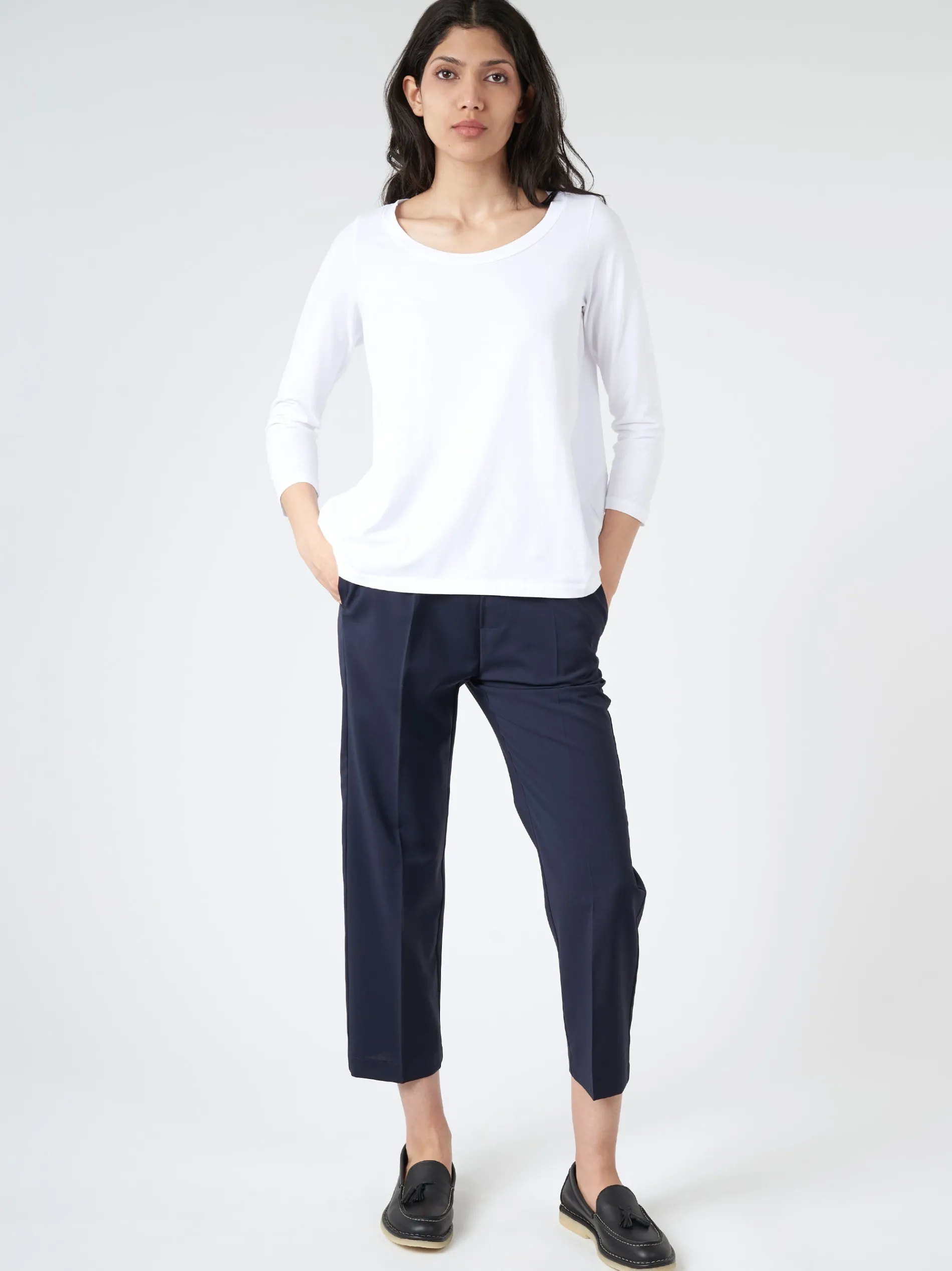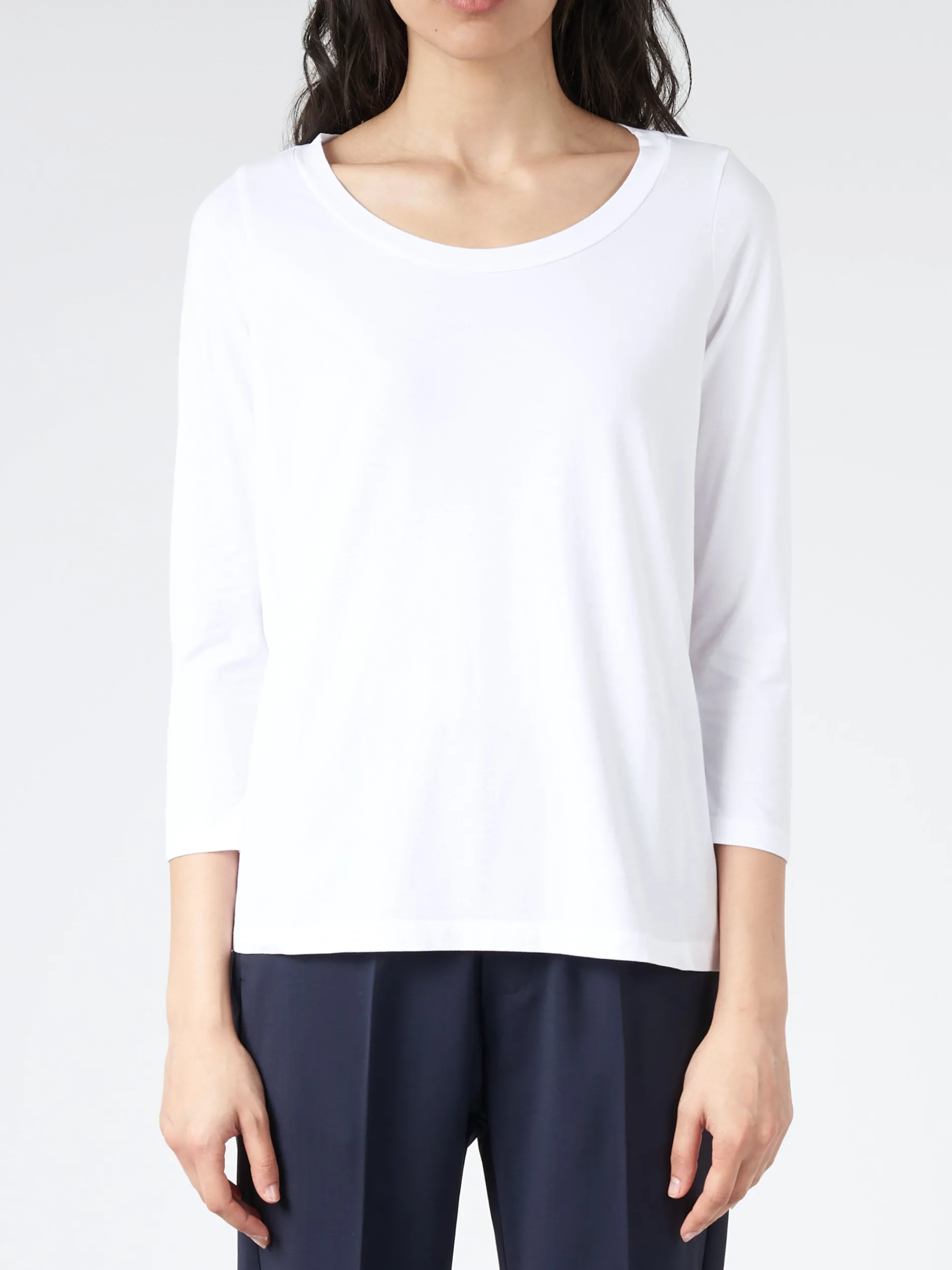 Labo.Art shirt with egg shape featuring a scoop neckline, rolled finished neck.