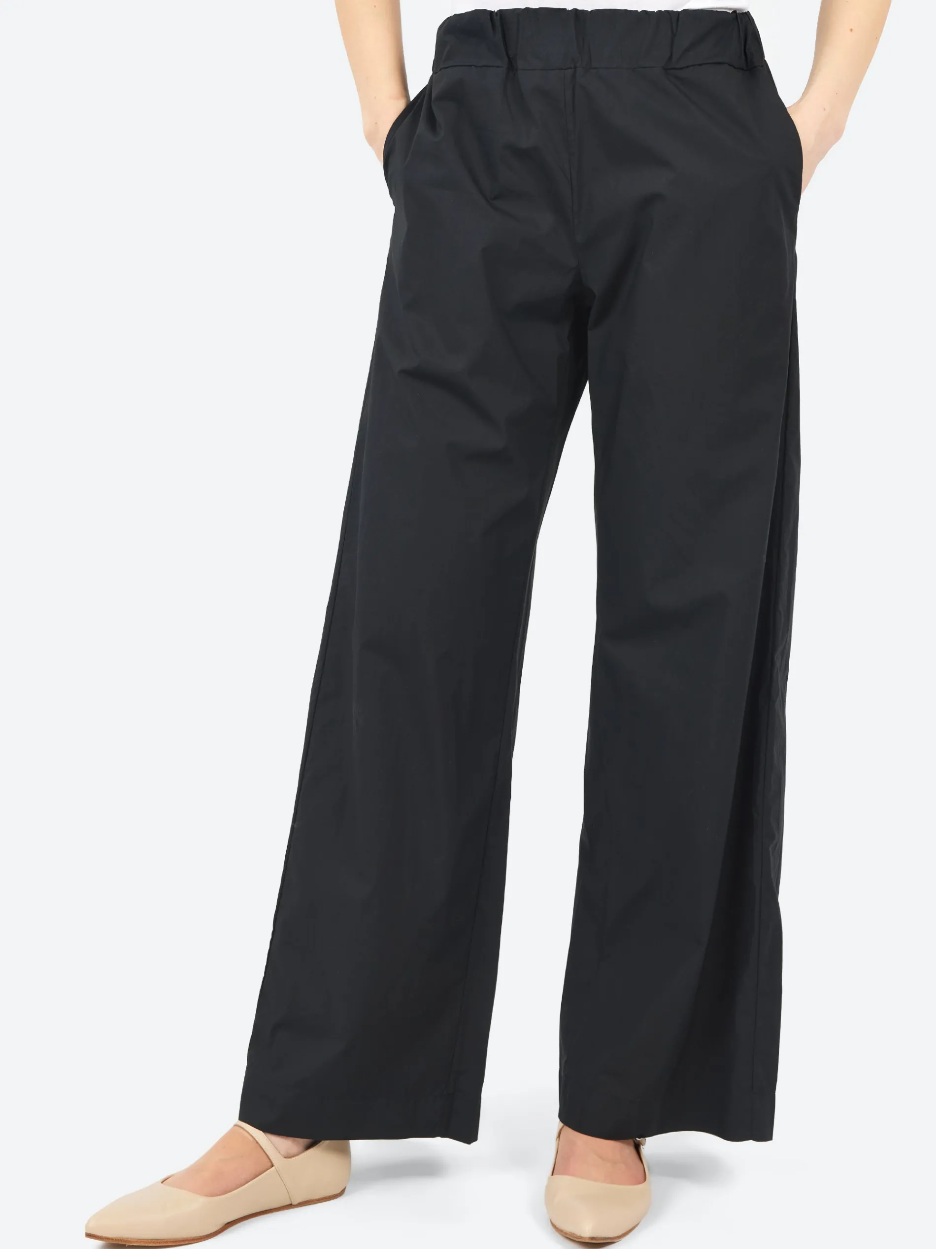 These pants feature a stretch waistband and are made from a crisp cotton poplin, making them both comfortable and stylish.