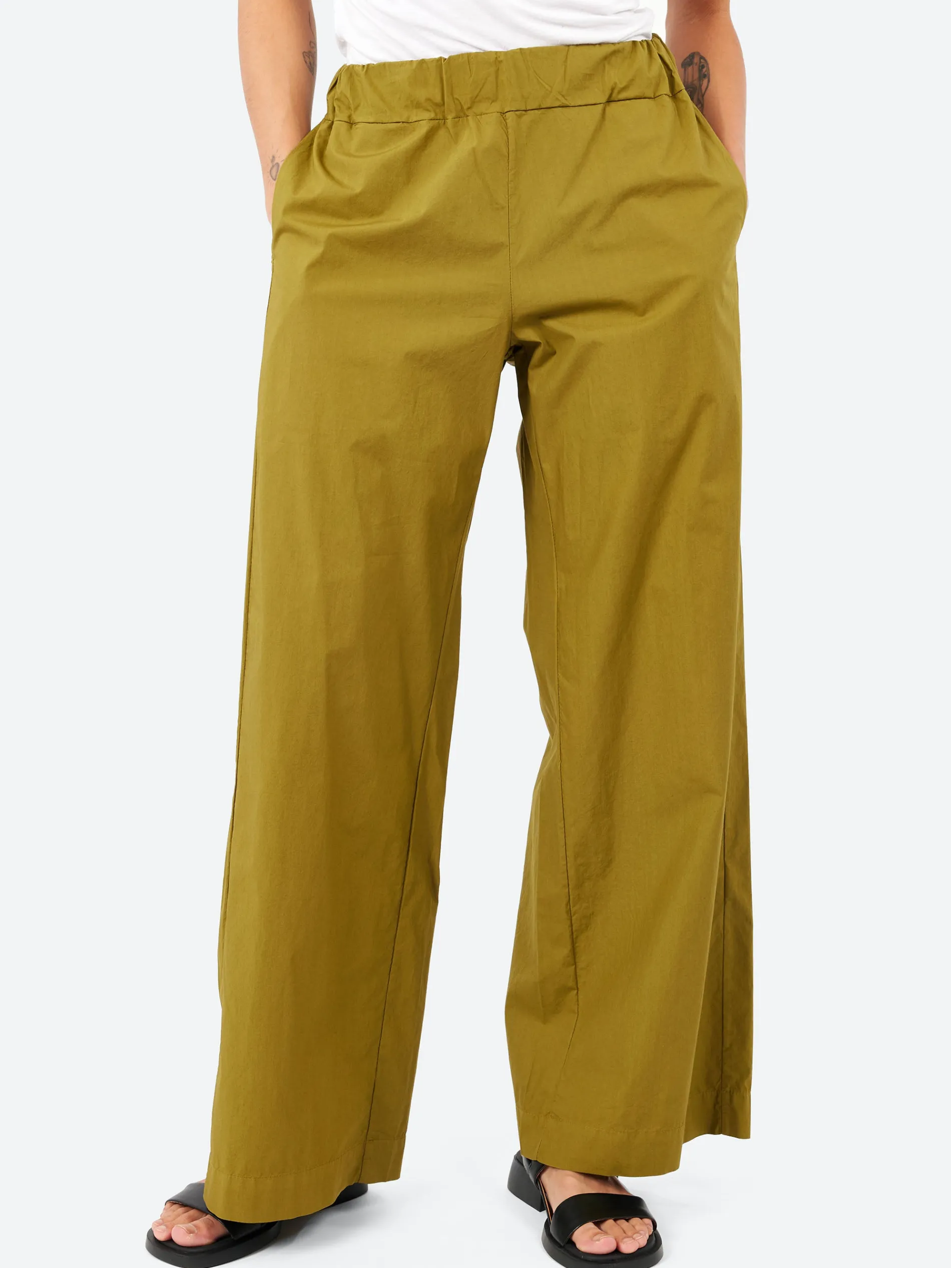 These pants feature a stretch waistband and are made from a crisp cotton poplin, making them both comfortable and stylish.
