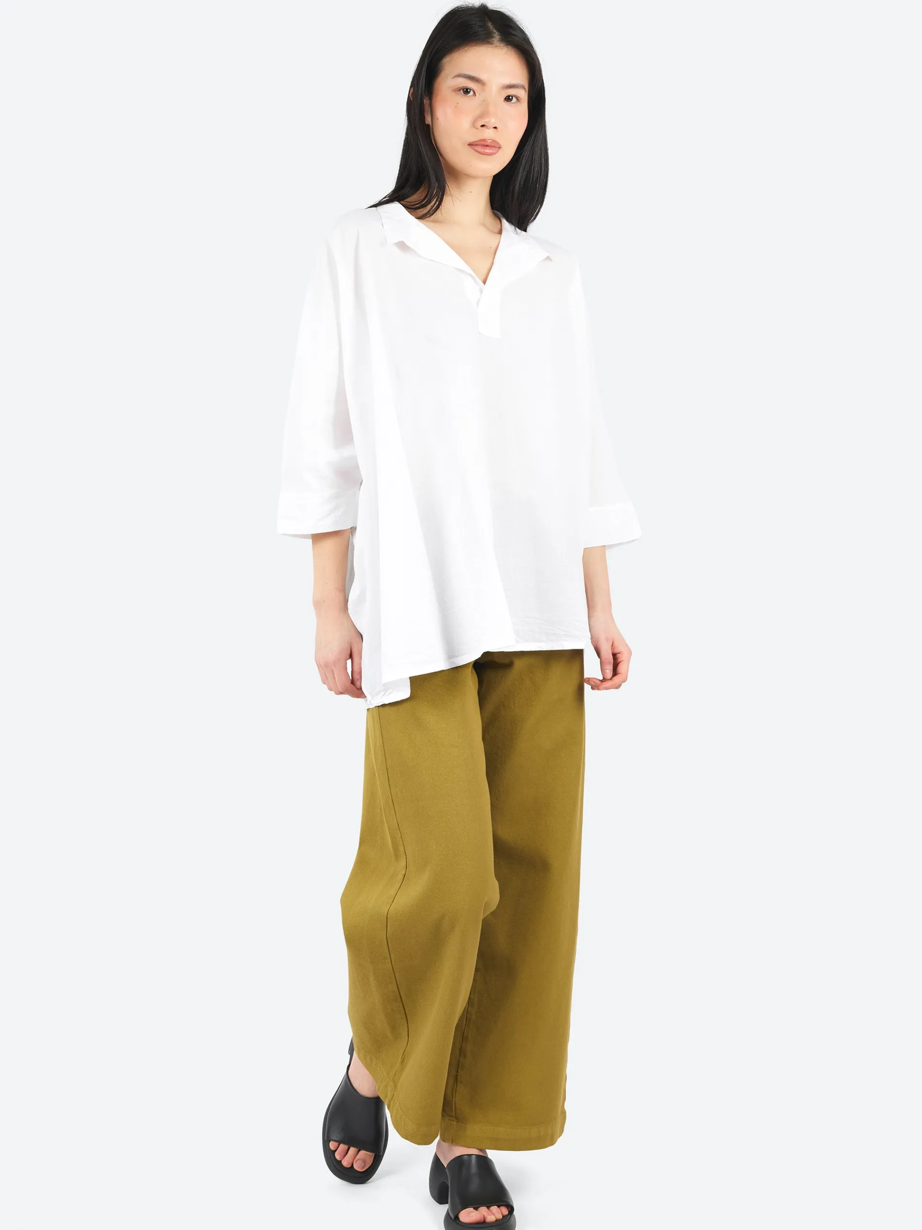The Labo.art cotton bull trousers are designed with a straight, wide-leg fit and a half-elasticated waistband for comfort and ease. Crafted from sturdy cotton drill, these trousers feature belt loops, side seam pockets, and back welt pockets for added functionality. The button and zip fly closure complete the design, offering a stylish and practical option for a relaxed, modern look.