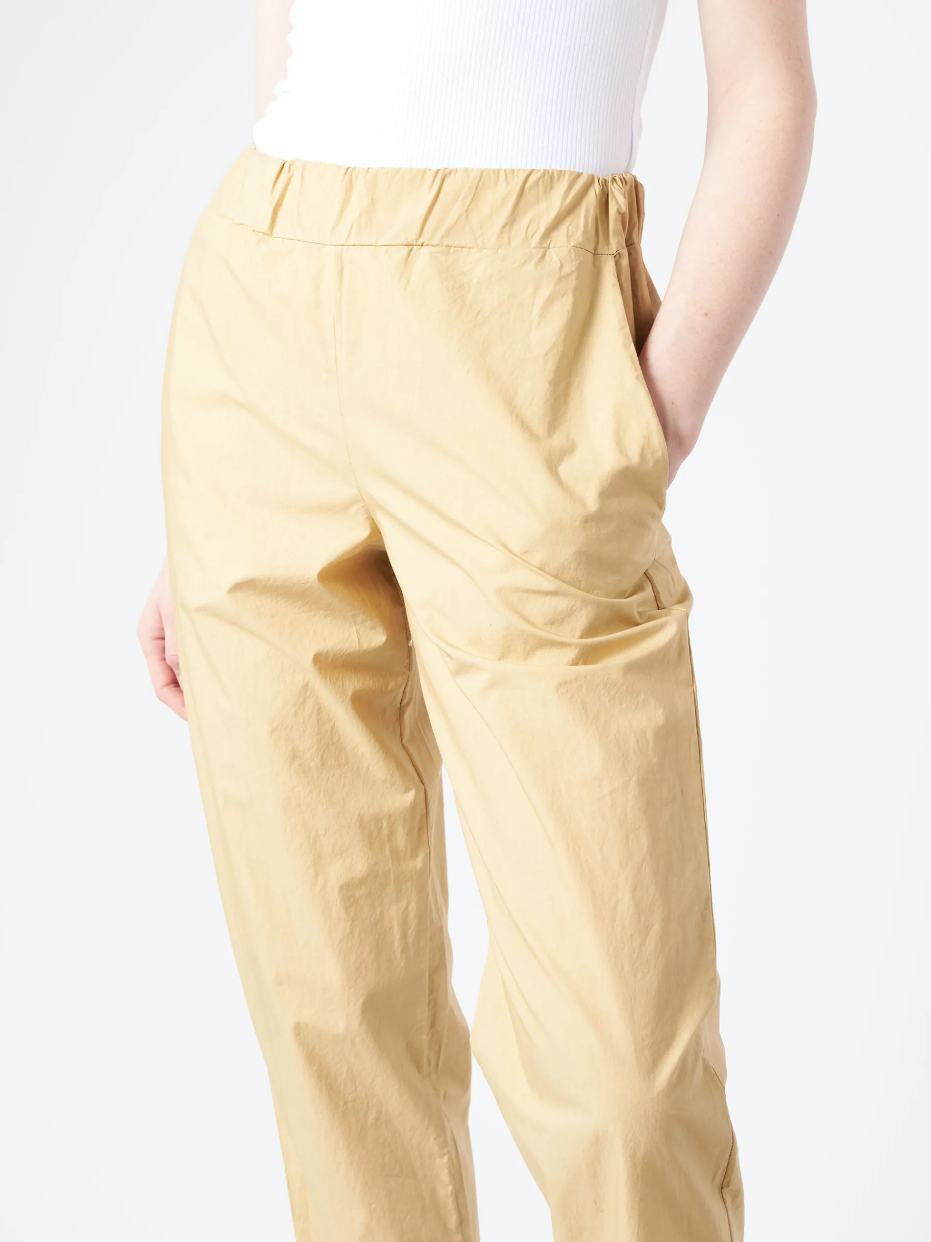 Labo.Art carrot cut pants with stretch waistband, cuffs and side pockets.