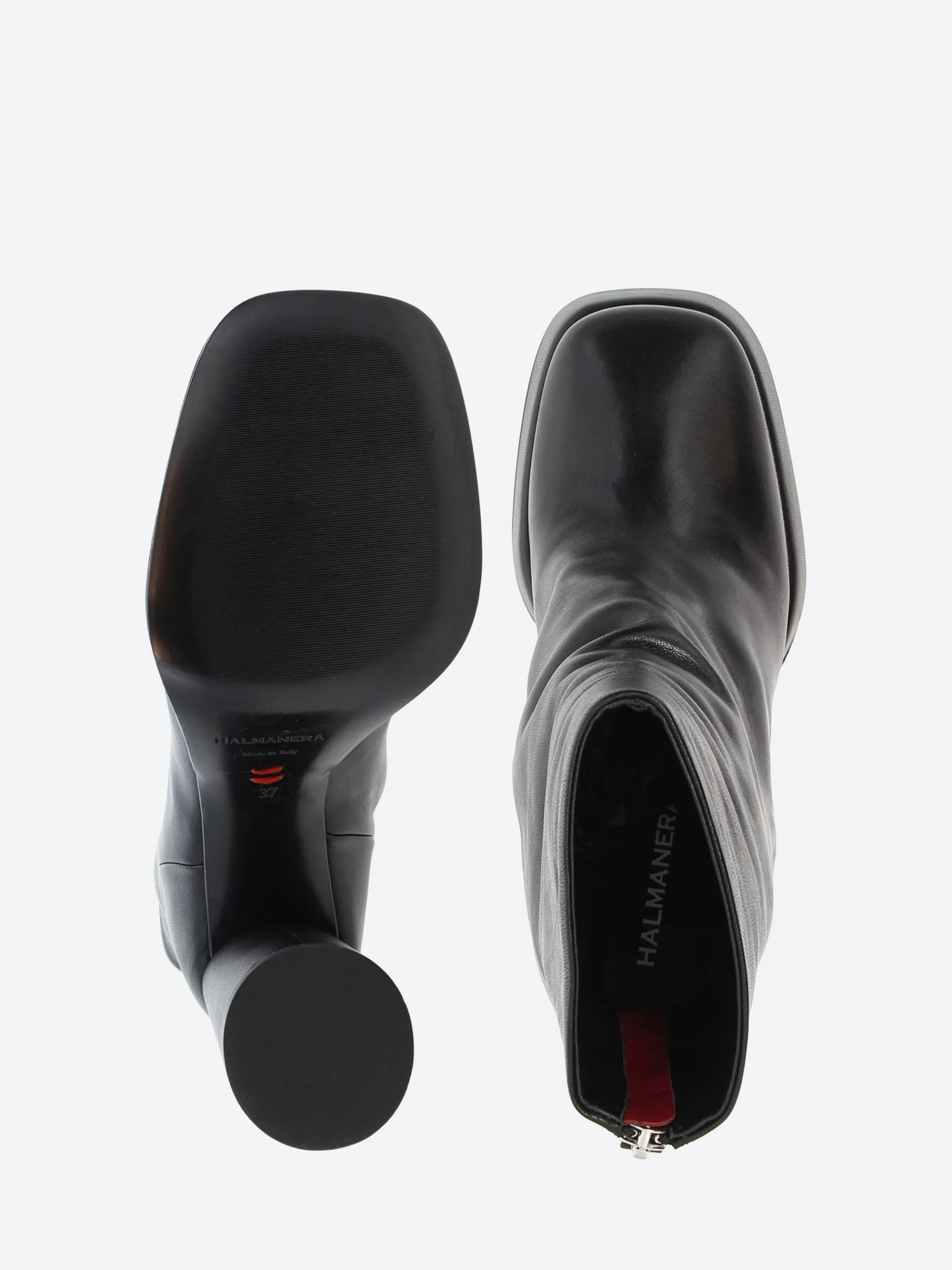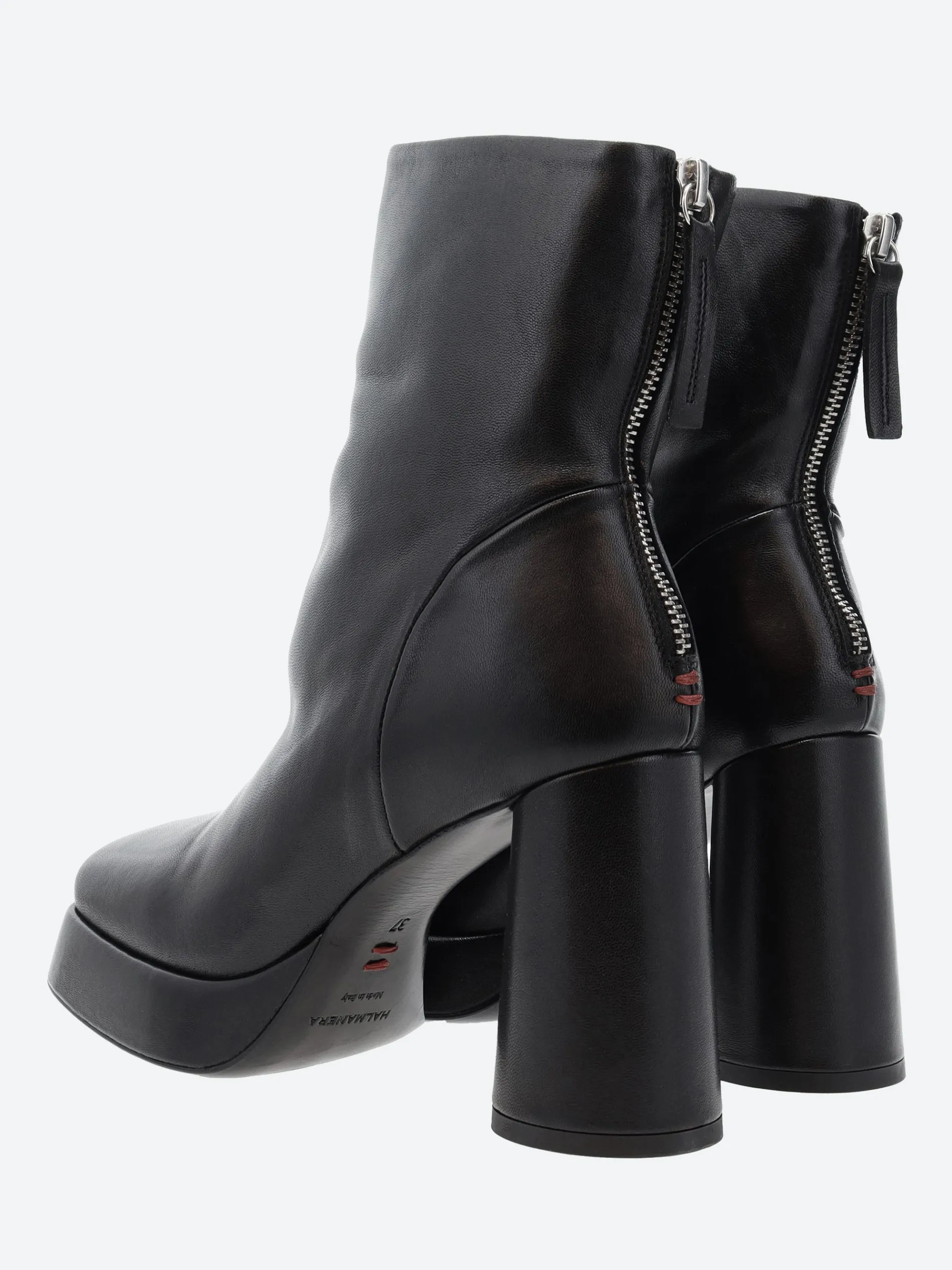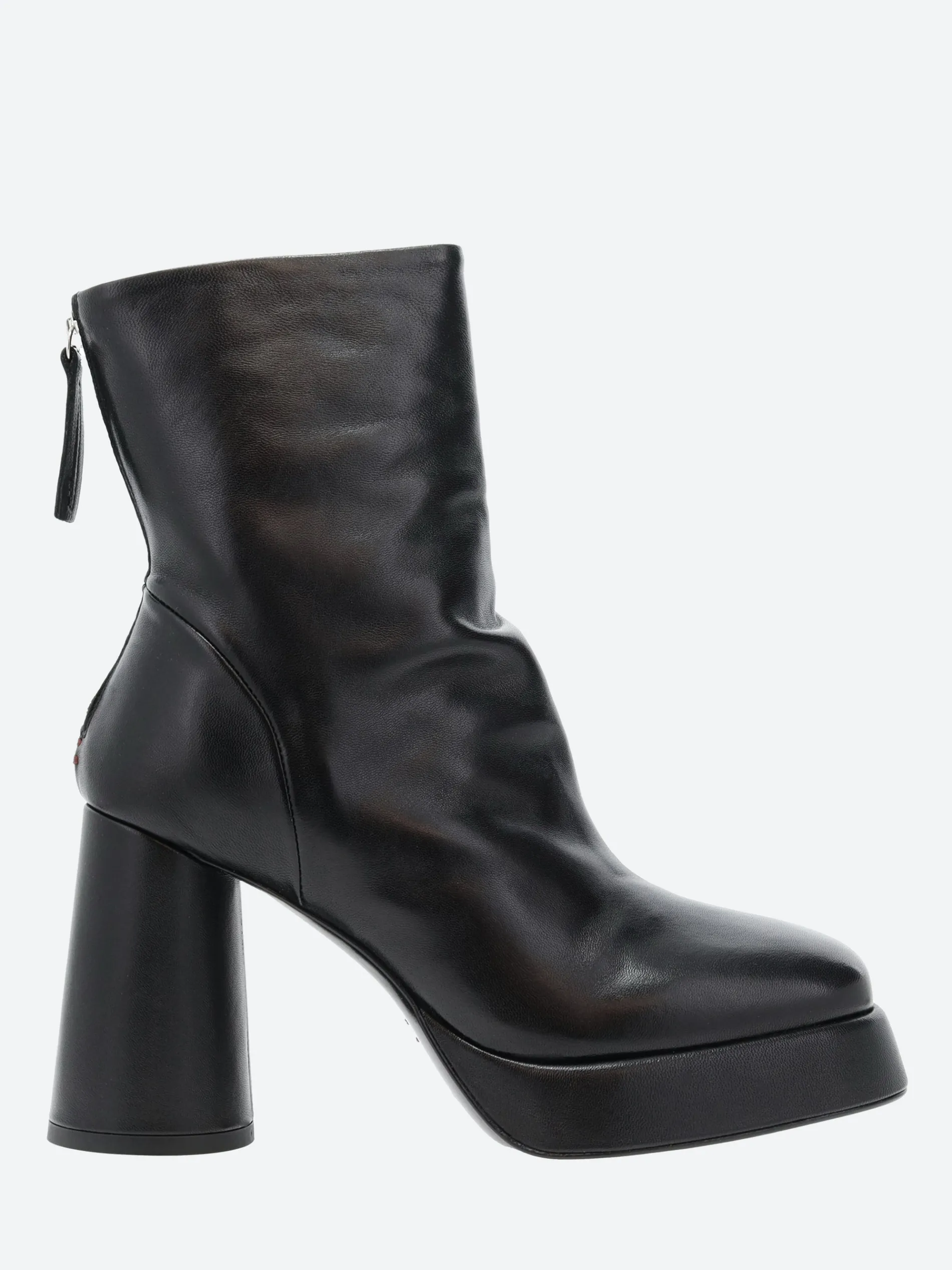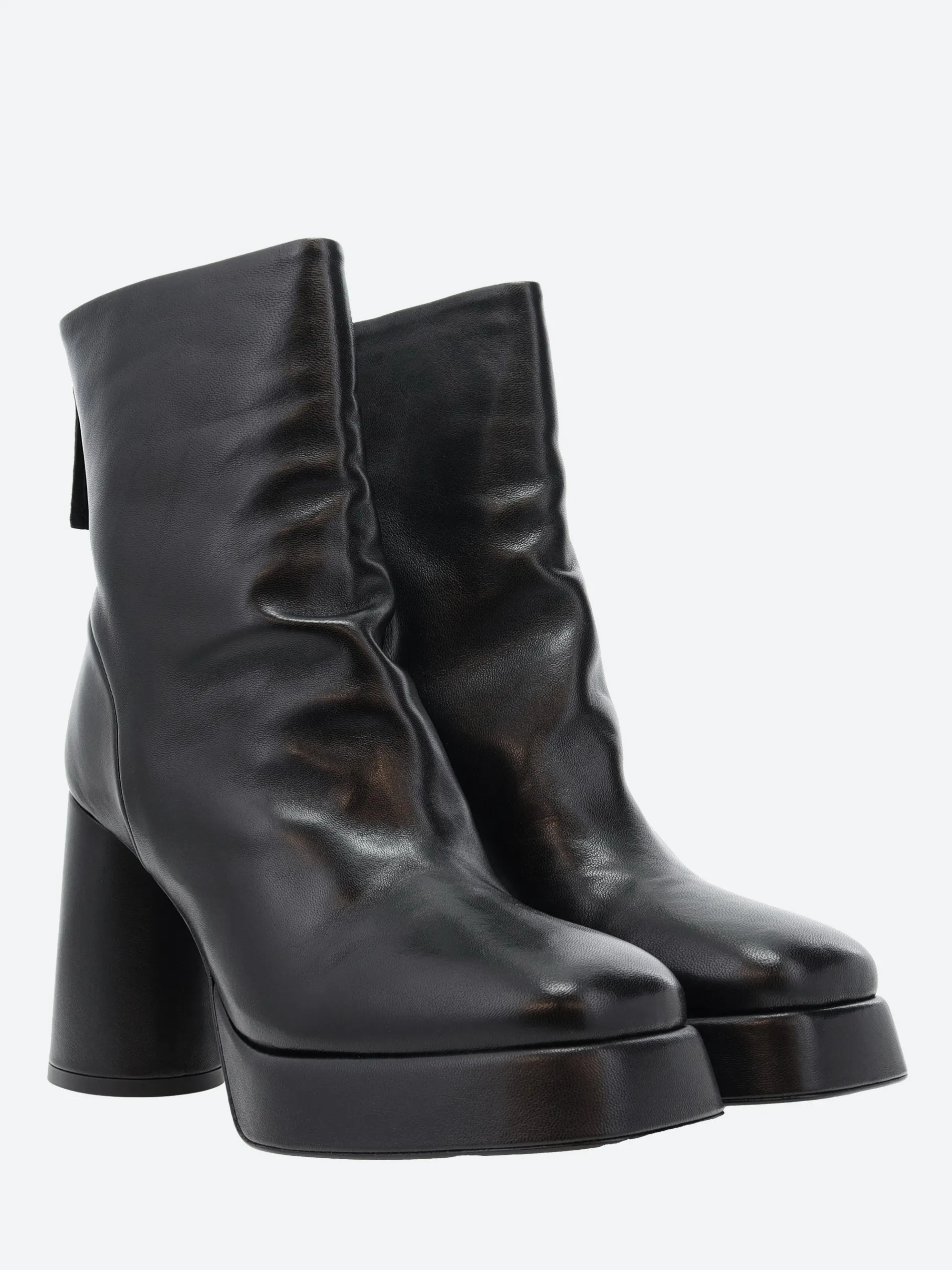 Halmanera heeled boot in supple leather. A slip-on style for easy on and off. Finished with a block heel and platform sole.