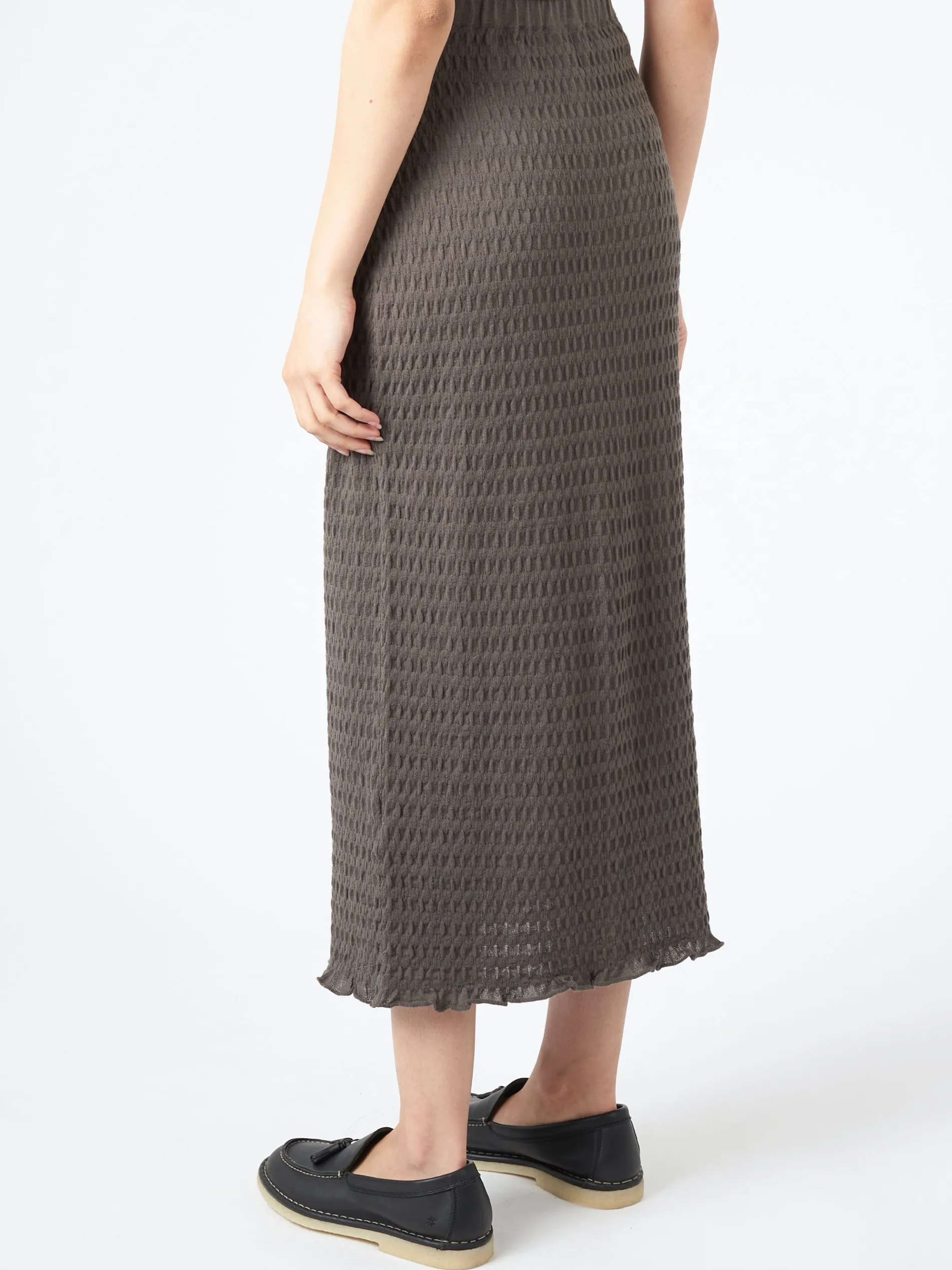 Made from Pima cotton, this slim-fitting skirt has a soft, textural feel. It boasts an elastic waist and ruffle trim.
