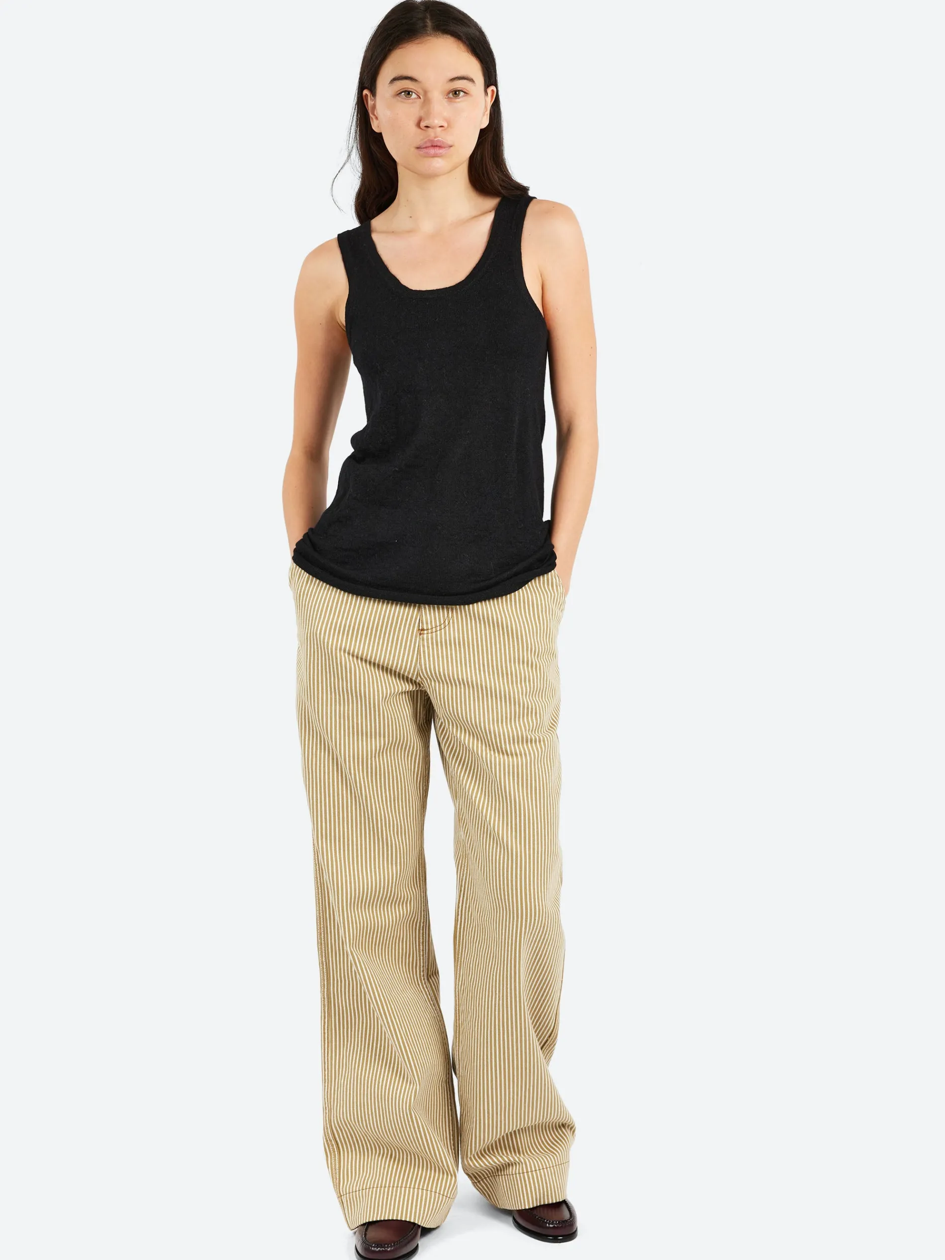 Lauren Manoogian tank with rolled finish at sleeves and hem in lightweight and high gauge baby alpaca knit.