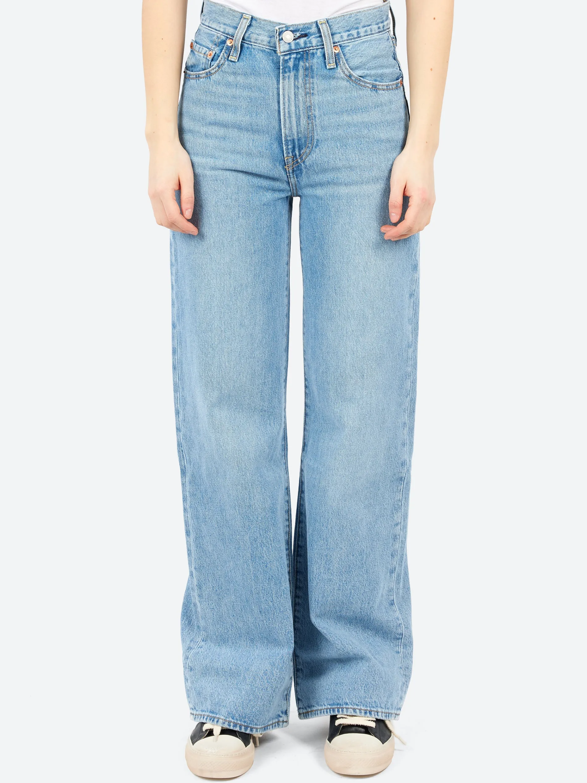 The tailored, leggy look of the ’70s and a ’90s-inspired super-high rise come together to create the perfect proportion to show off the rise and define your waistline.