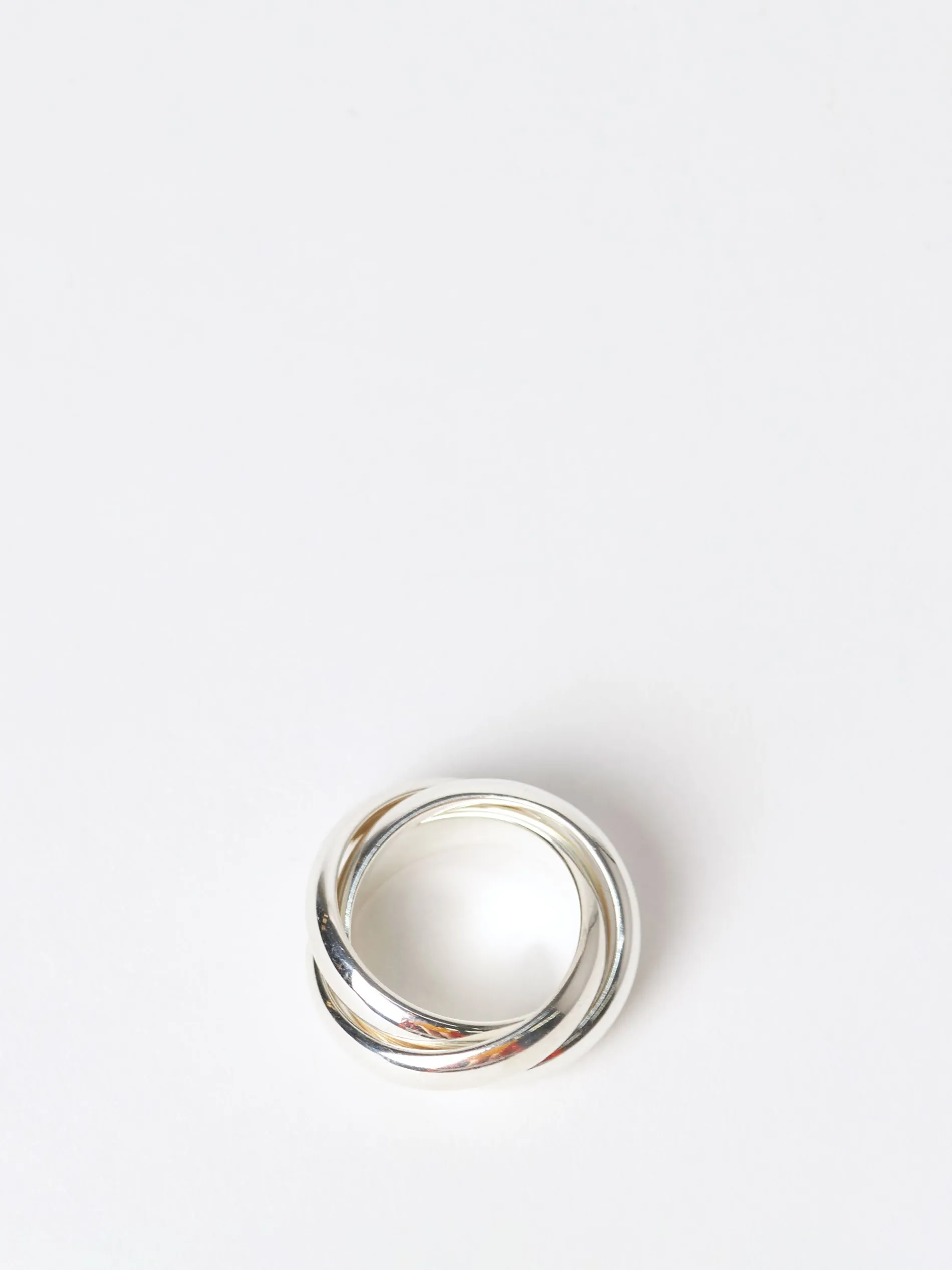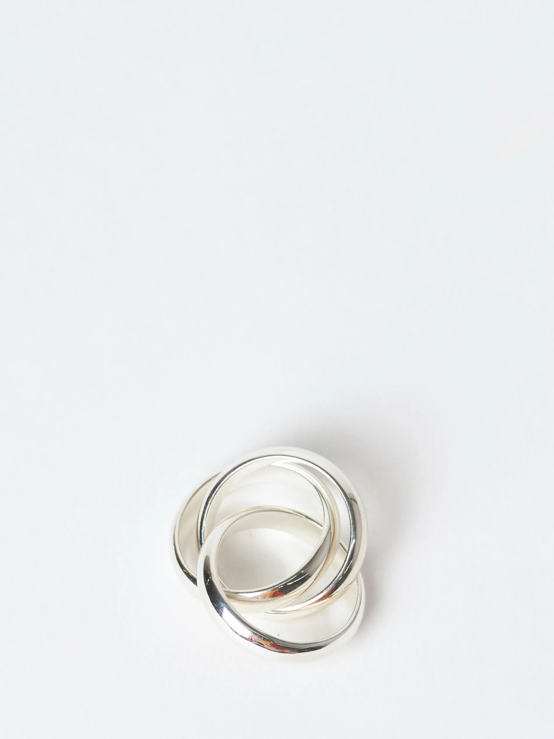 The Sofie Ring is a stand-alone chunky ring, crafted from three intertwined smooth bands. Wear it solo for a statement effect.