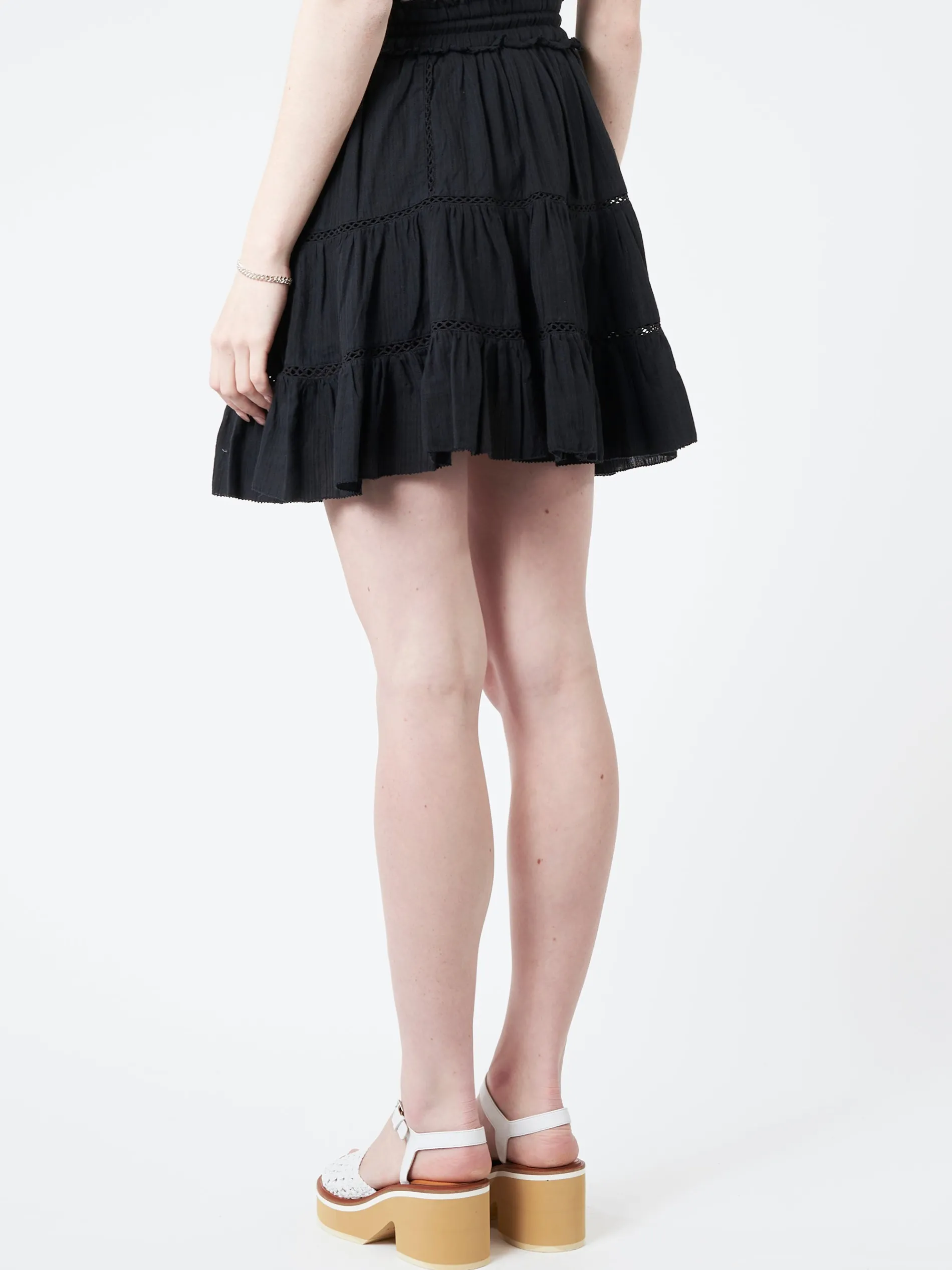 Isabel Marant Étoile Lioline mini skirt with a tiered silhouette and delicate lace detailing throughout.