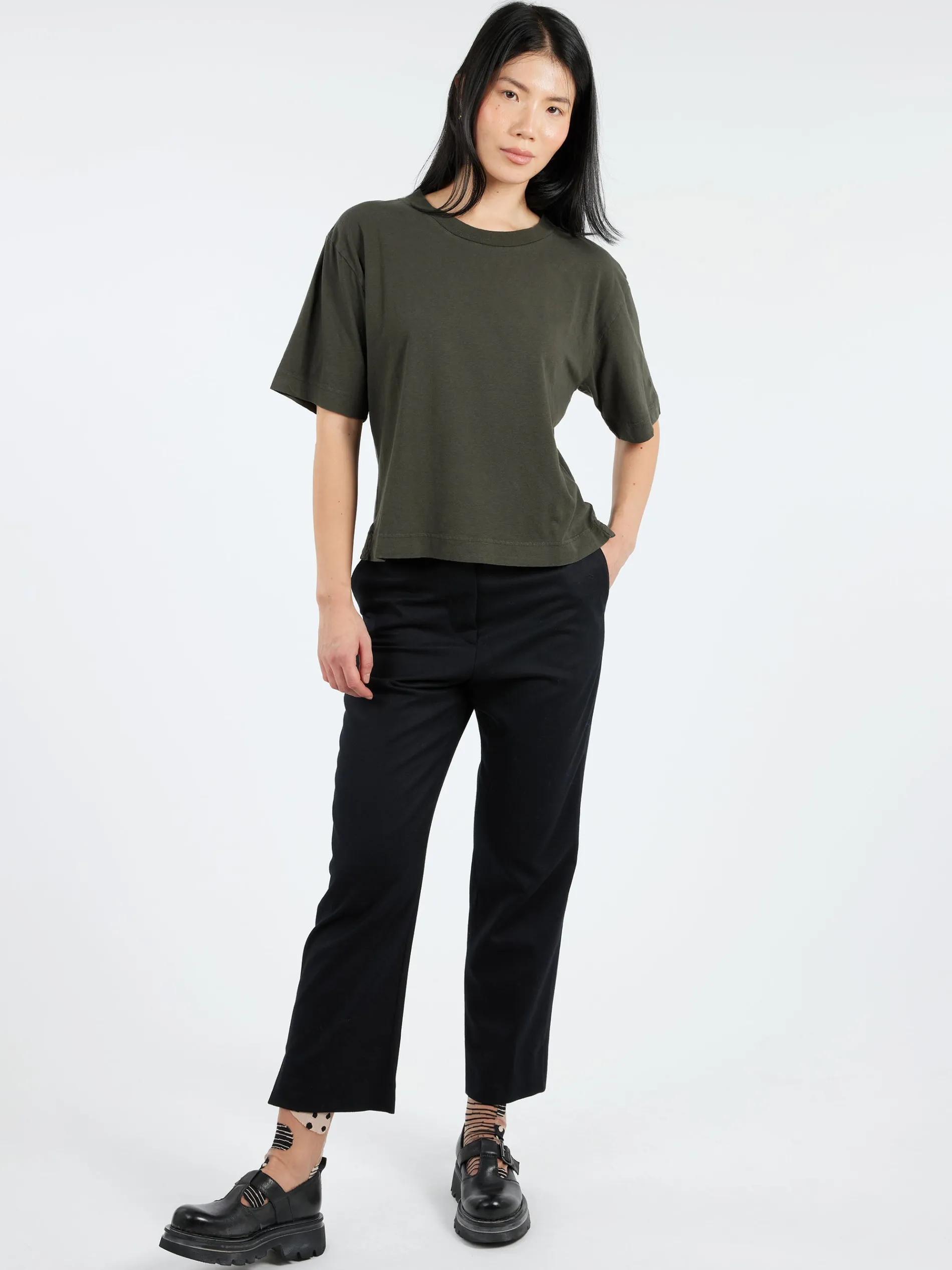 This garment is made from organic cotton and linen. Variation in the appearance of the fabric is characteristic of the natural fibers and finishing method.