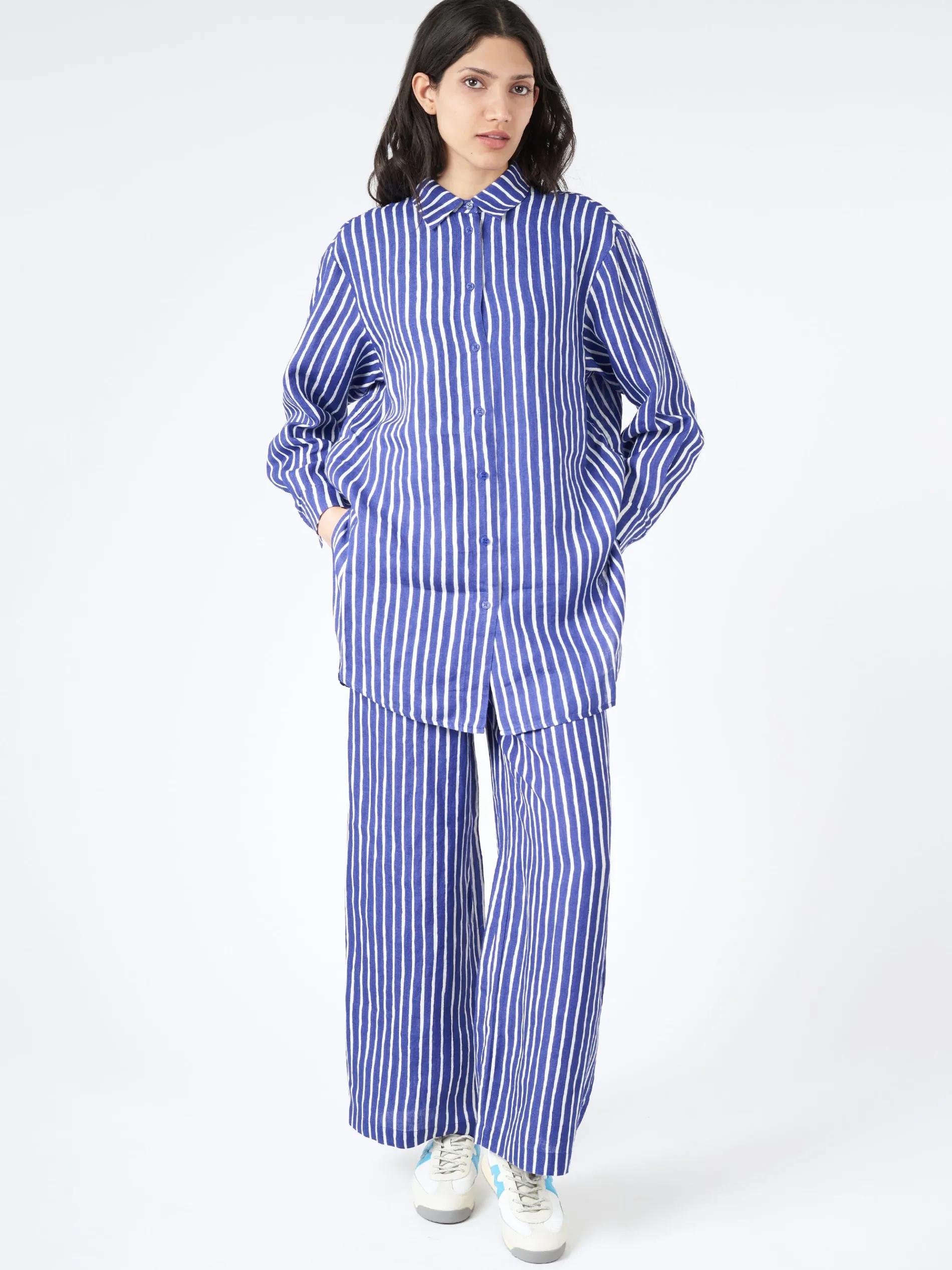 The Merivirta linen trousers have a relaxed fit and long, straight trouser legs, and they feature the Piccolo pattern, which is printed in Helsinki.