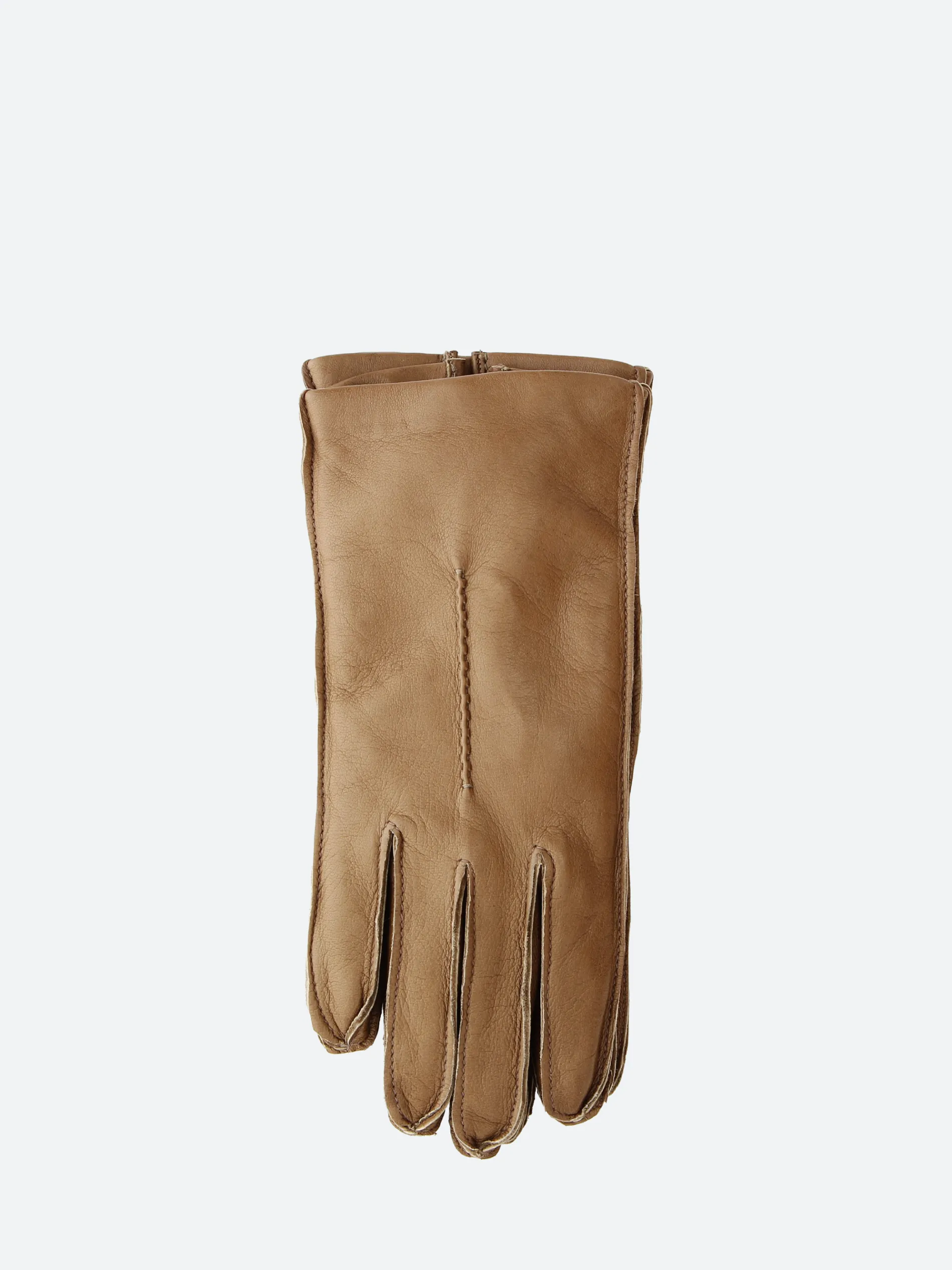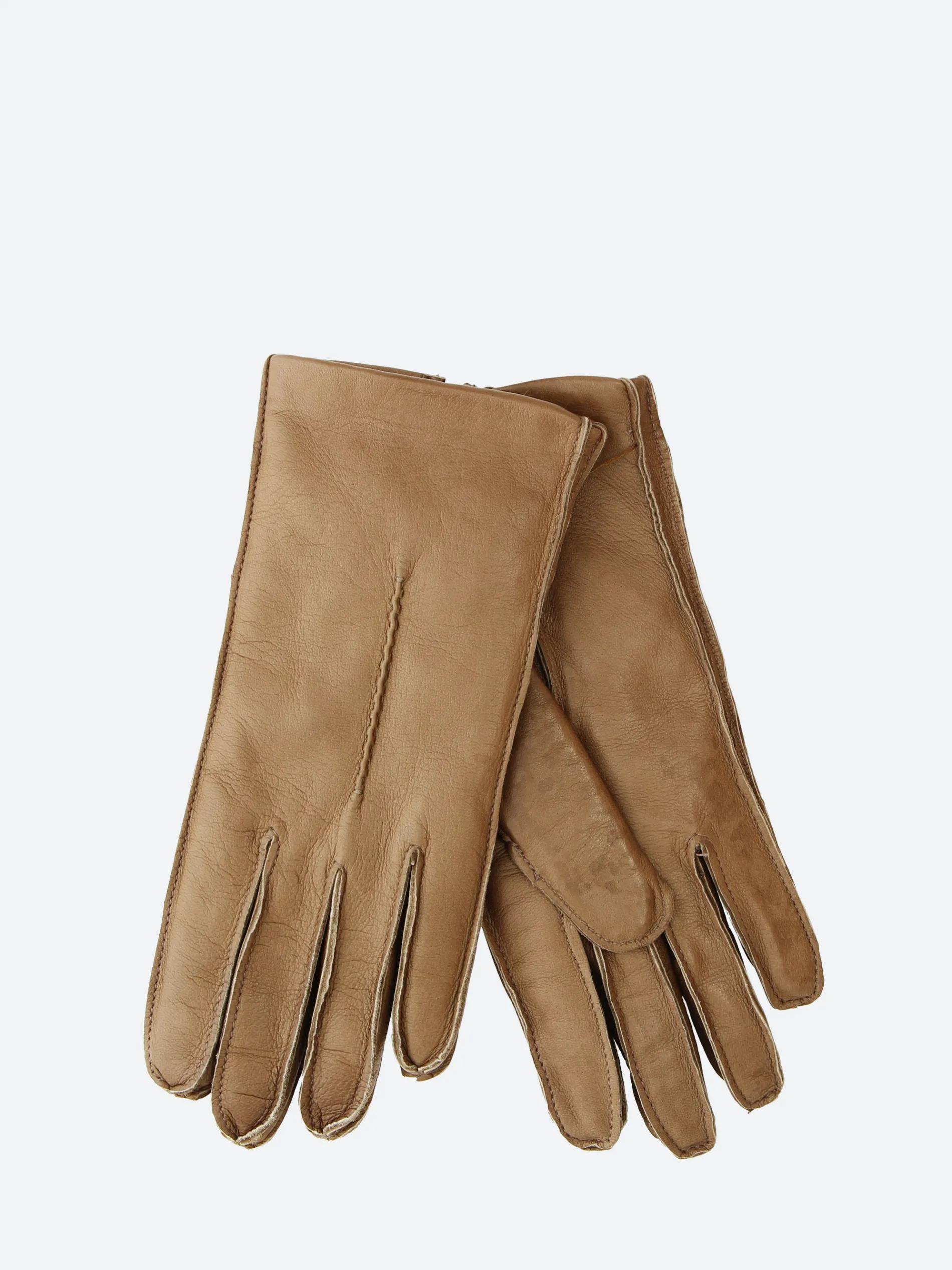 Women’s leather glove with soft 100% cashmere lining and notch opening on the wrist.