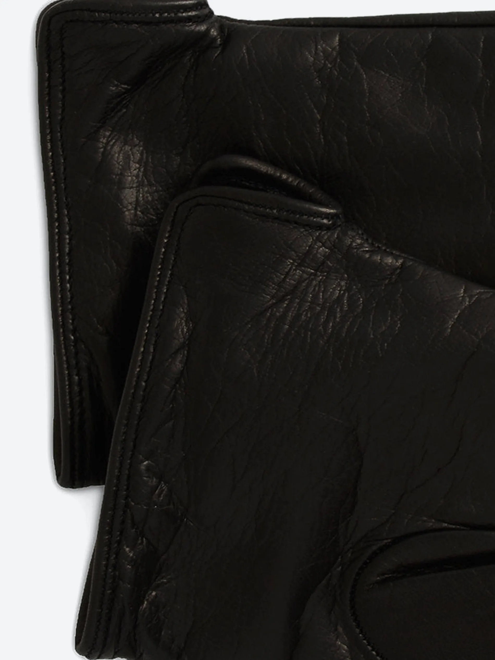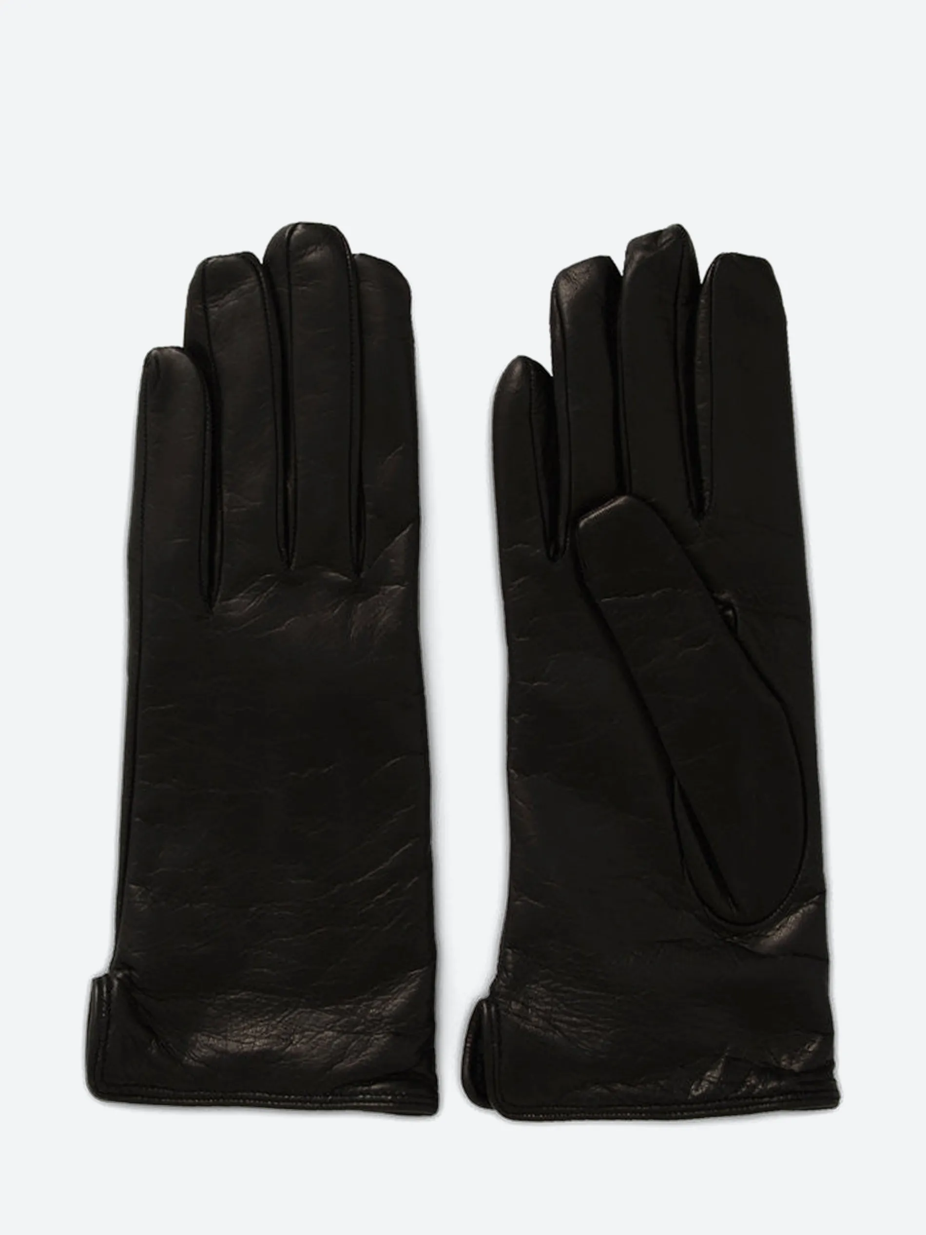 Women’s leather glove with soft-knit 100% cashmere lining and side opening on the wrist.