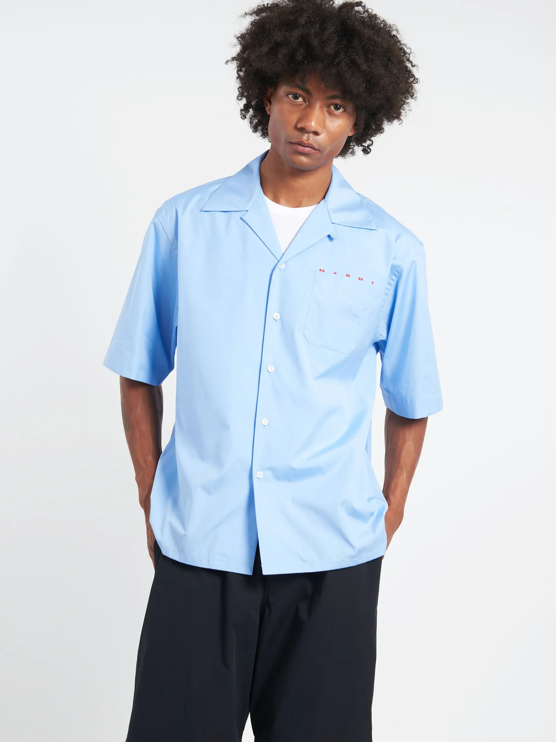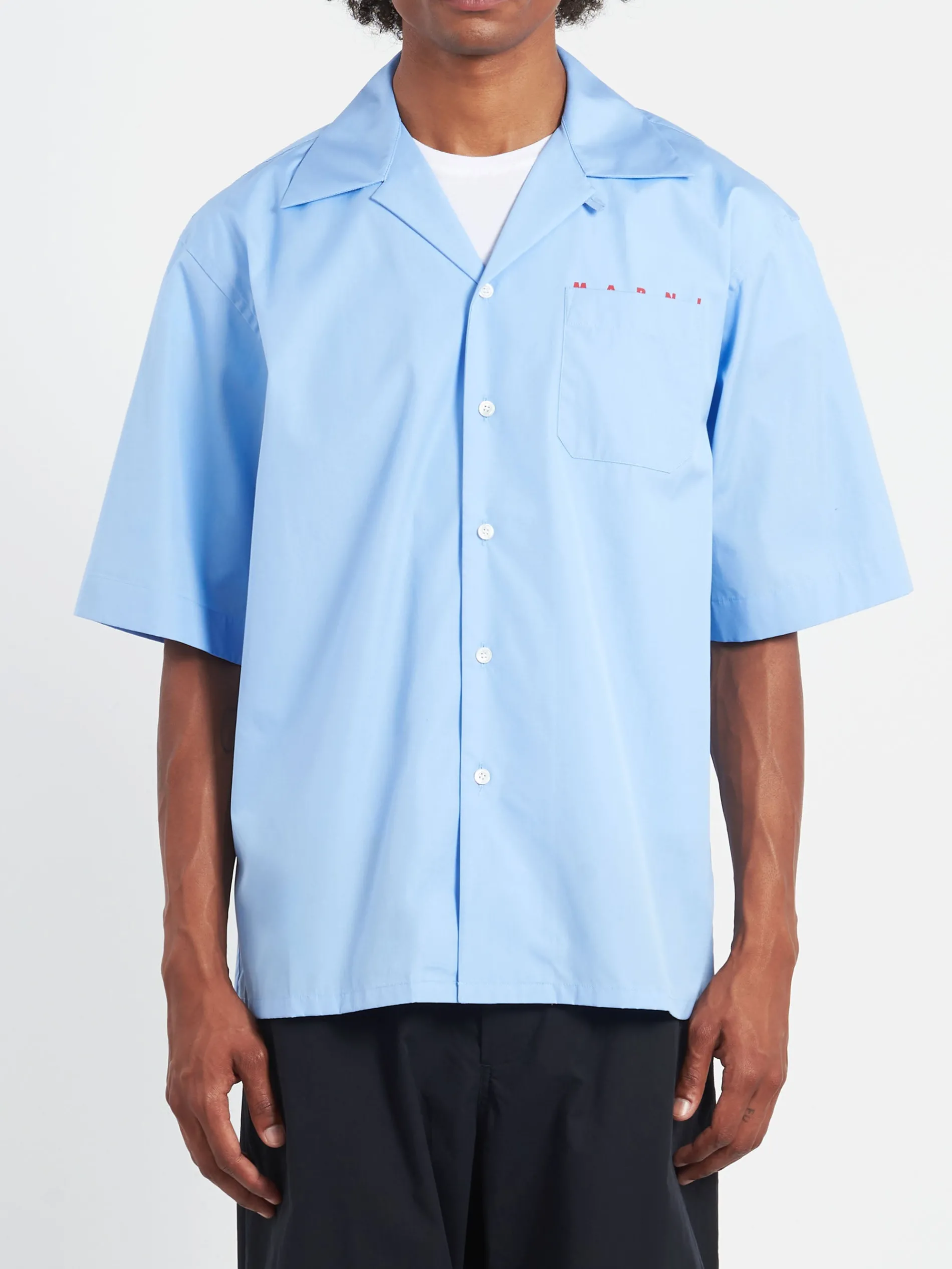 Short-sleeved bowling shirt made from organic cotton poplin. Detailed with a Marni logo poking out from behind the chest pocket.