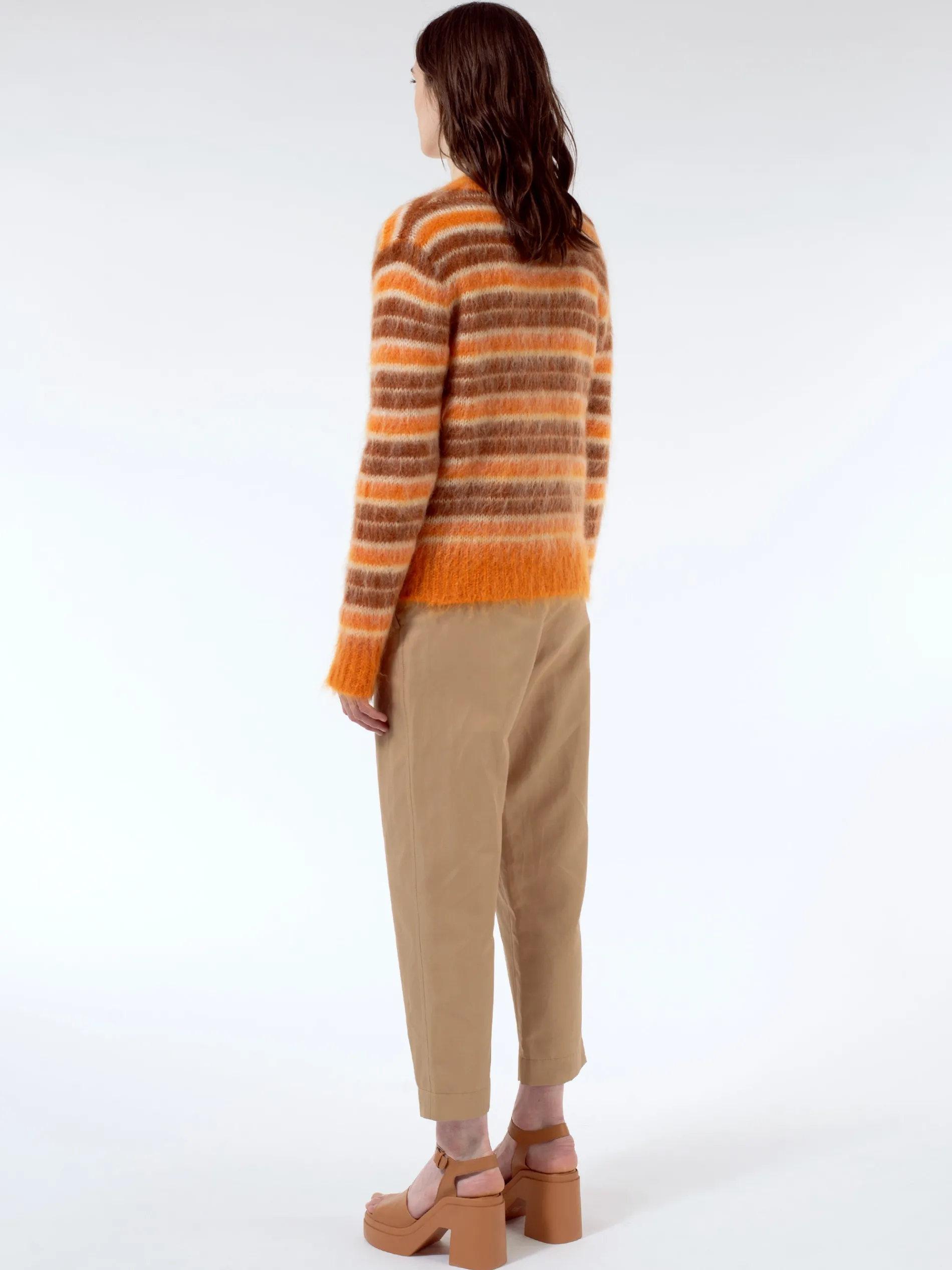 Marni long-sleeve cardigan in brushed mohair with multicolour stripes.