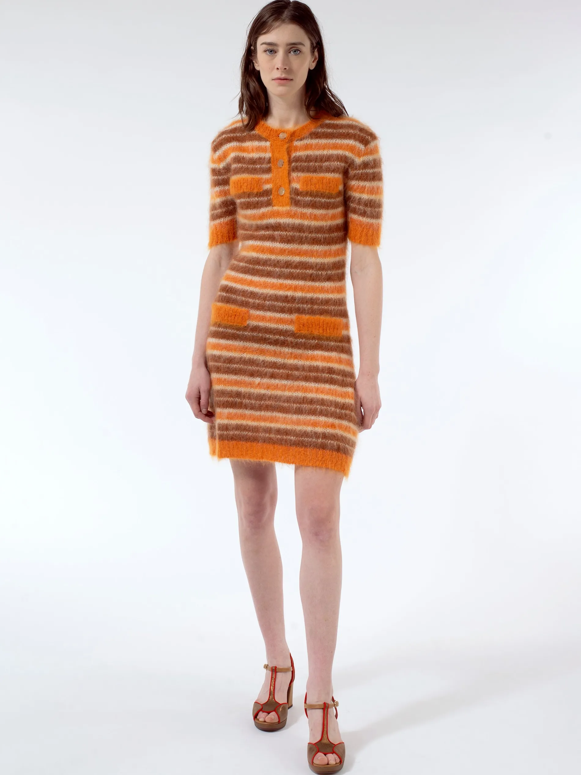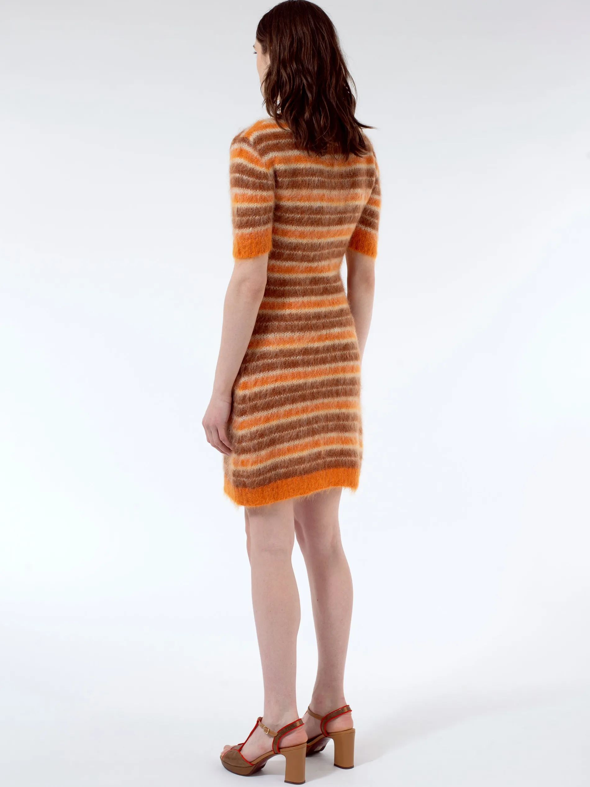 Marni short-sleeve dress in brushed mohair with multicolour stripes that draws inspiration from the 60s.