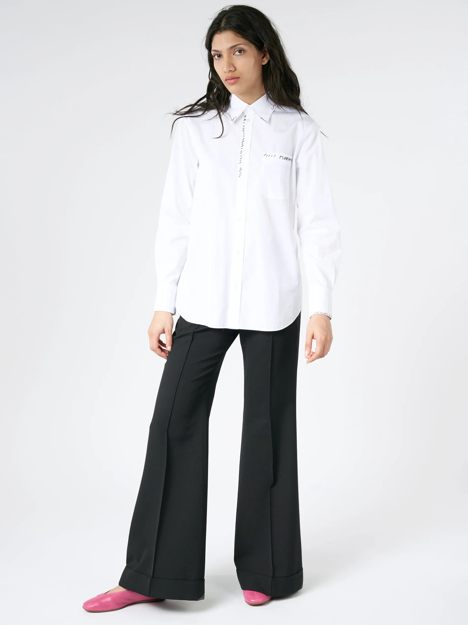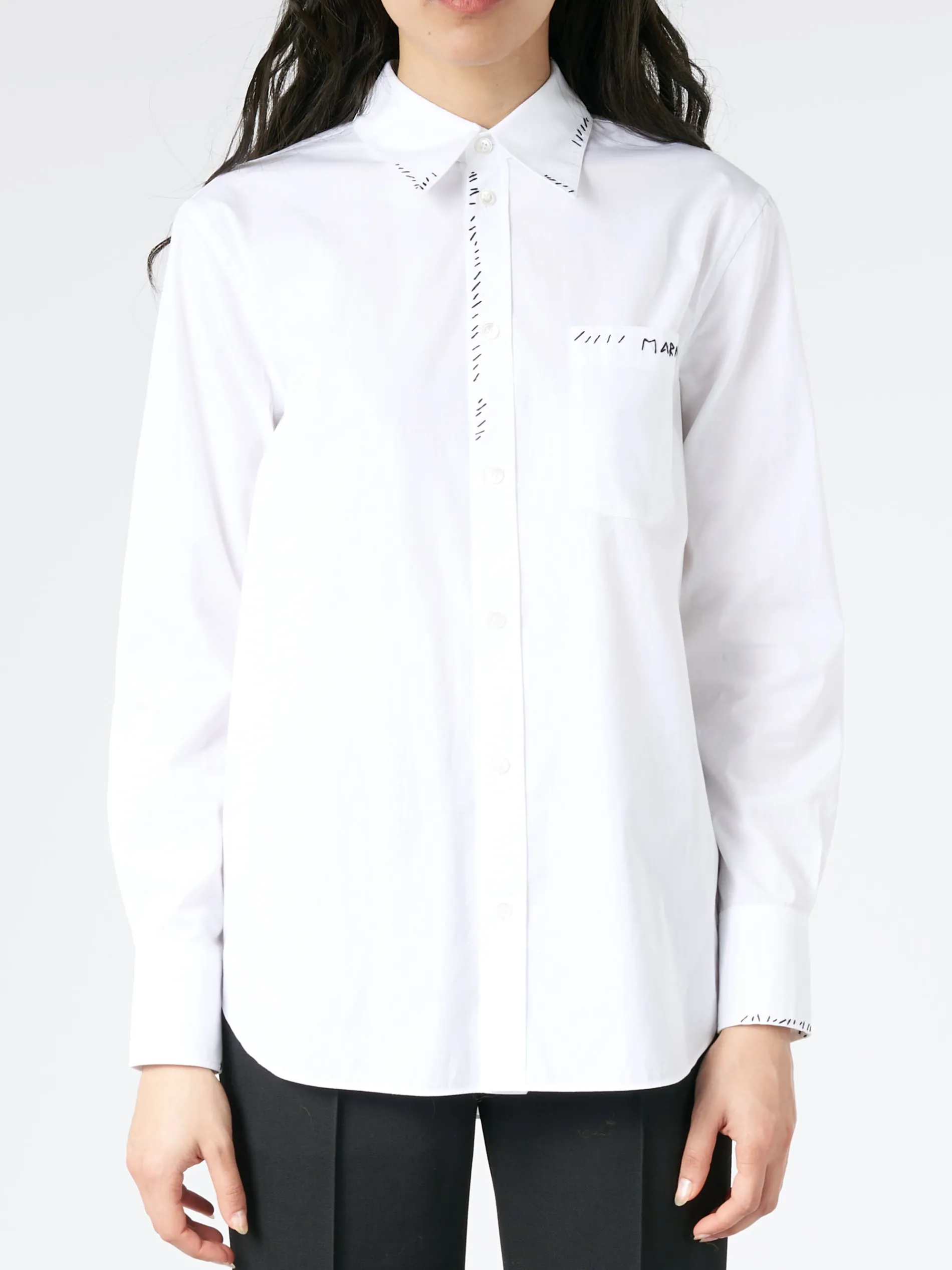 Long-sleeved shirt made from bio cotton poplin. Hand-stitched Marni mending on the collar, placket and pocket with flower detail.