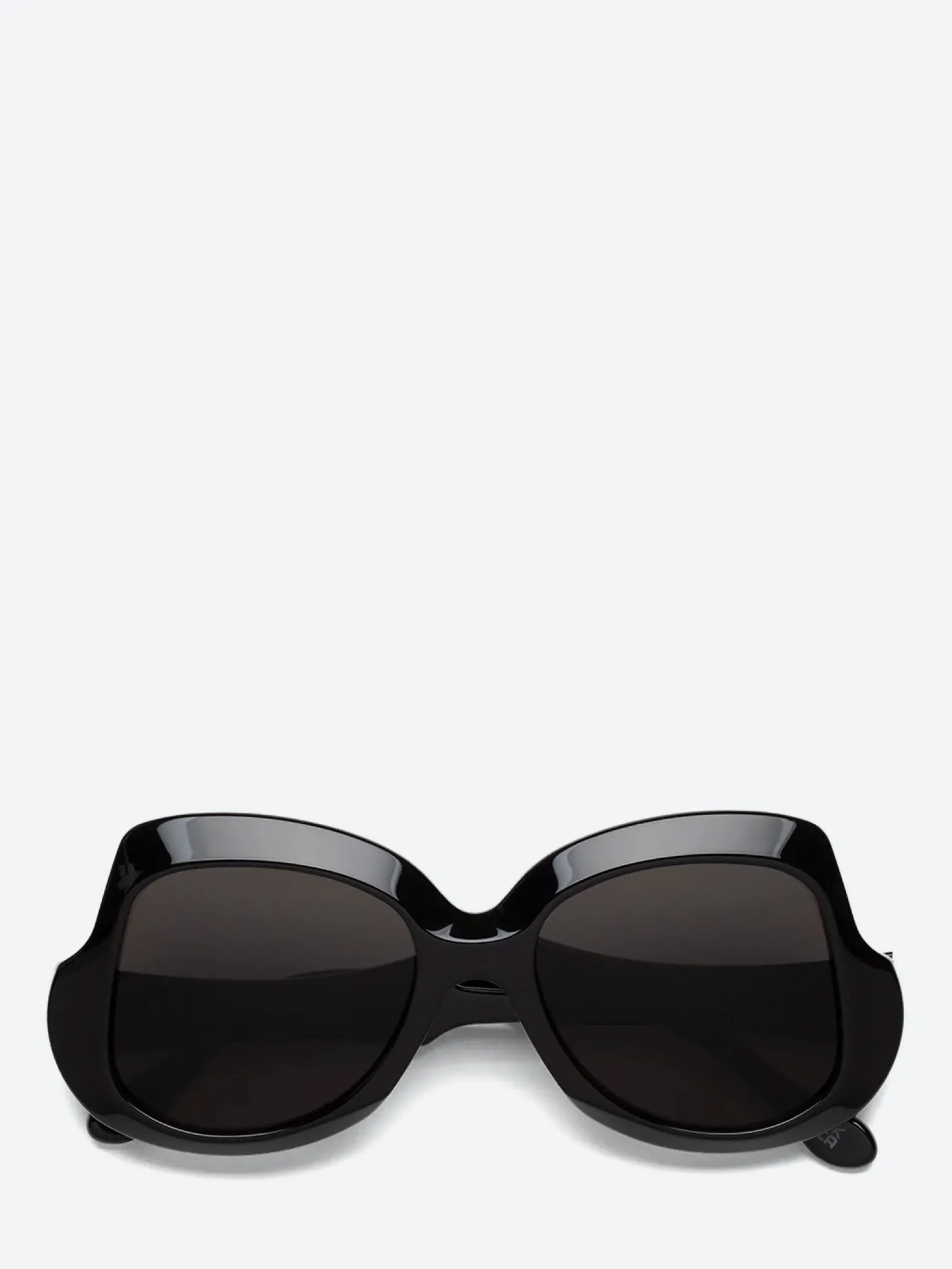 Marni sunglasses crafted from Italian acetate, with a modern, sculptural round shape. Features a gold-tone Marni logo on the outer temple.