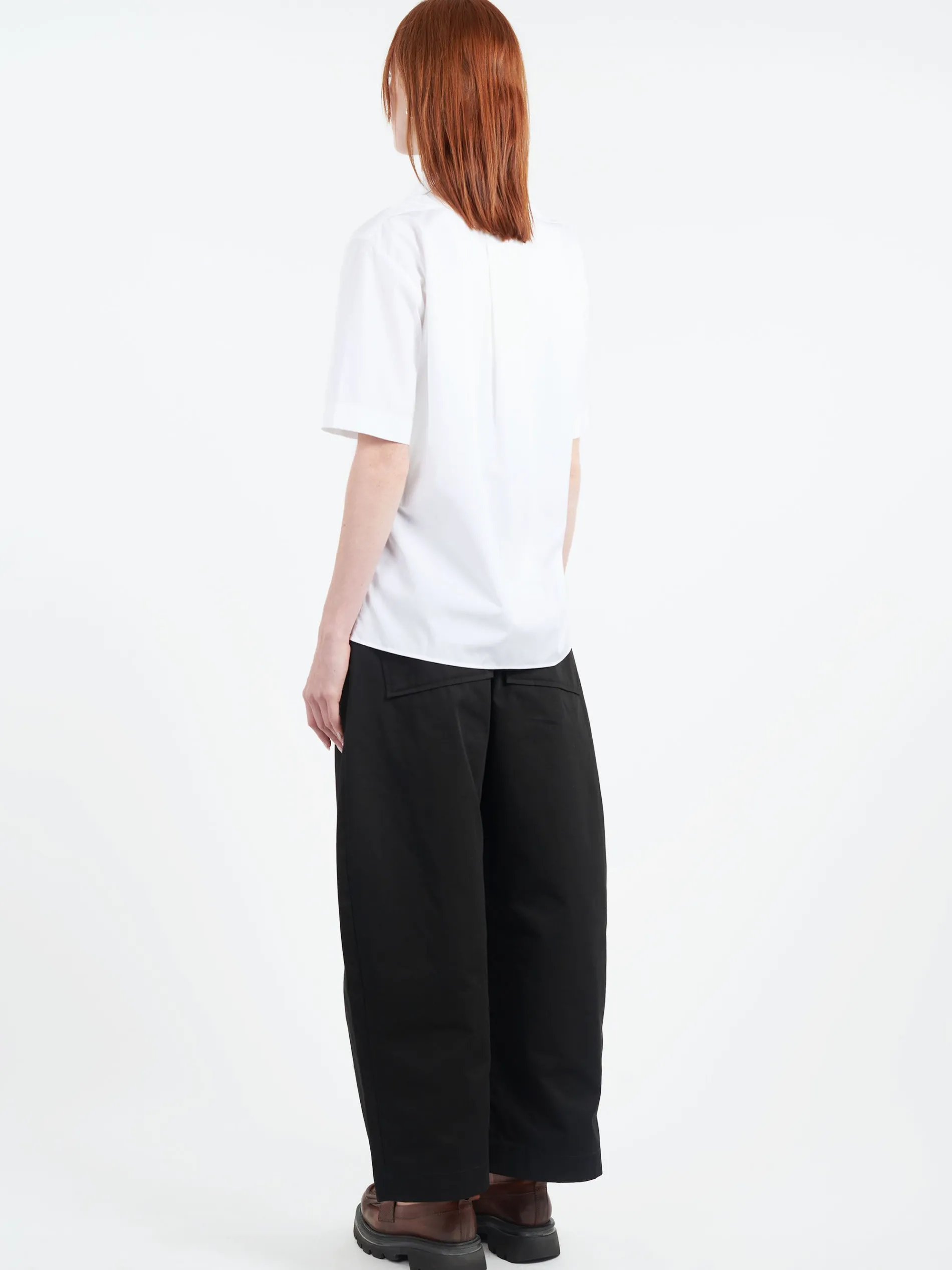 Short-sleeved shirt made from organic cotton poplin. Hand-stitched Marni mending on the collar, placket and pocket with flower detail.