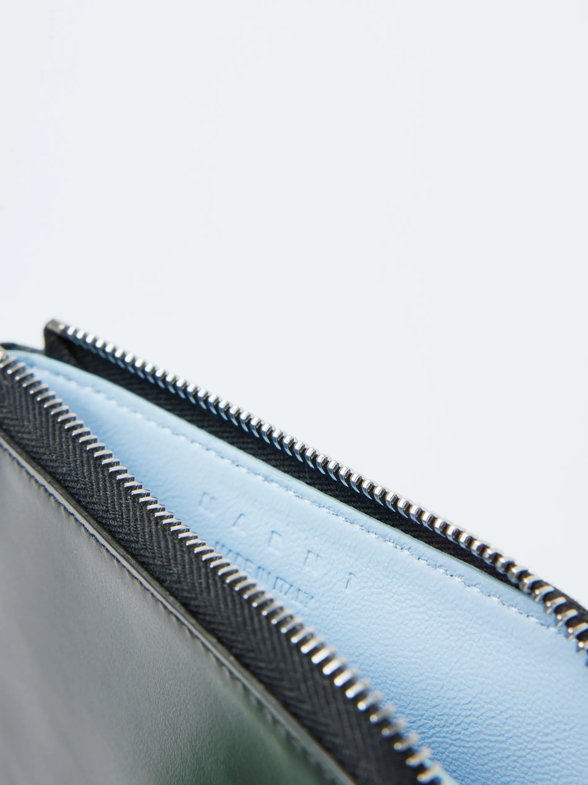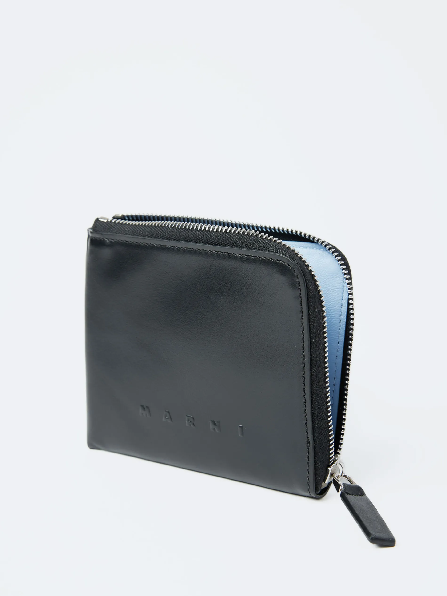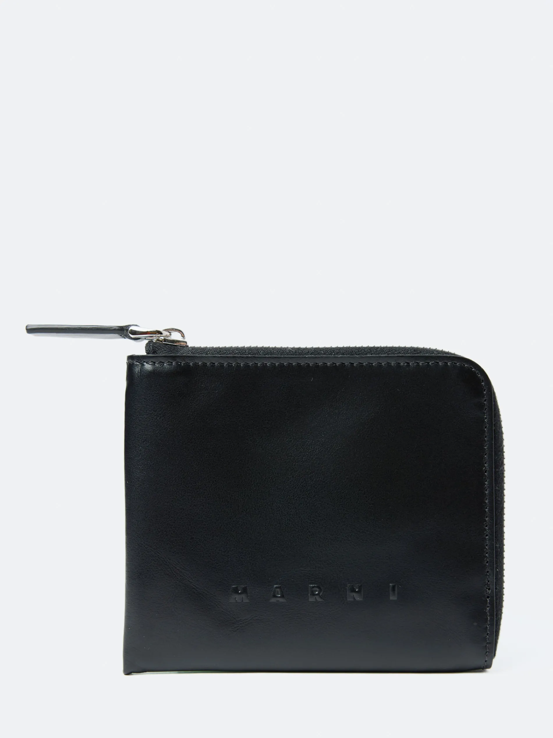 Wallet made from smooth calfskin leather with an L-shaped zip-around closure.