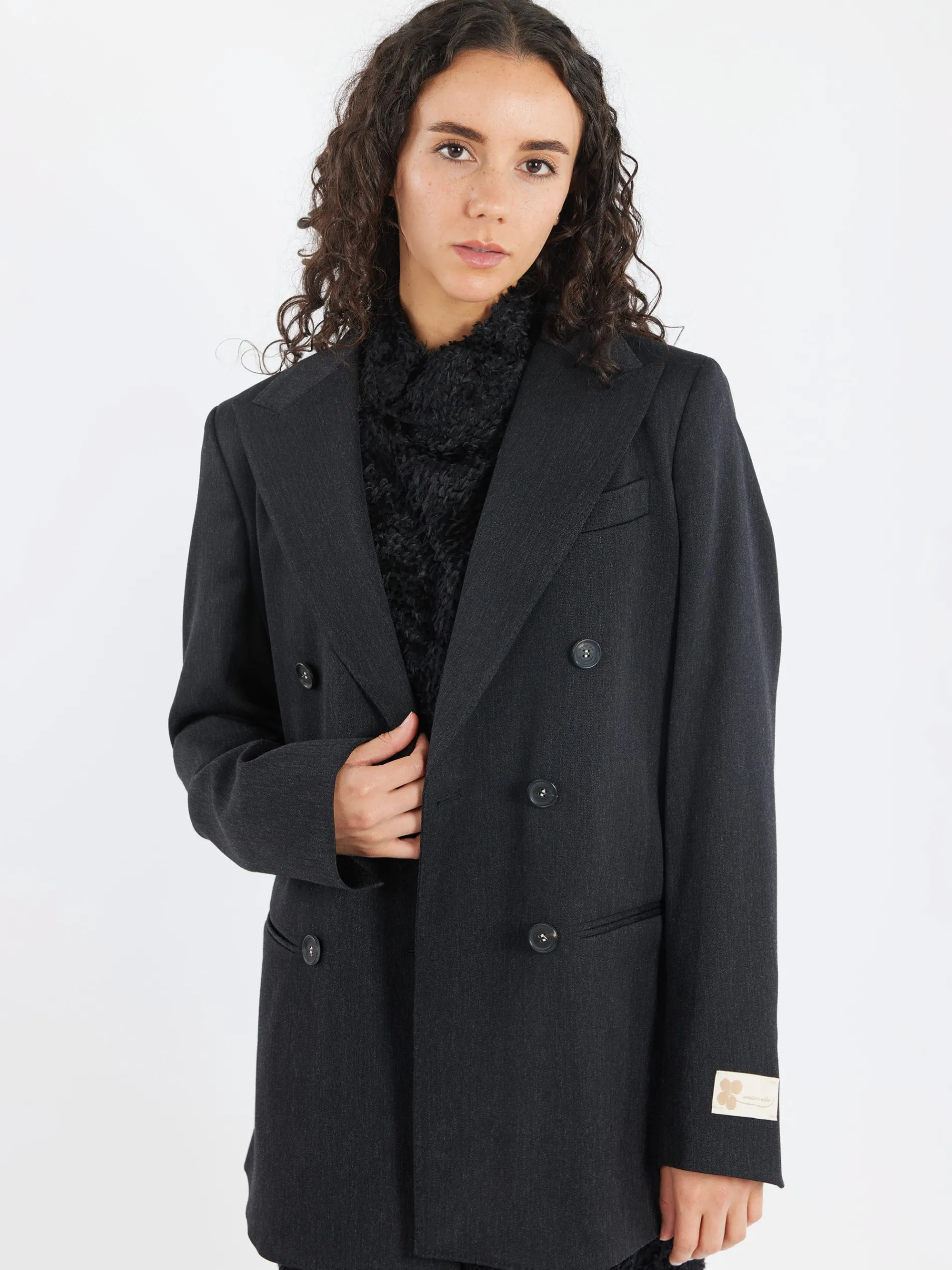 Comfort-fit long double-breasted jacket with flap pockets. Made from a soft pure wool blend.