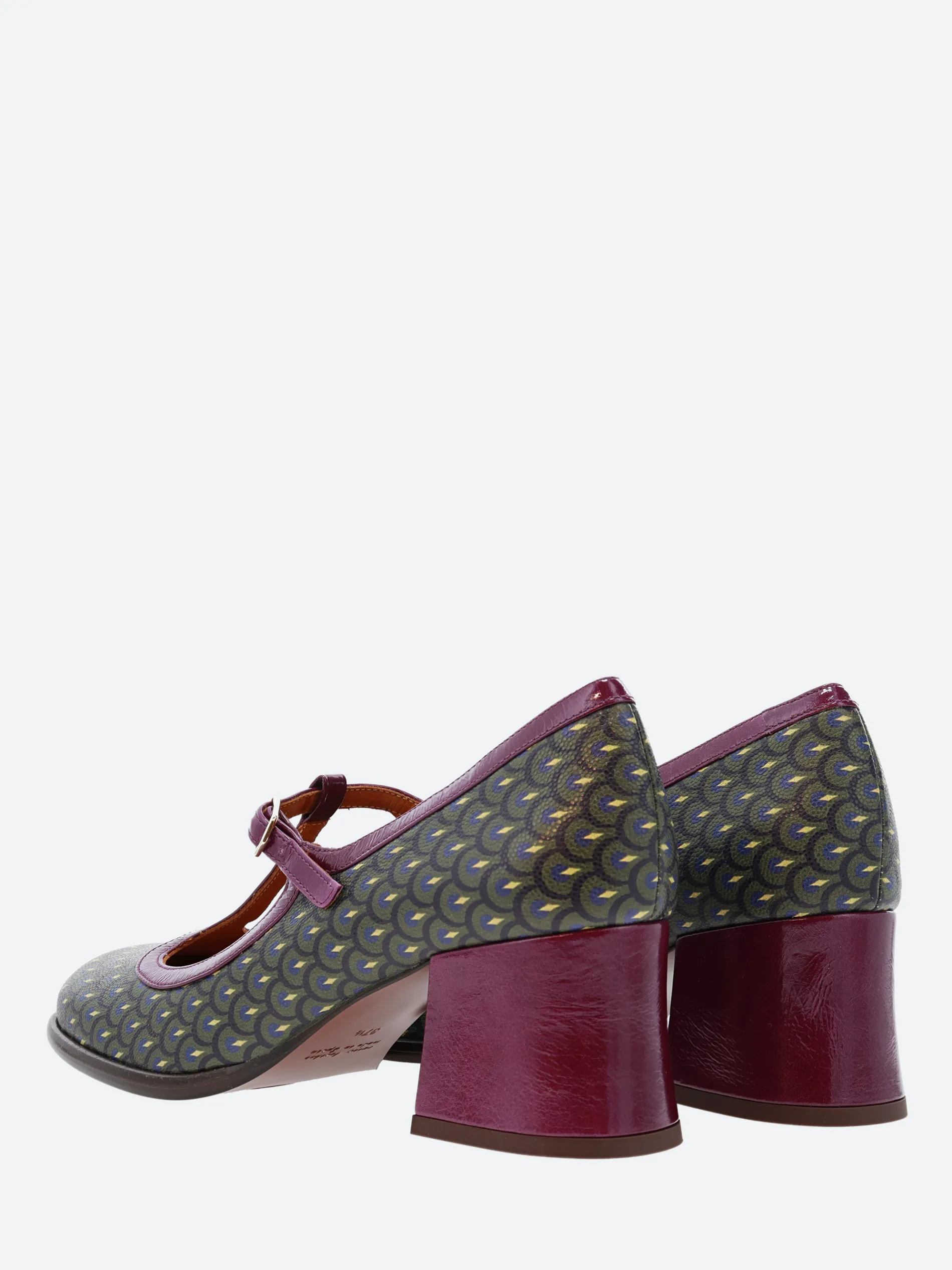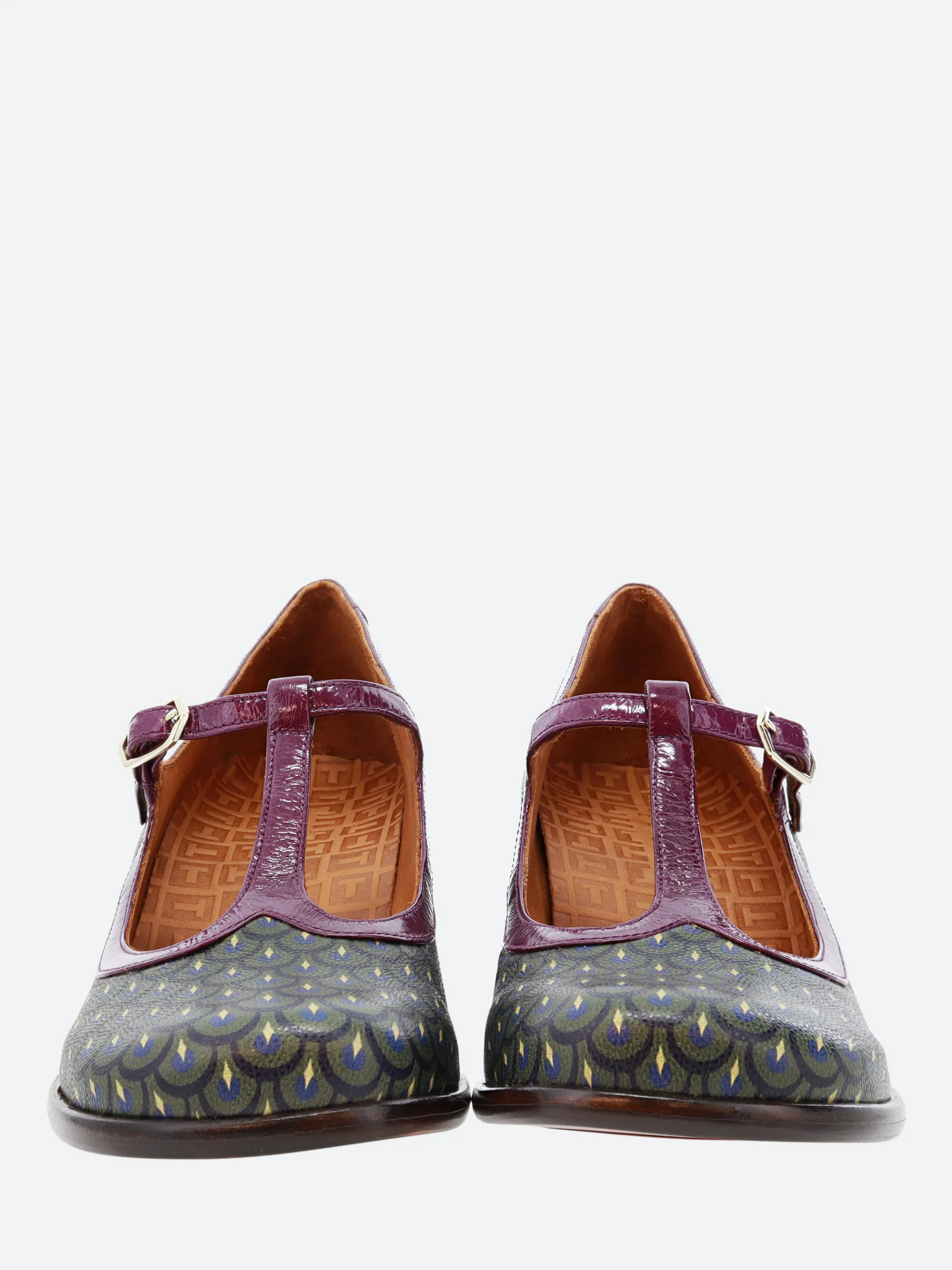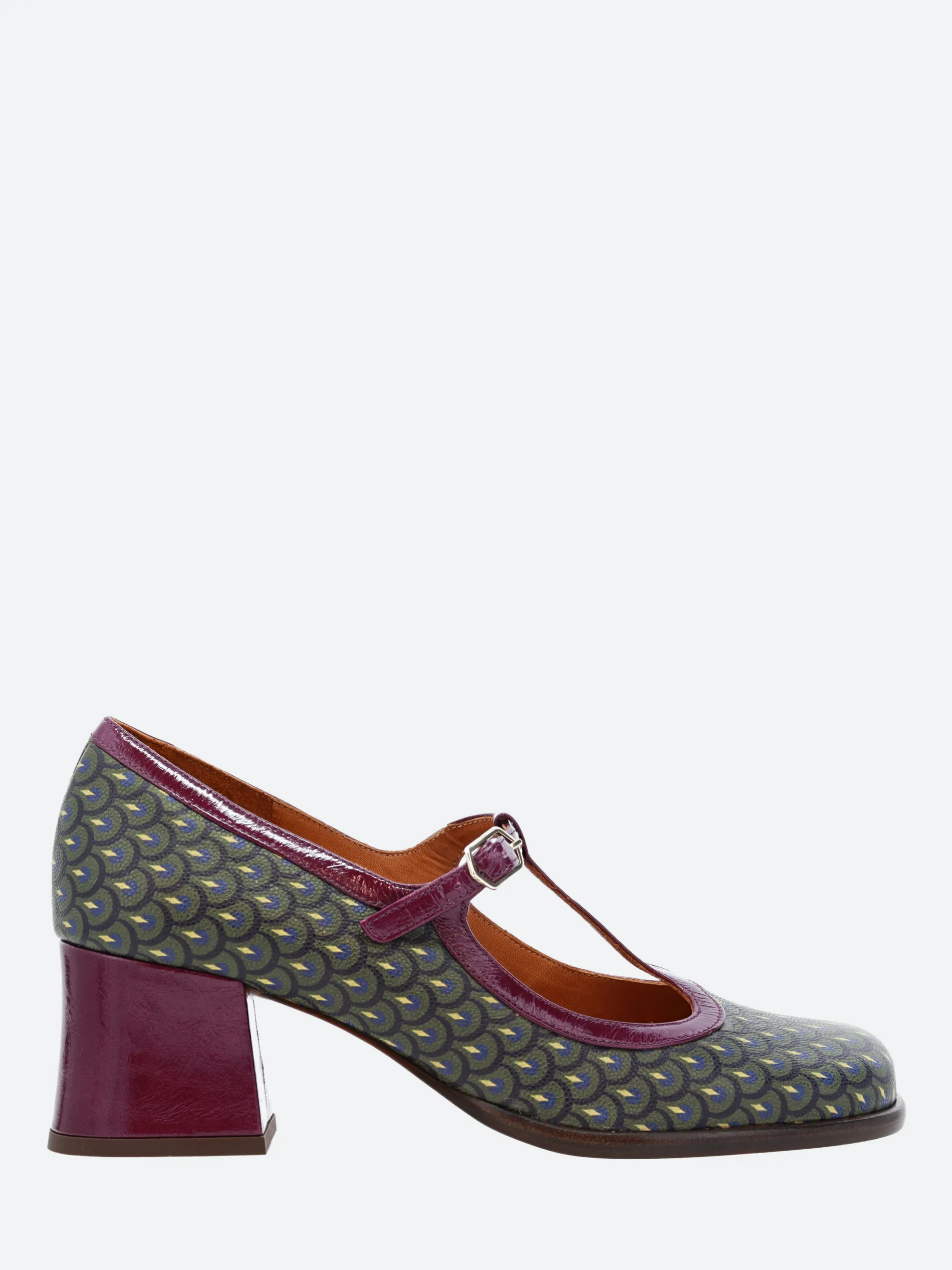 Chie Mihara Melka, a T-bar strapped shoe with a soft leather upper, sitting on a high, stacked heel.