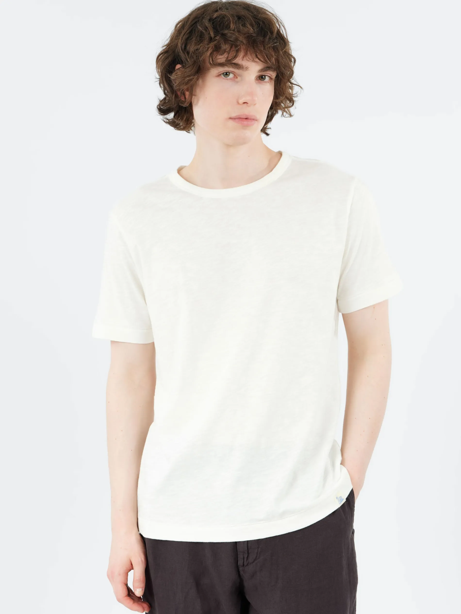A relaxed-fit crew neck t-shirt that looks great, breathes well and feels ultra-soft on the skin. Perfect for the warmer months, this t-shirt is made with a 4.9 oz light slub Pima cotton.