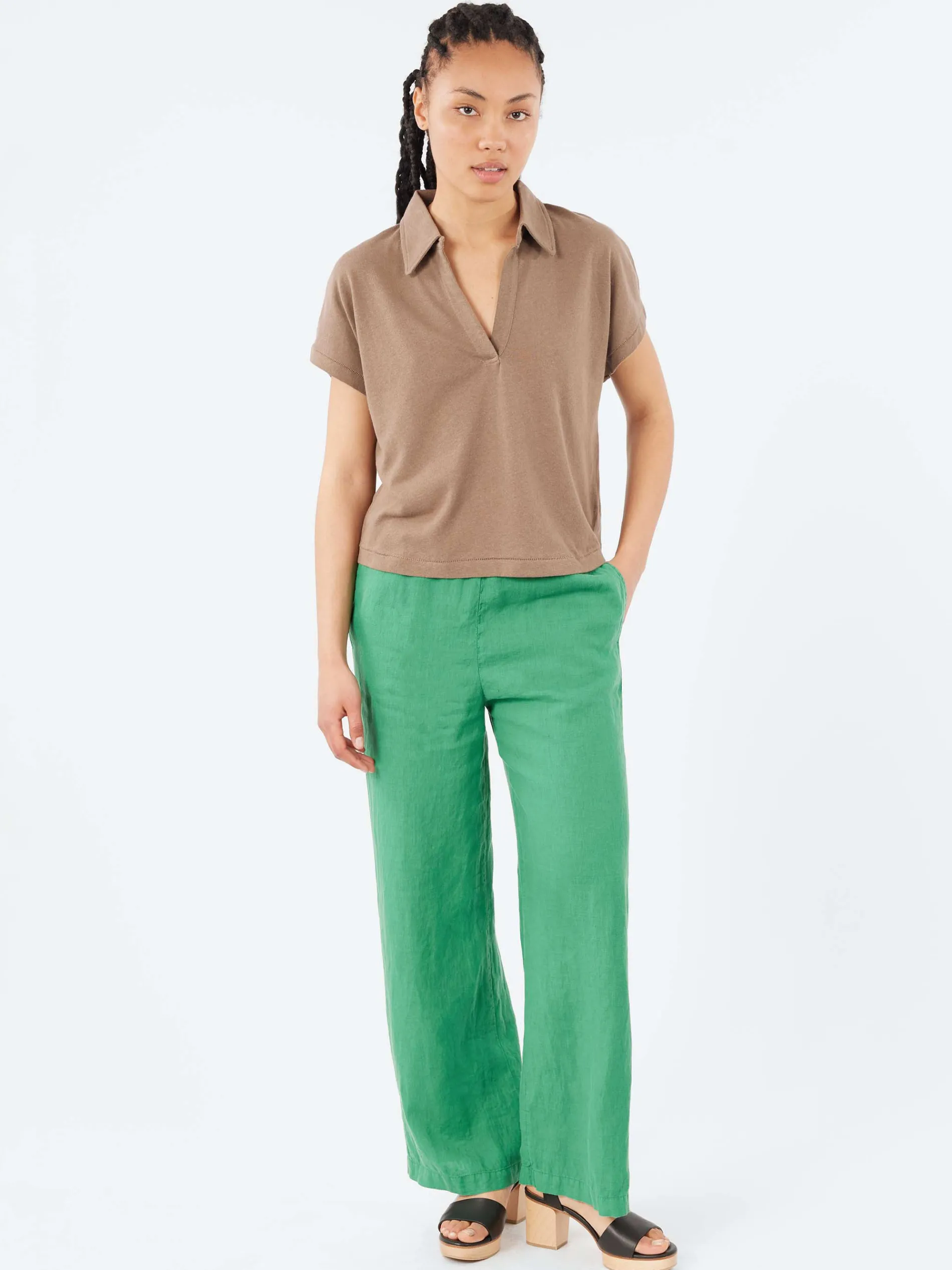 In time for summer, this polo shirt is made with a 50/50 blend of linen and organic cotton. A perfect choice for the warmer seasons to come, this sleeveless t-shirt has a relaxed fit and a polo neckline that will help you feel cool and comfortable even on the hottest days.
