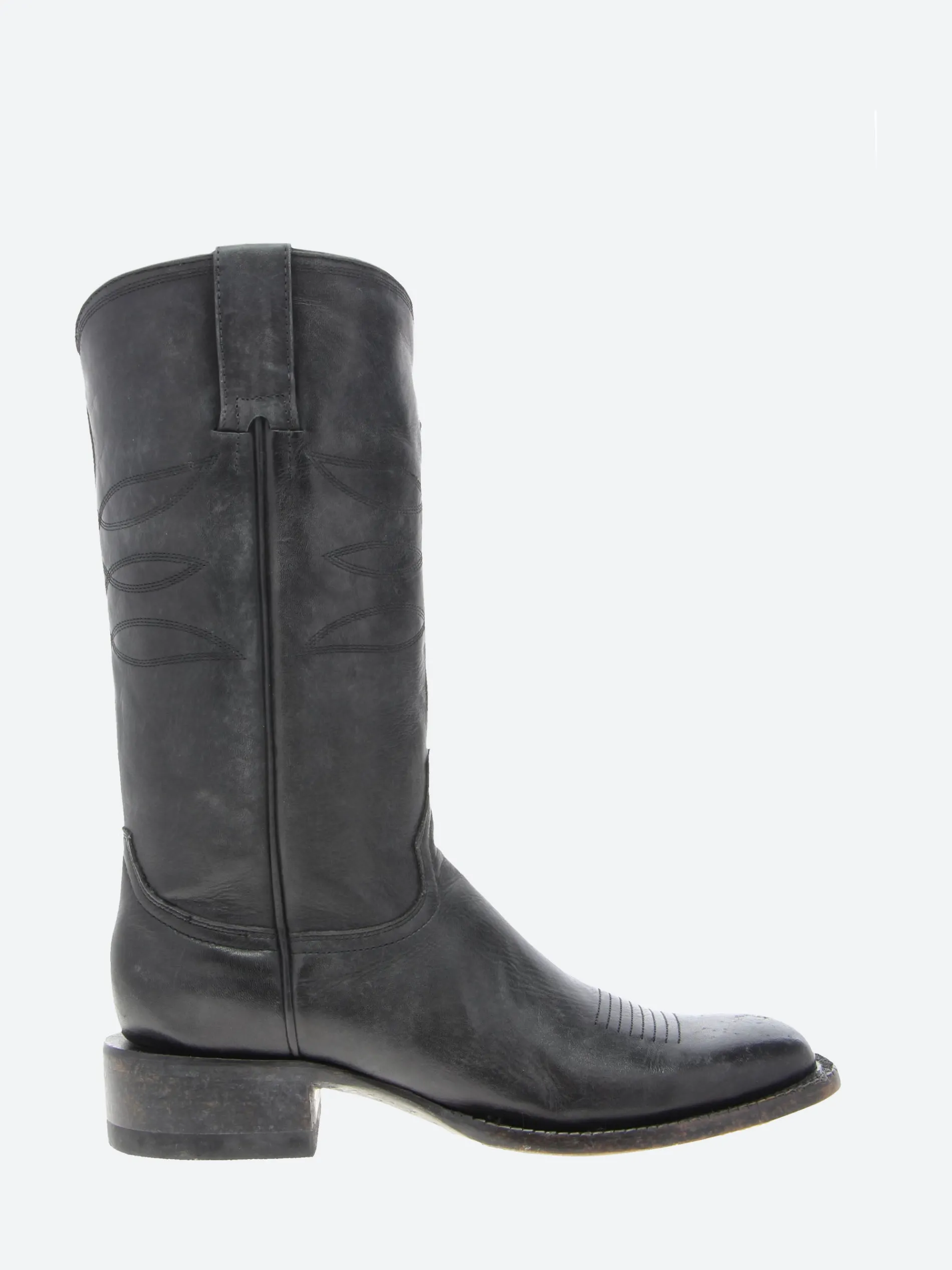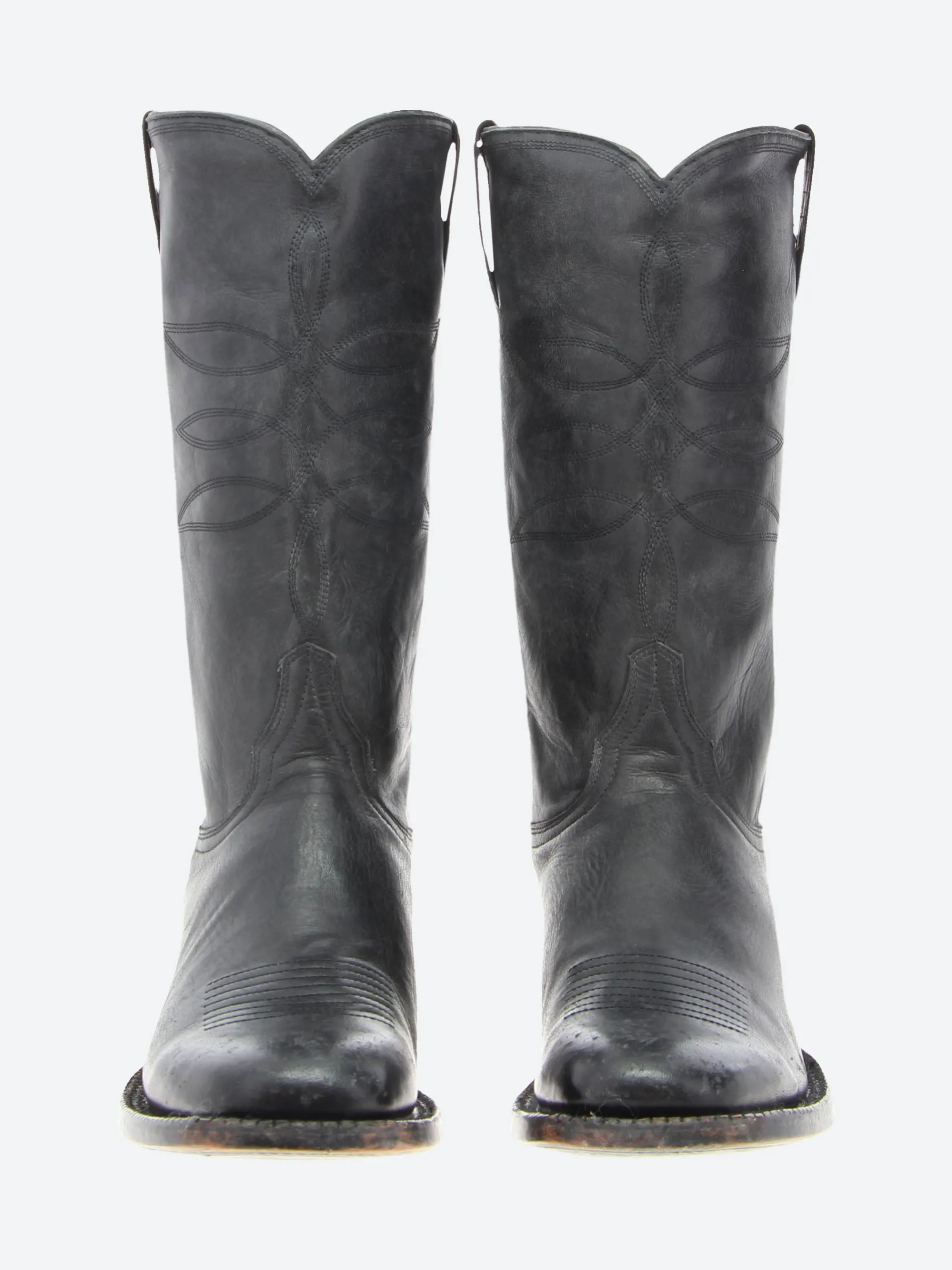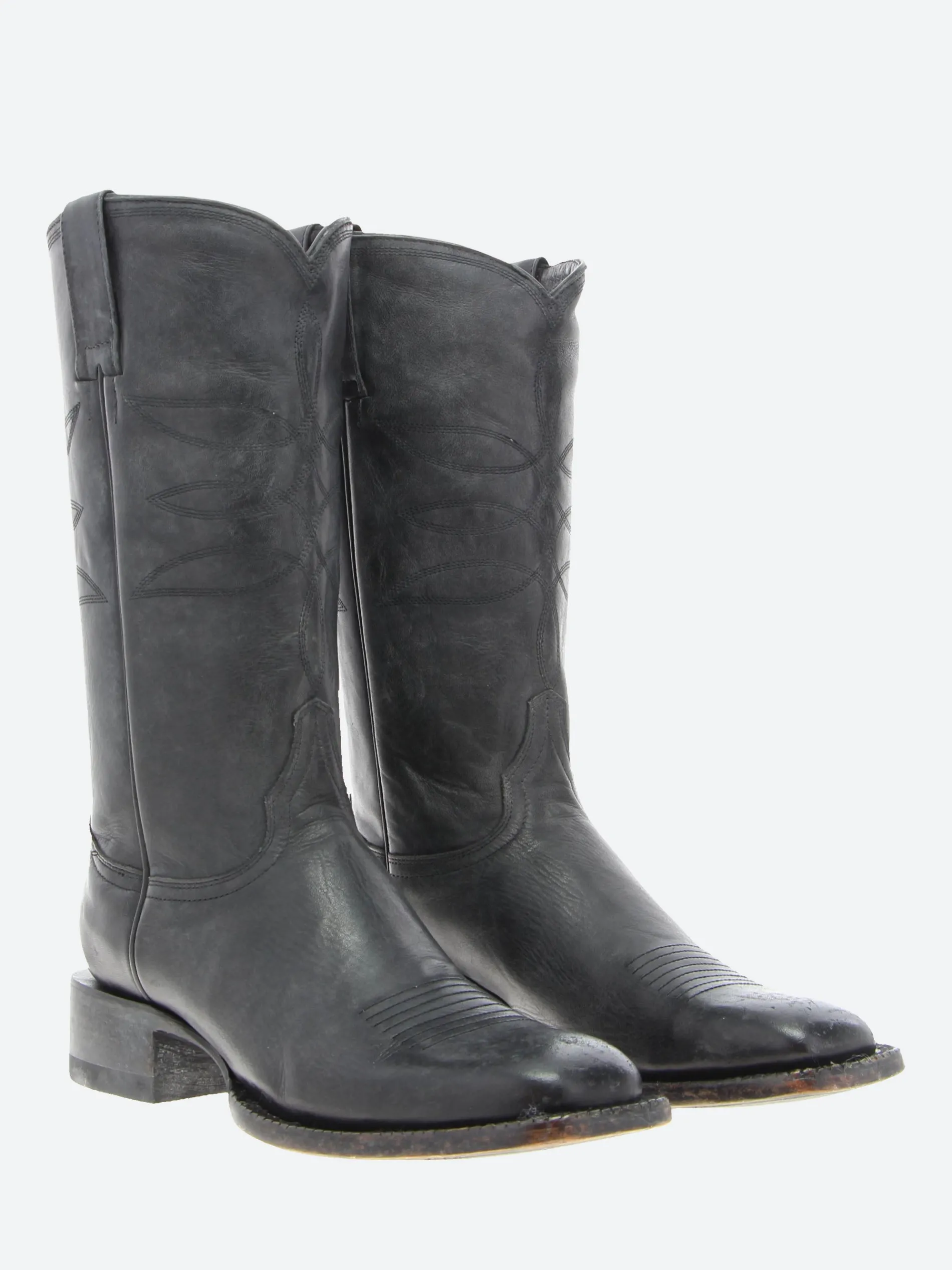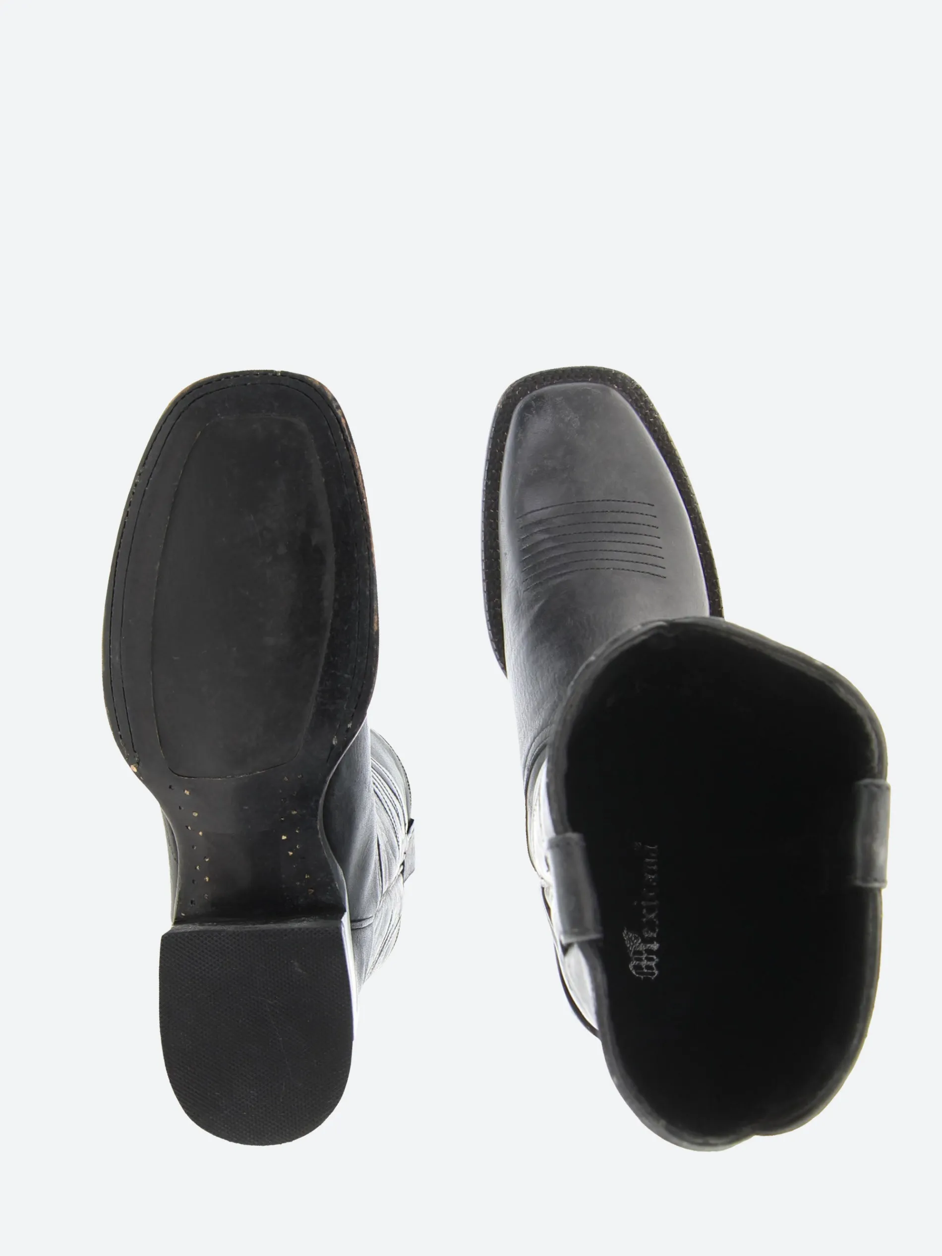 Mexicana tall boots with squared toes in aged black leather.