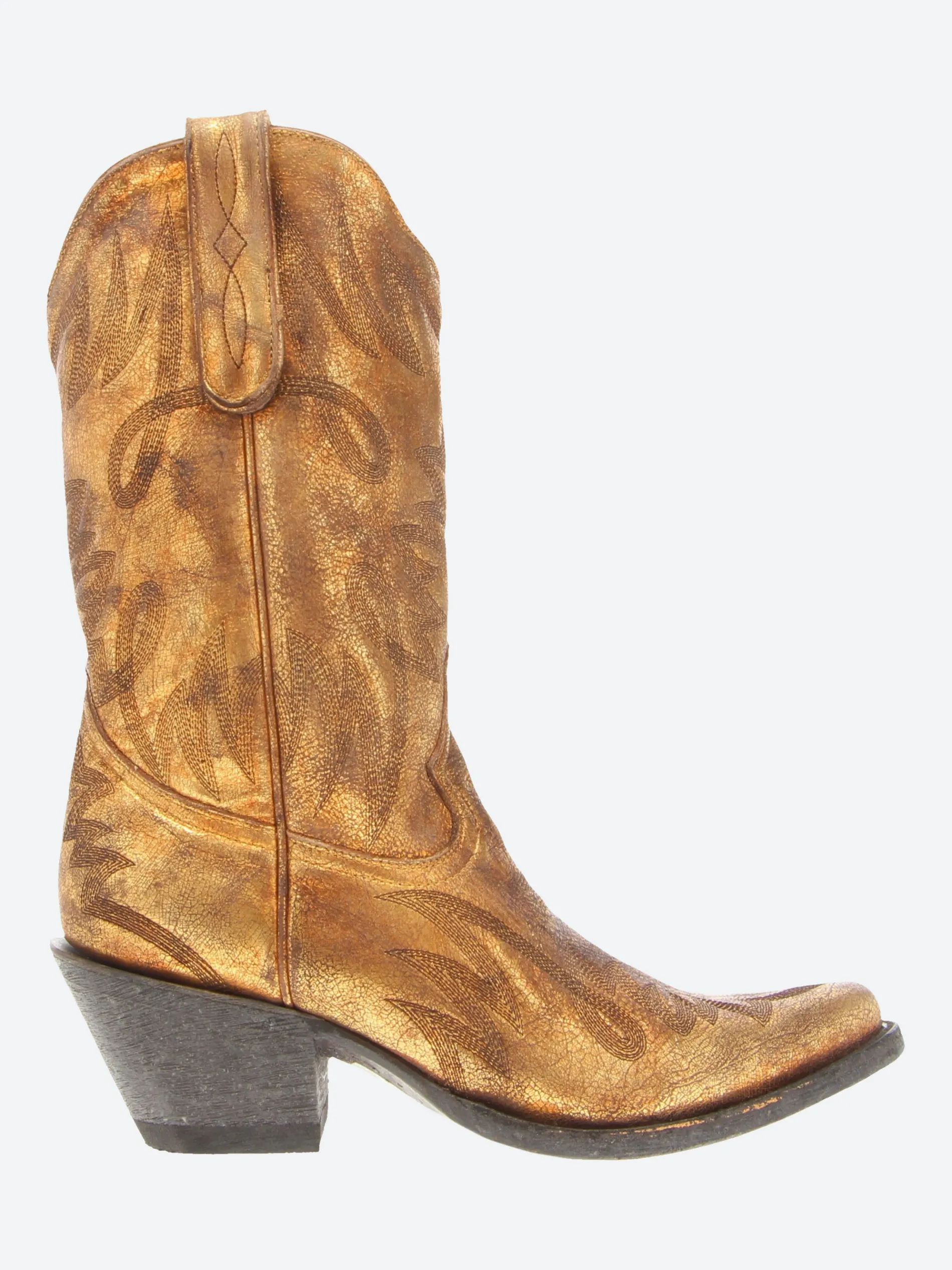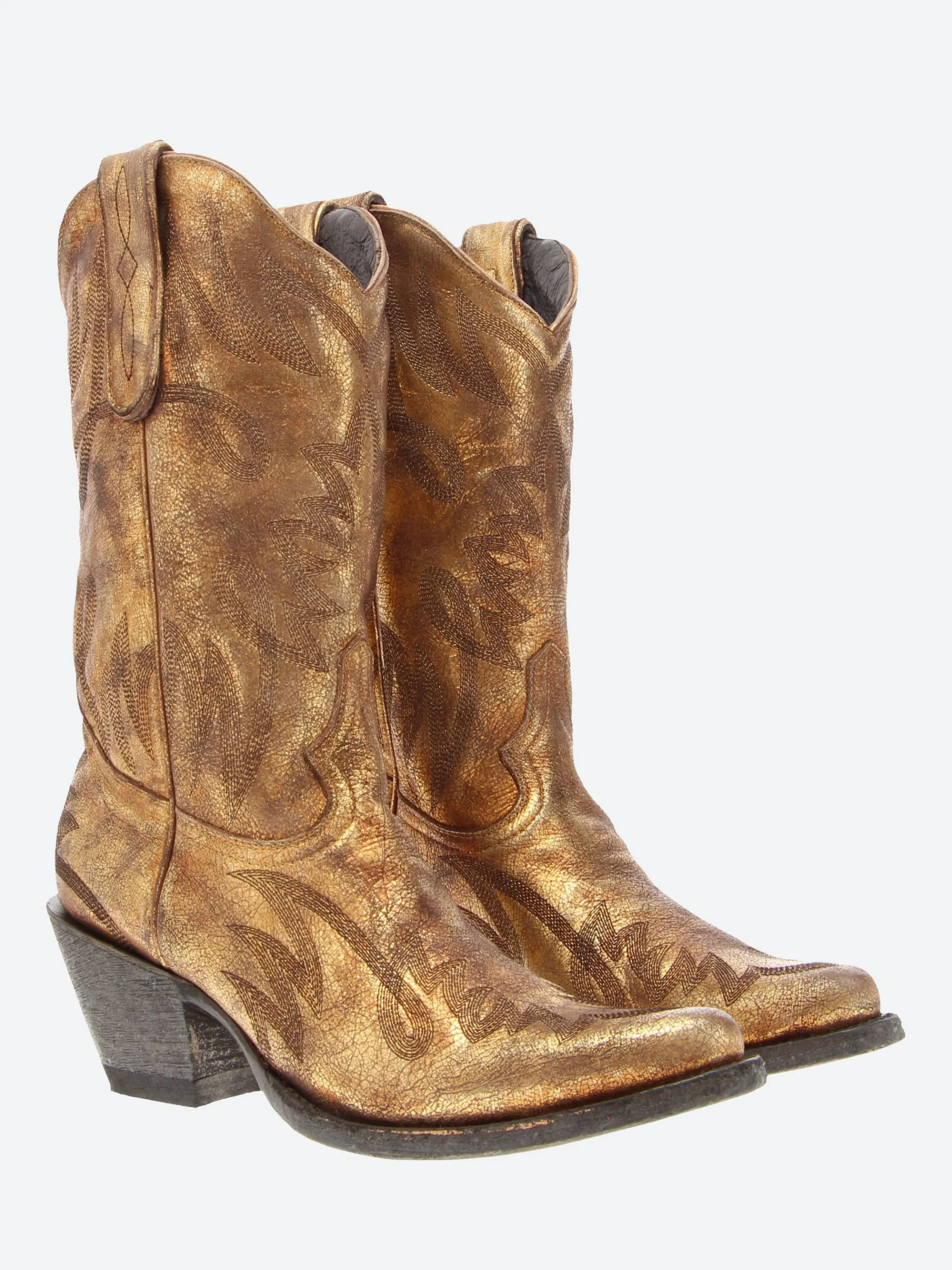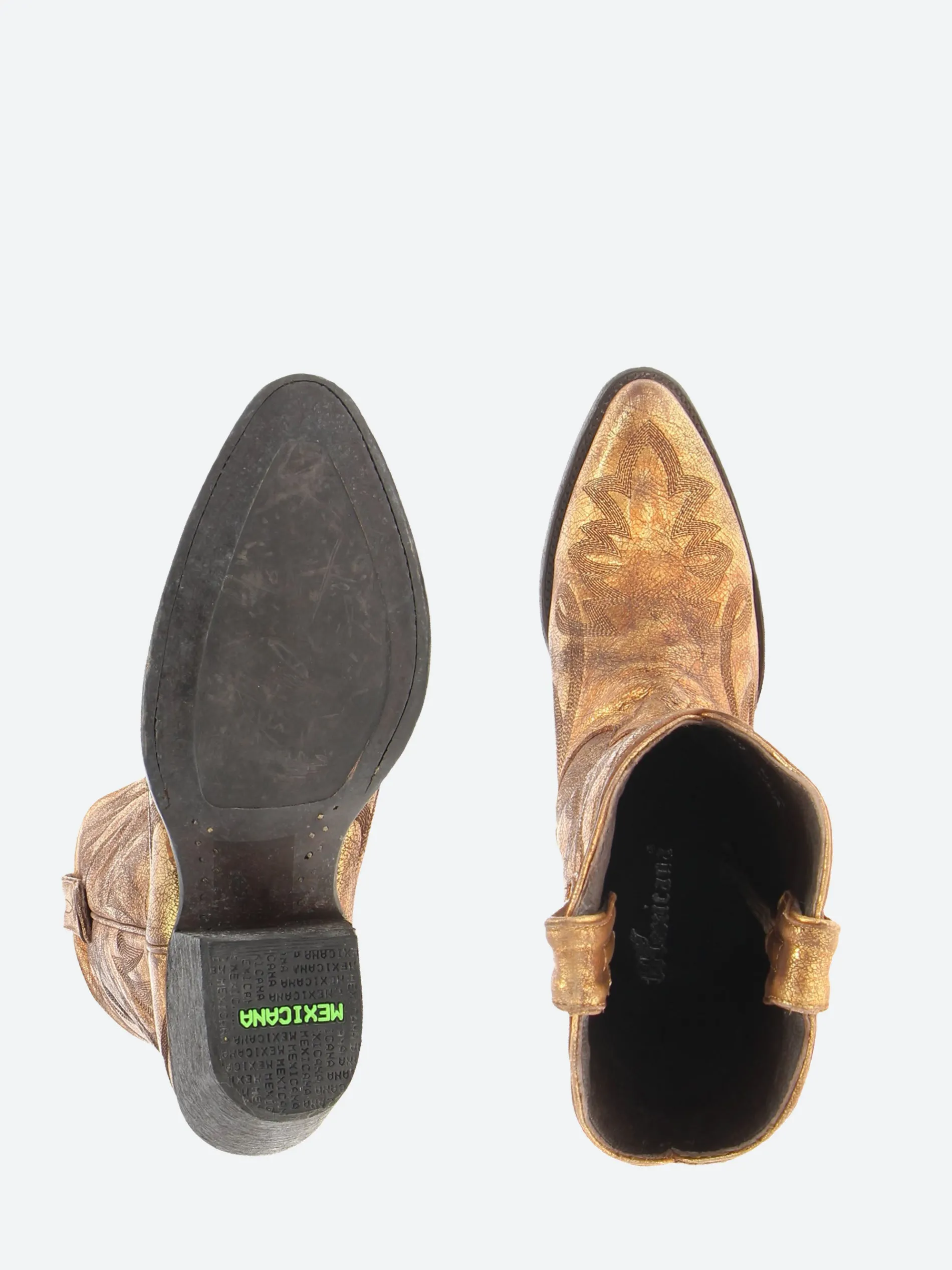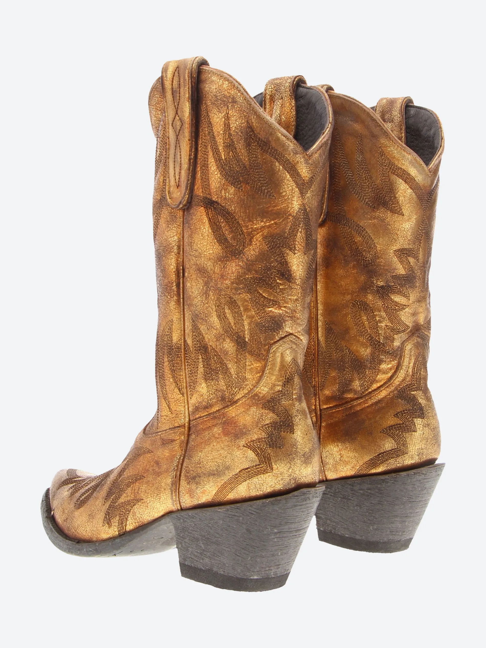 Mexicana tall boots with pointed toes featuring flaming stitching.