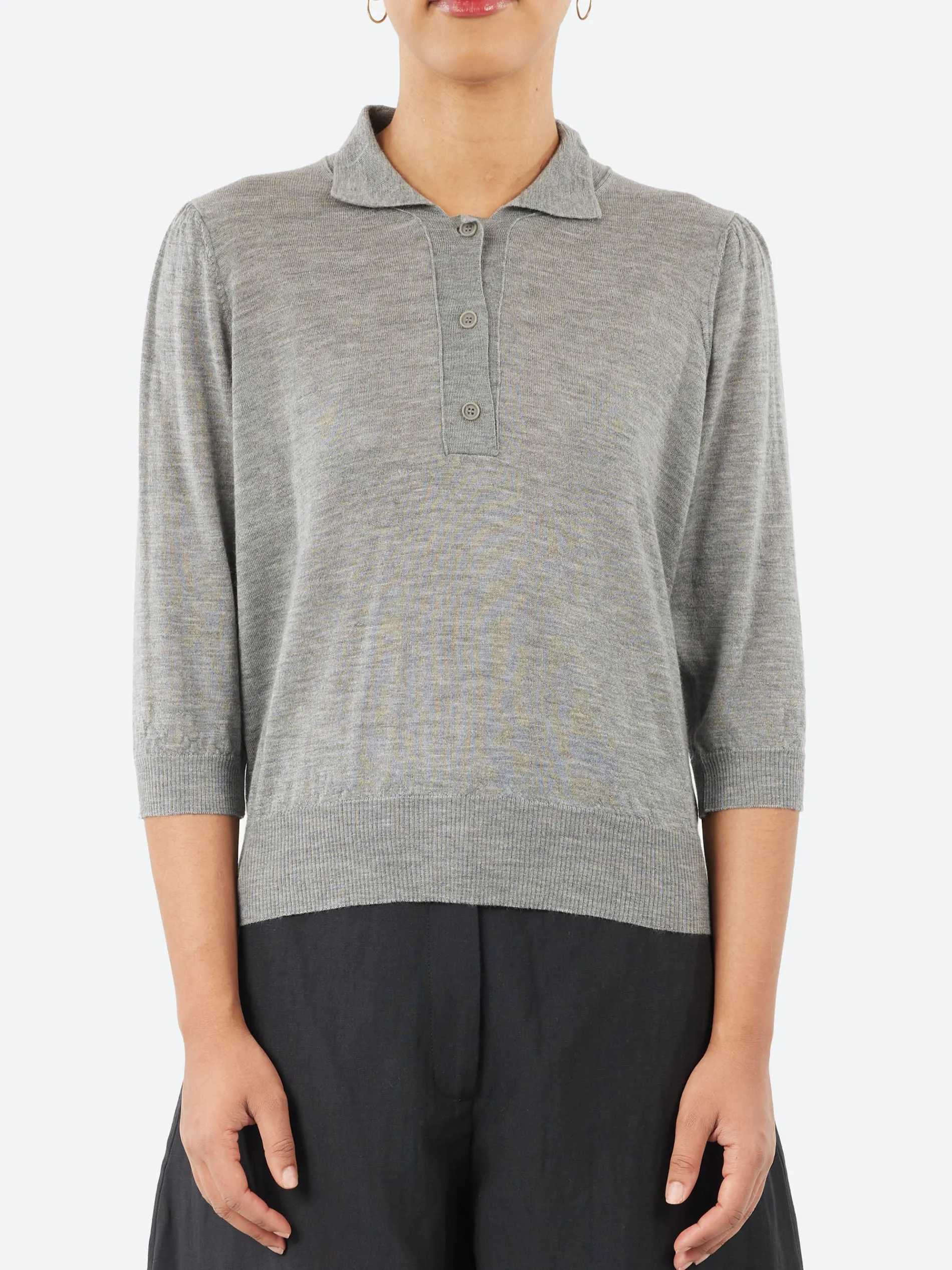 The MJ Watson Cashmere Polo Sweater is a luxurious piece made from pure cashmere. It features a ribbed collar, a three-button placket, and ribbed knit construction with three-quarter length sleeves, offering both comfort and style. The sweater is versatile, perfect for layering or wearing on its own, and can be dressed up or down for various occasions.