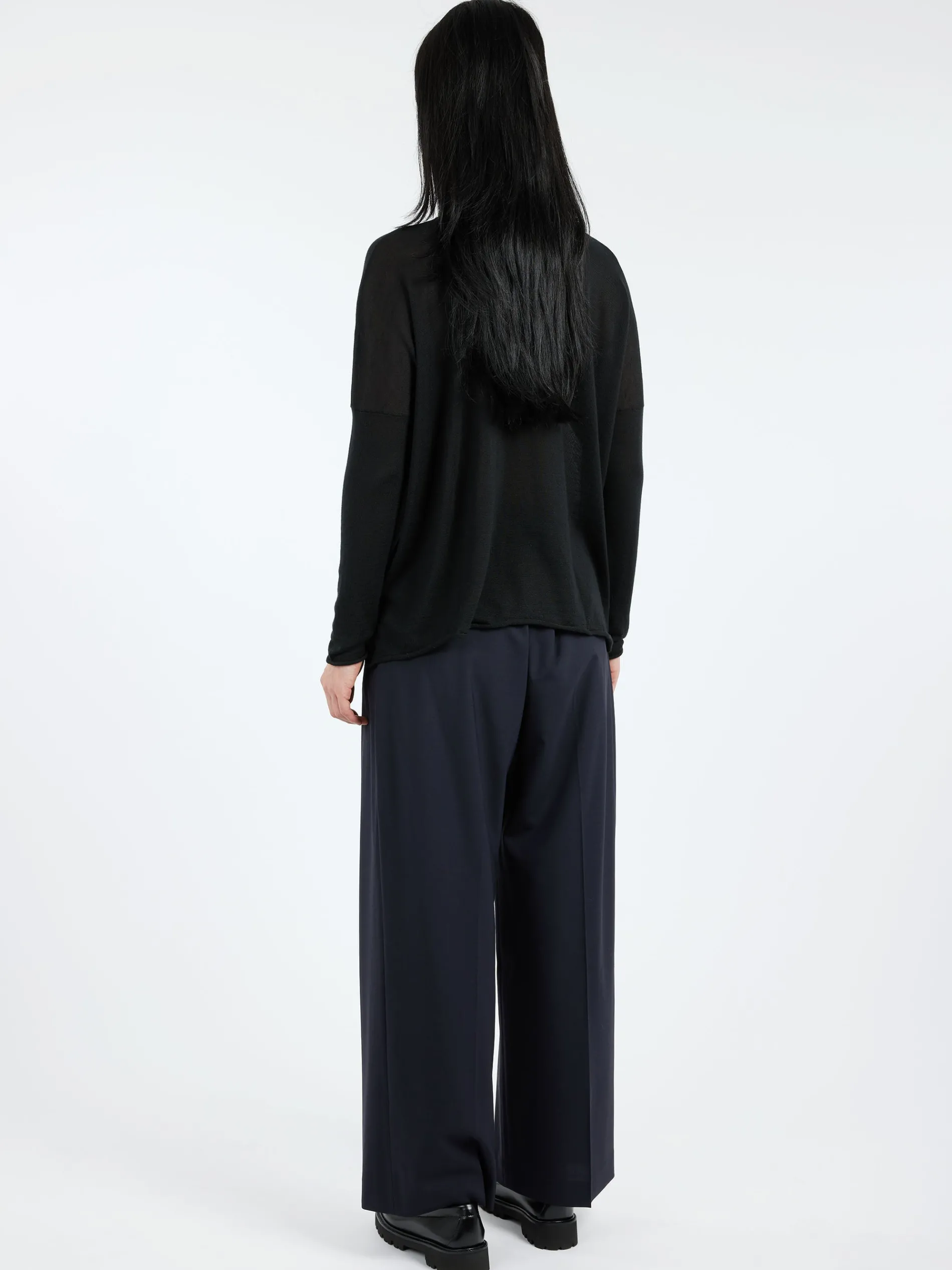 MJ Watson pure soft cashmere sweater features a dropped shoulder and a skinny rolled hem.