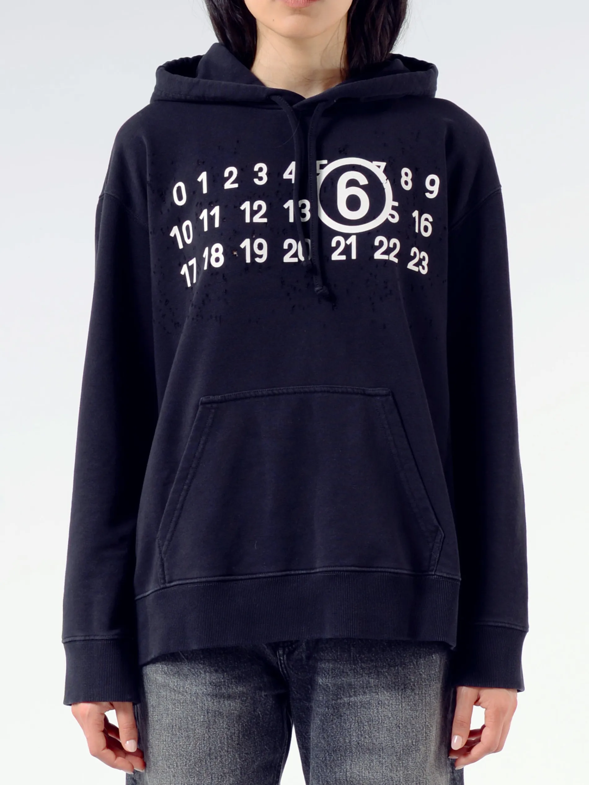 MM6 hooded sweatshirt made from a cotton blended French Terry jersey. Finished with the brand’s signature numeric design.