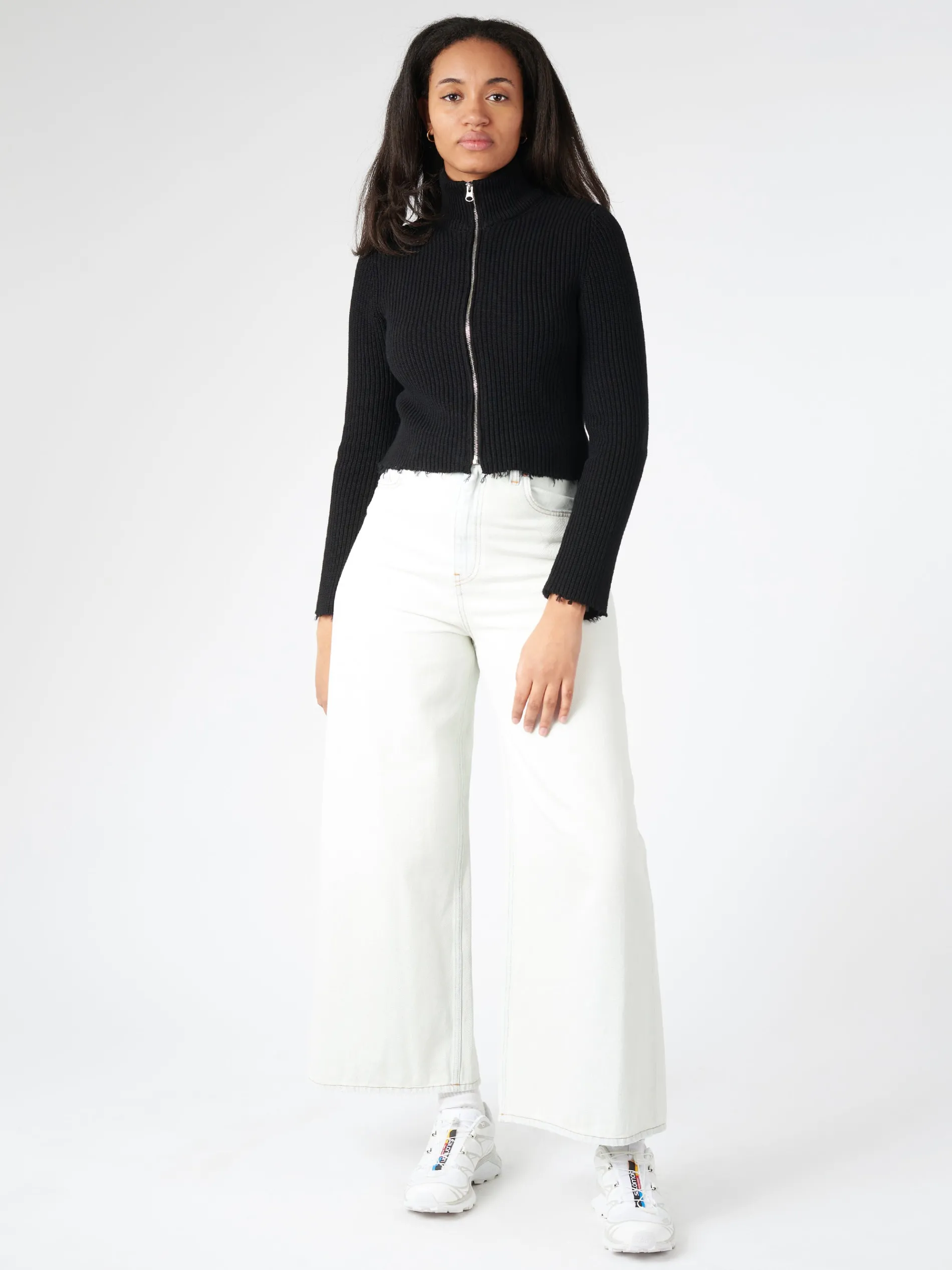 A nod to trucker-style necklines, MM6’s camionneur sweater is crafted in ribbed cotton. The knit is offset by a raw-edged hem. MM6’s discreet yet distinct signature, a horizontal line of white stitches, is present on the back of the garment.