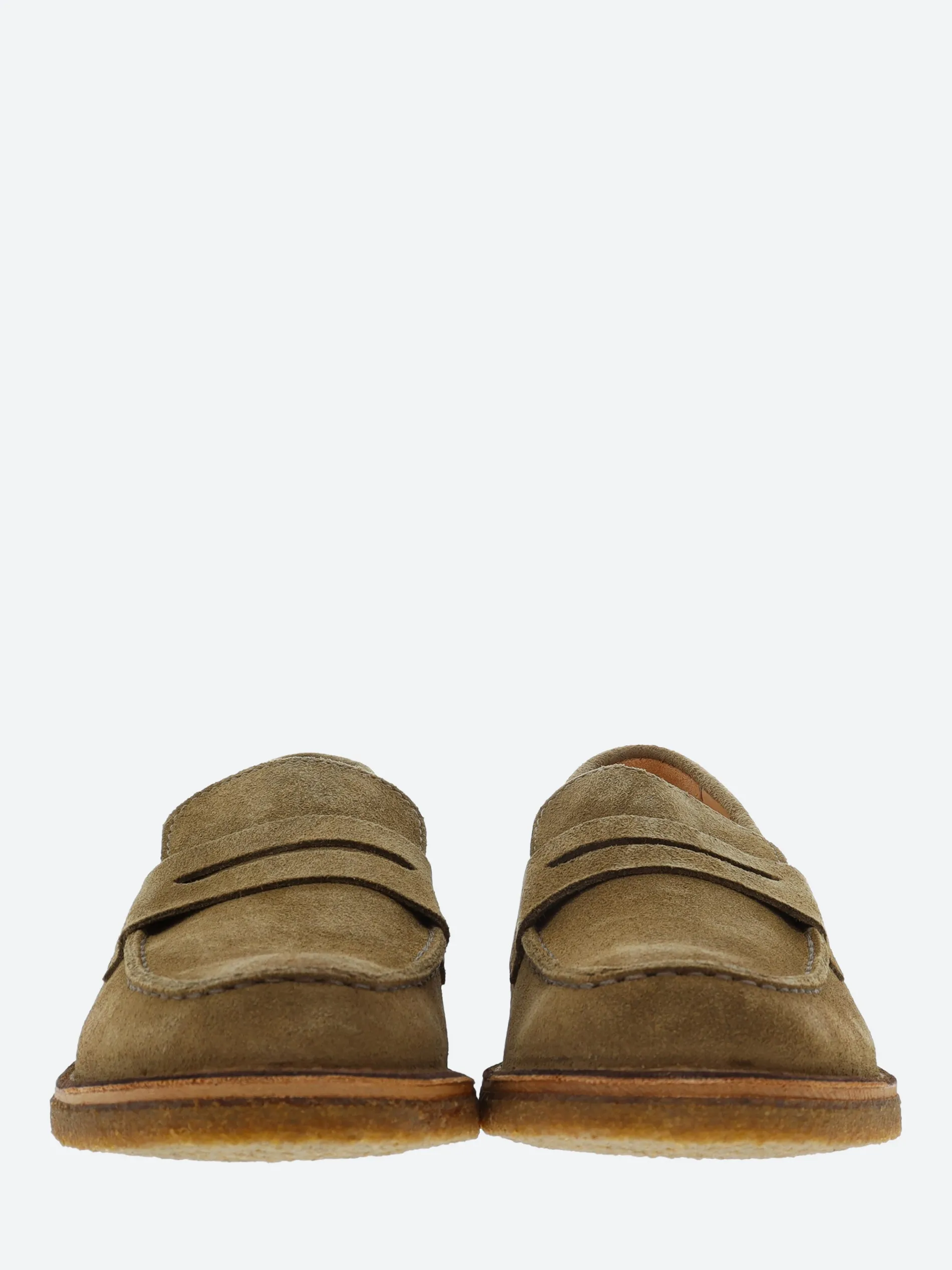 Astorflex Mokaflex loafer handcrafted with suede and finished with the brand’s signature external stitch “ideal” construction method.