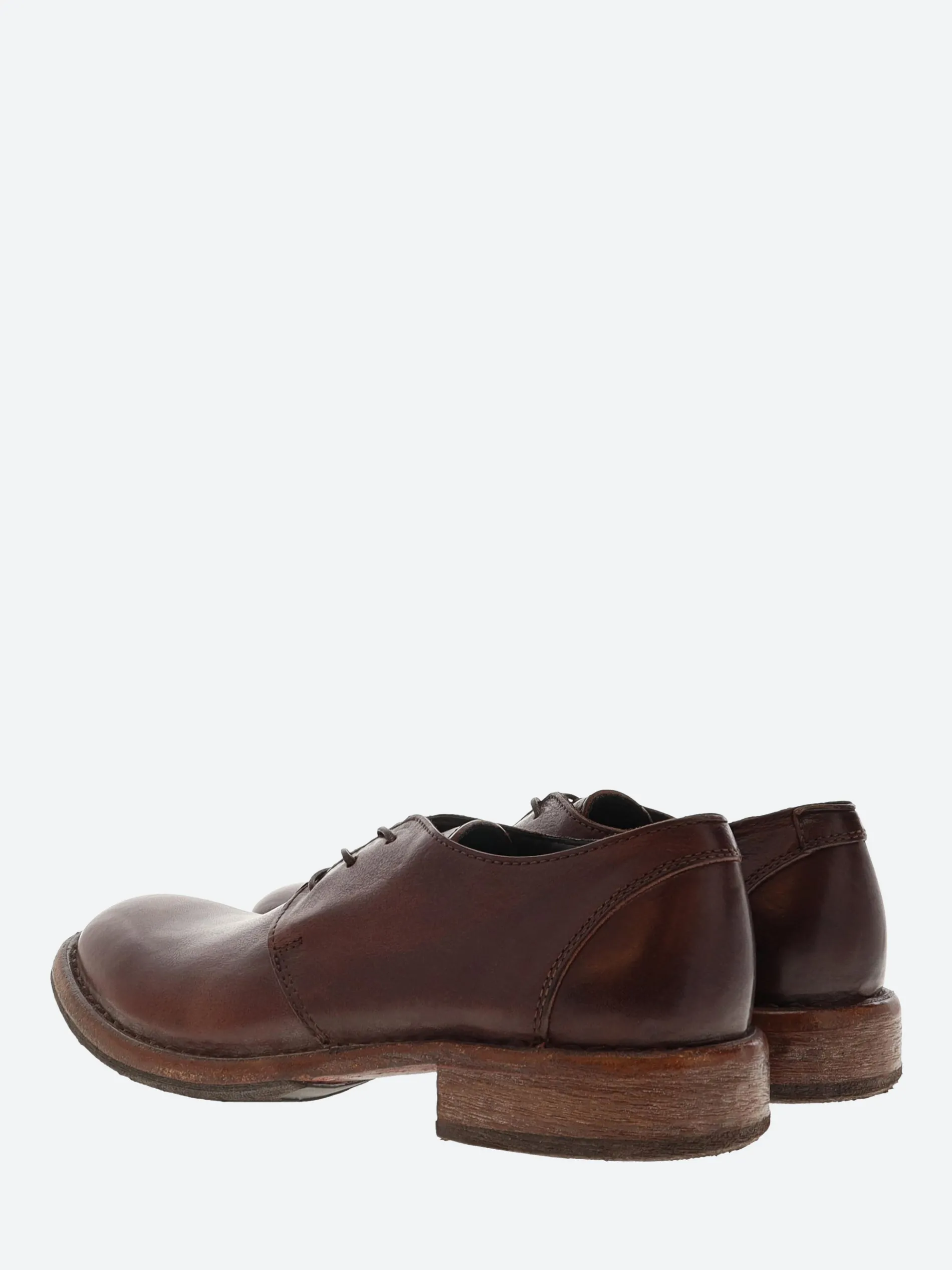 MOMA derby shoe in vintage-style leather and three-hole lacing. Handmade in Italy with a non-slip rubber insert.