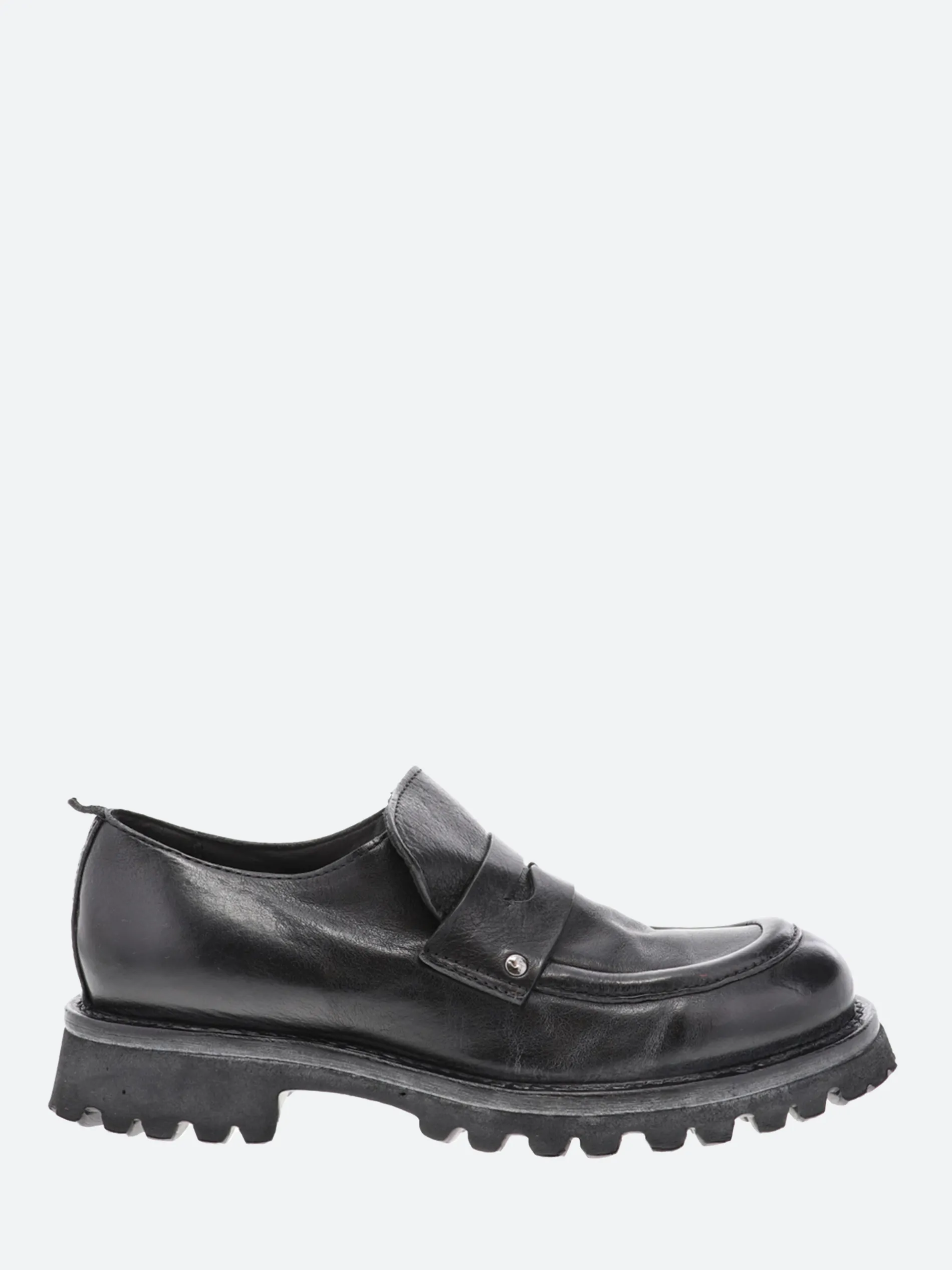 Moma penny loafer in vintage effect leather with a chunky lugged sole.