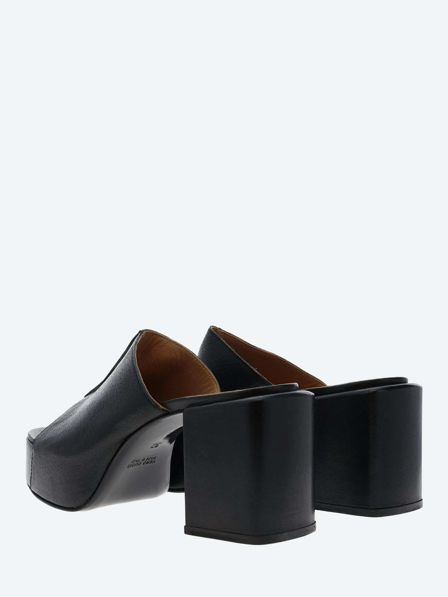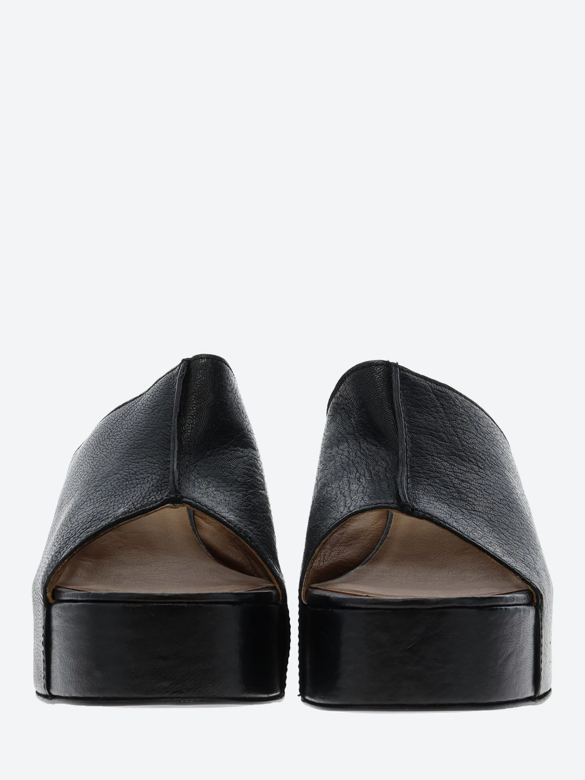 Moma simple slip-on mule sandal with a stacked heel and pebbled finish.