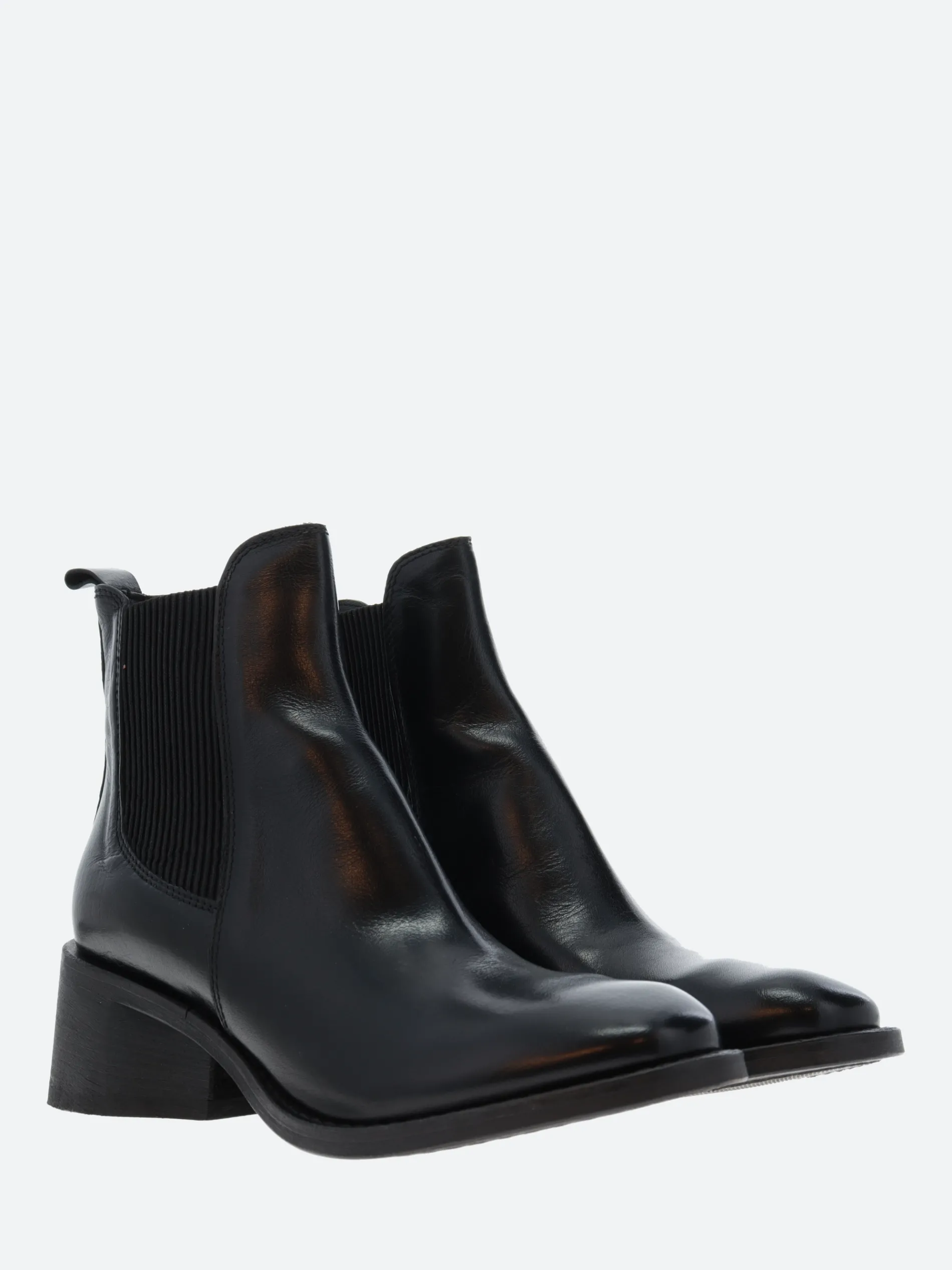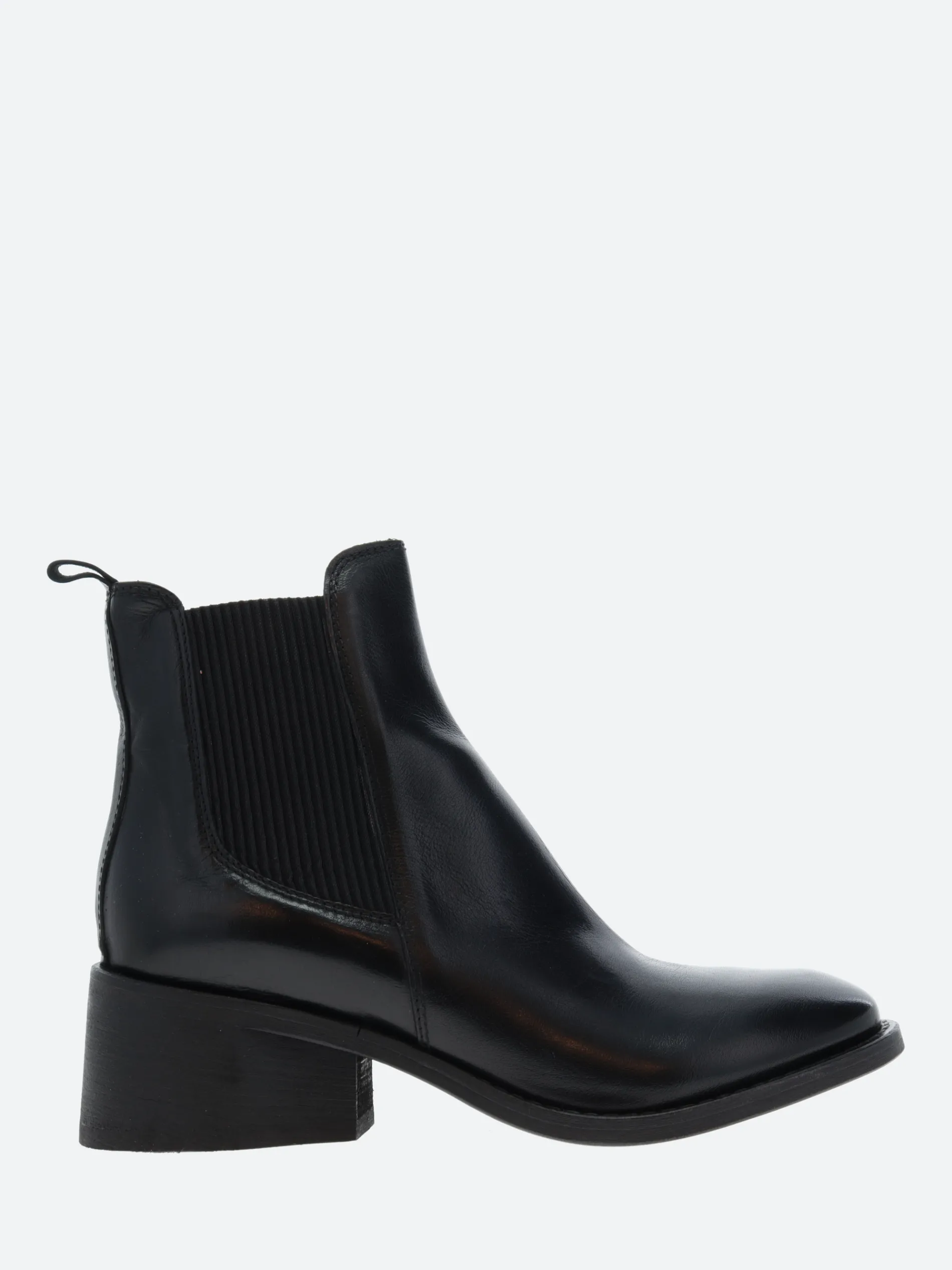 Masterfully handmade from Italian leather, this heeled MOMA Chelsea boot boasts elasticated gussets for easy entry.