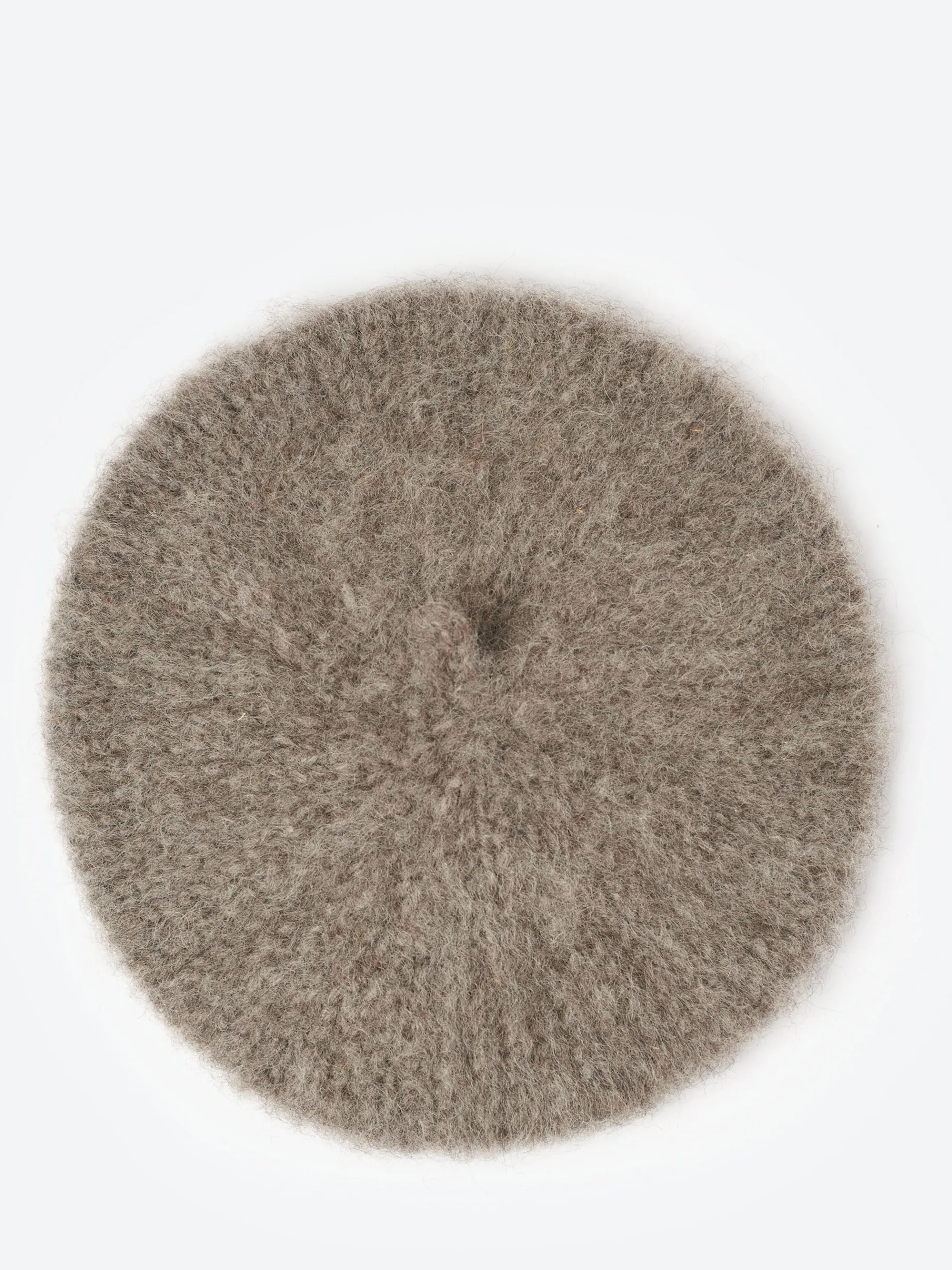 Hand-knit from chunky, undyed wool, this soft fluffy beret looks like it was brushed with snow.