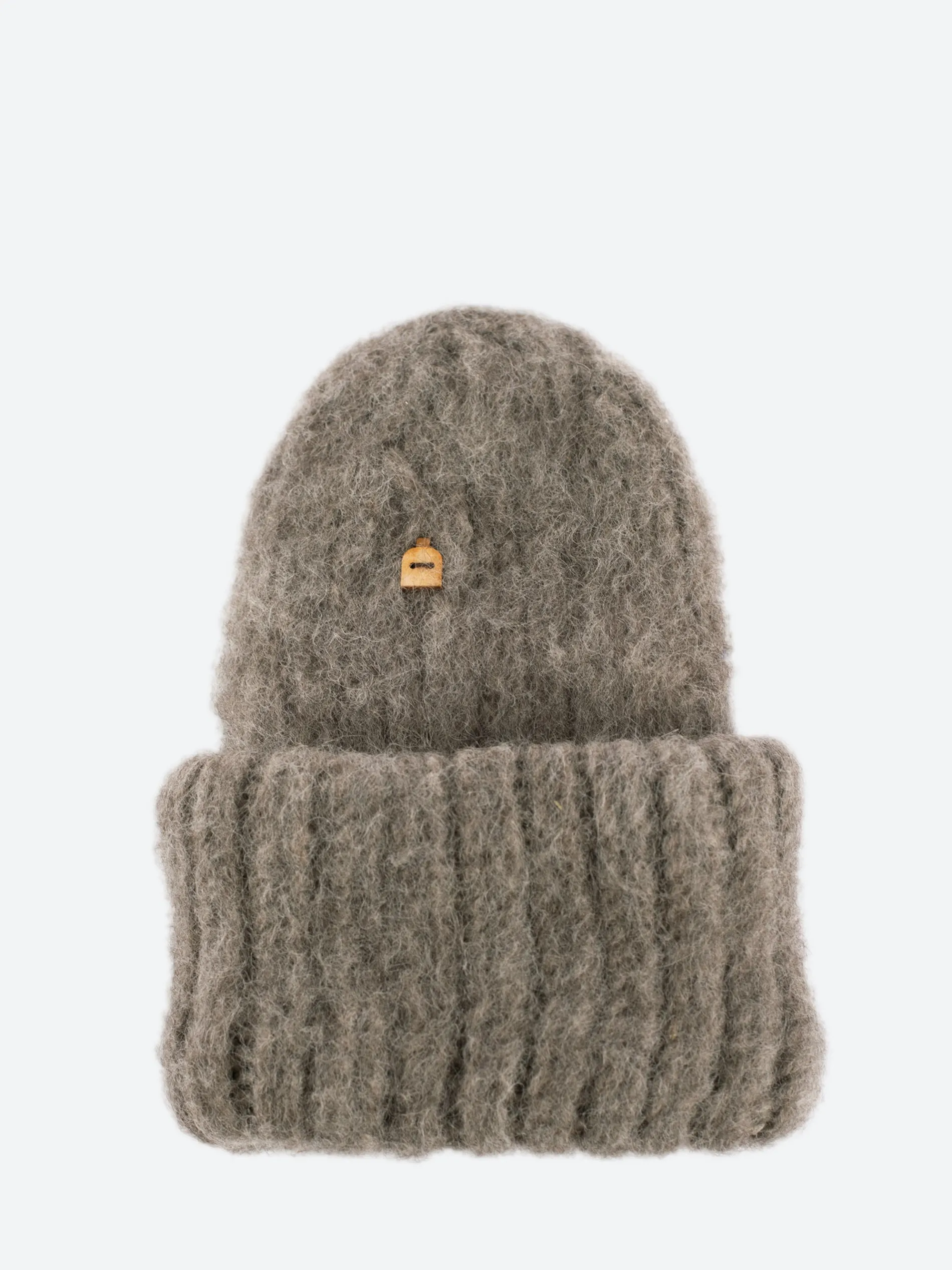Hand-knit from chunky, undyed wool, this oversized beanie has been brushed for a soft, fluffy finish.