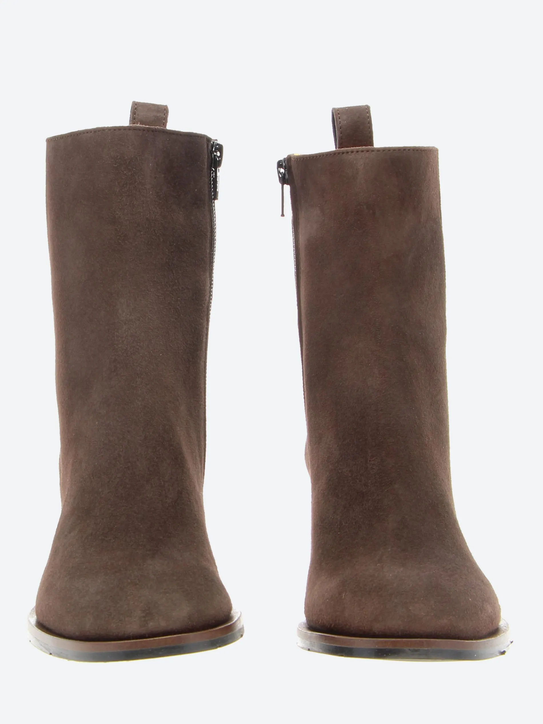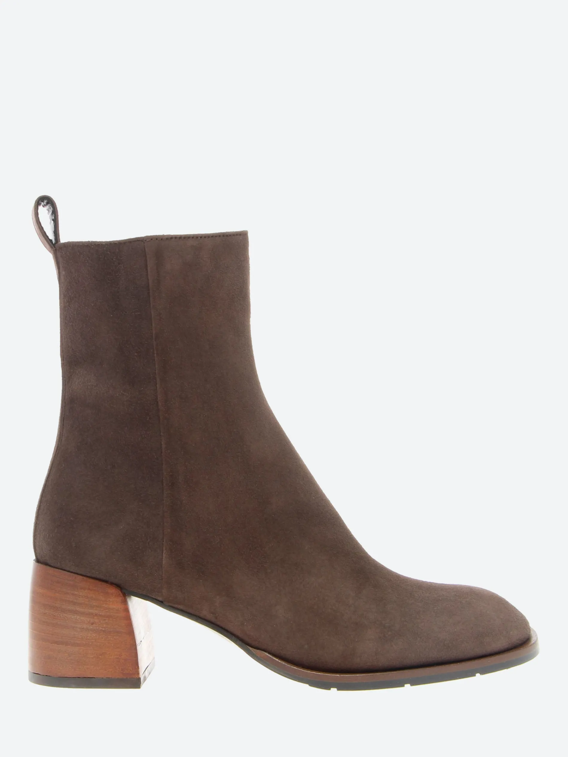Classic slip-on boot with a Cuban heel made from supple suede with pointed toe detailing.