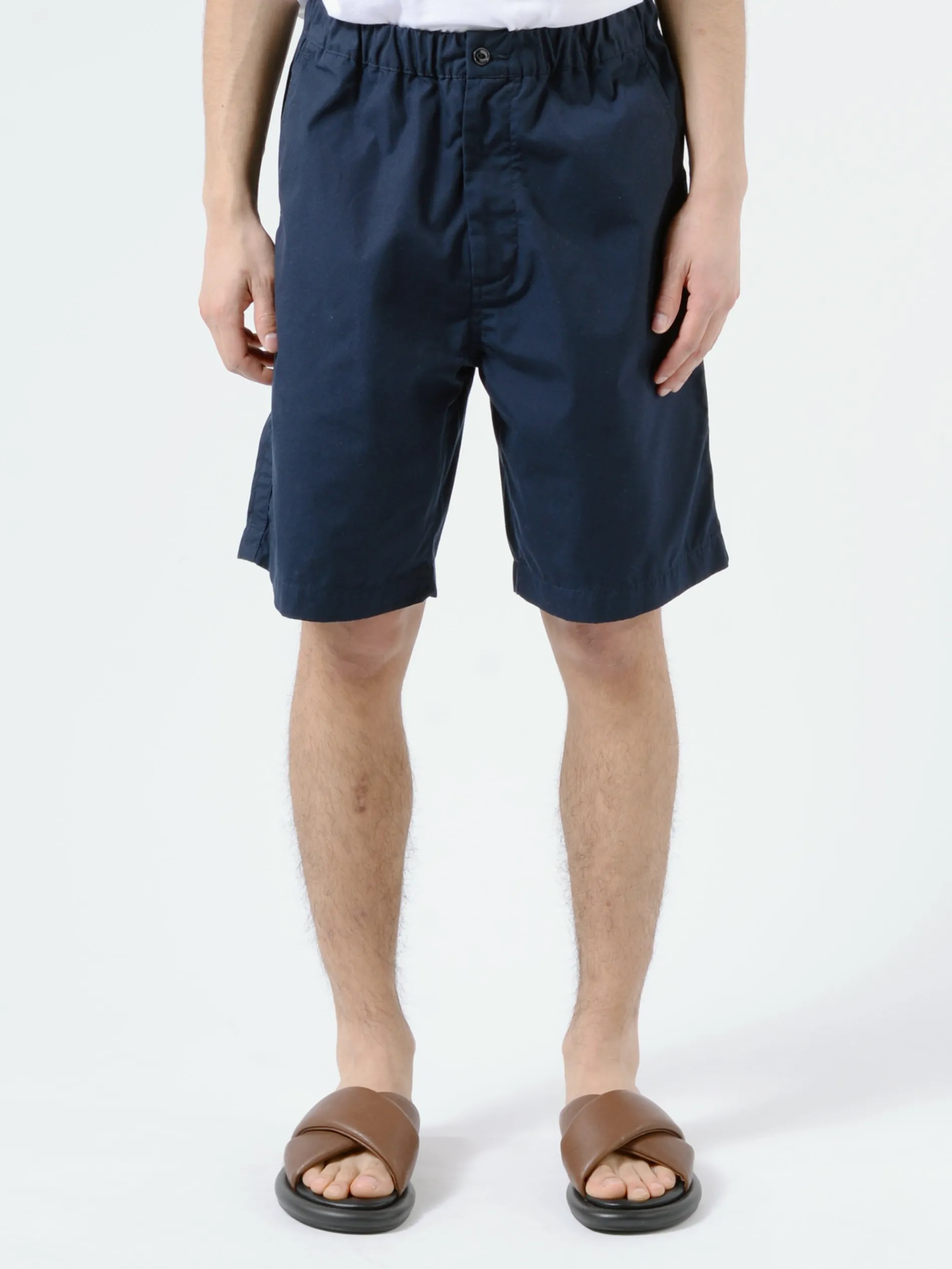 Nanamica shorts made from weather material using covering core yarn.
